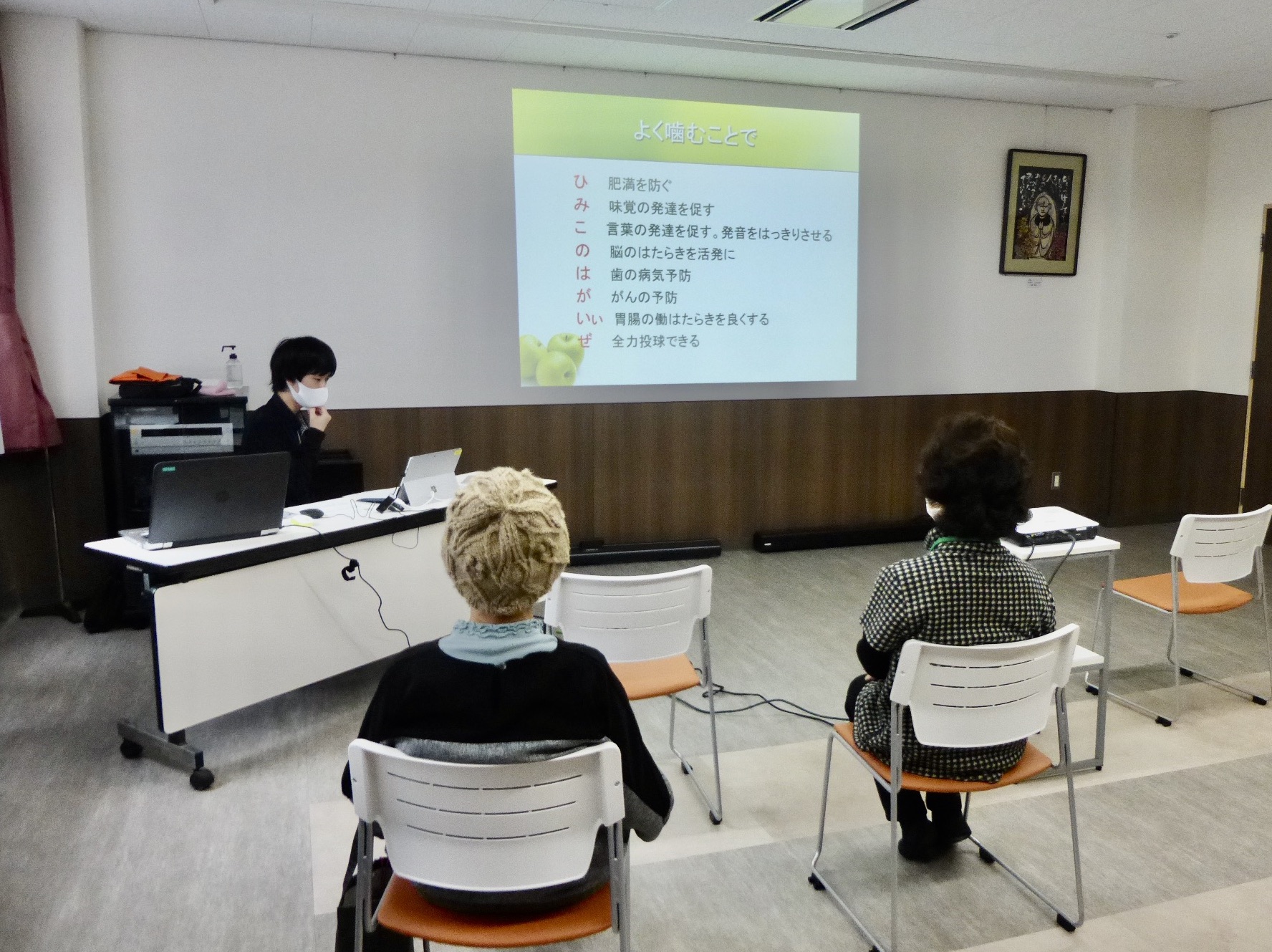 美味しく食べることによって脳へ刺激を送り、脳の働きを活発化することなど大切な役割についてのお話に会員の皆様は真剣に耳を傾けていました。
