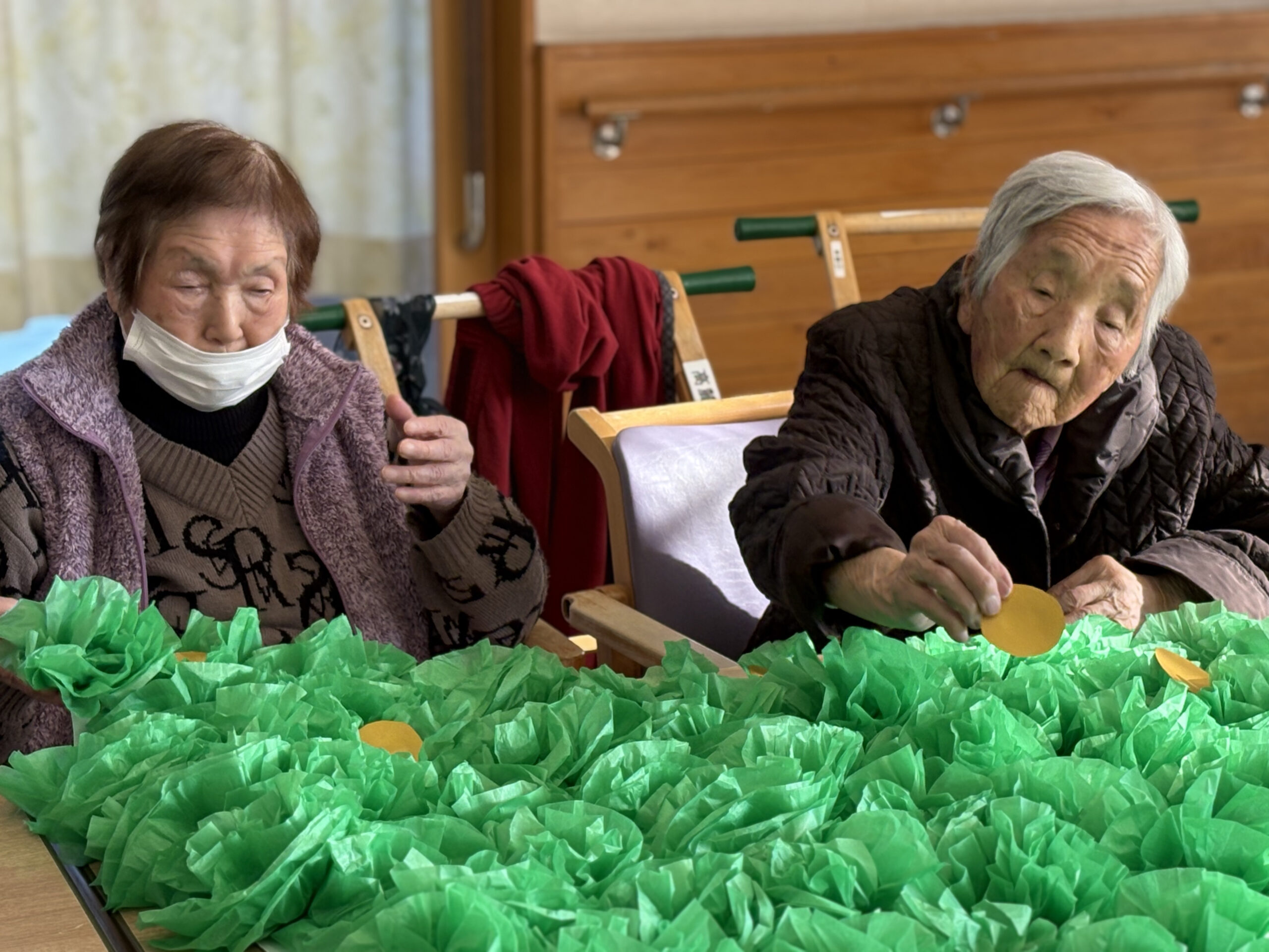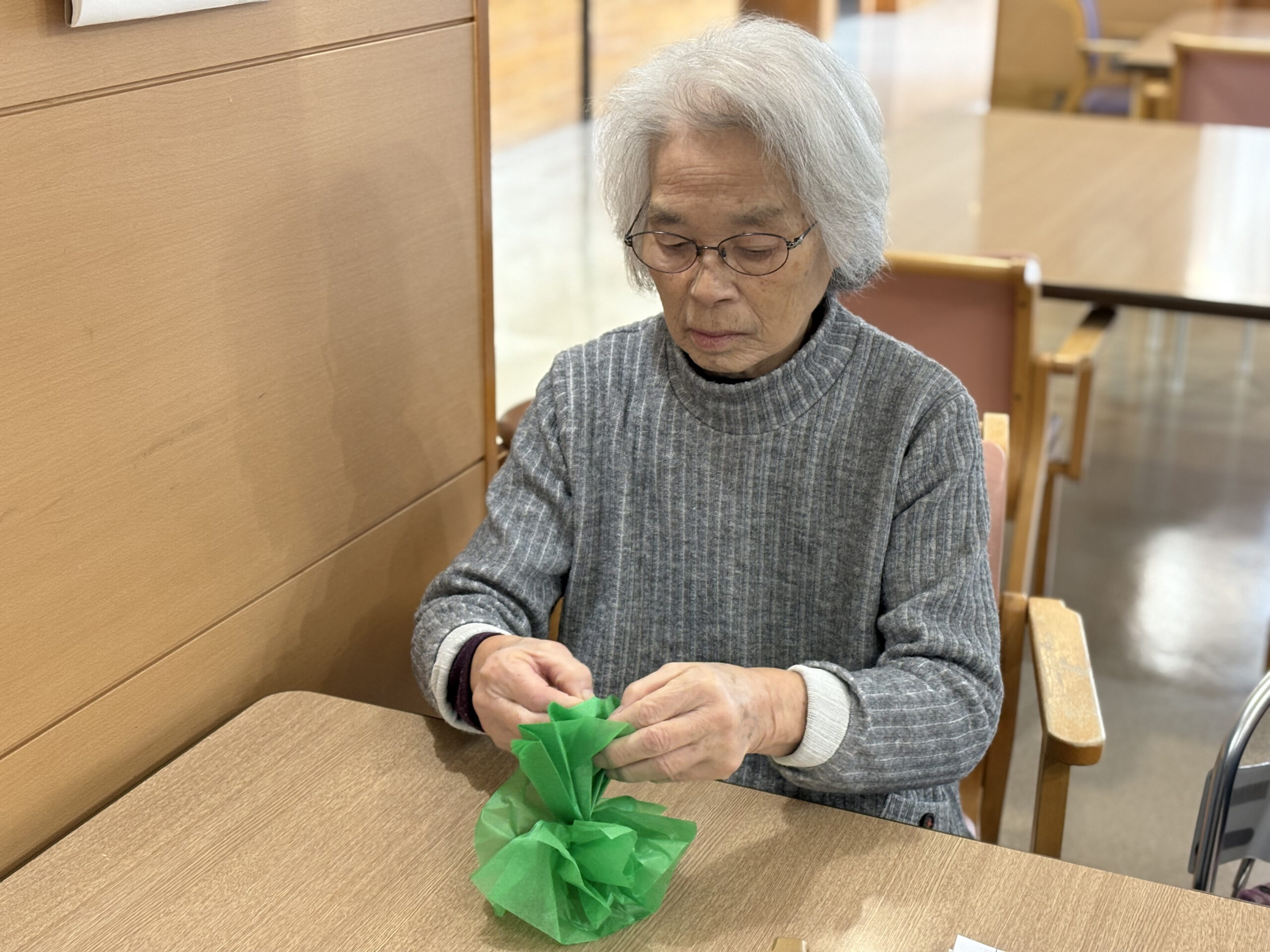 もみの木の葉の部分を緑の花紙を用いて作っていただきました。