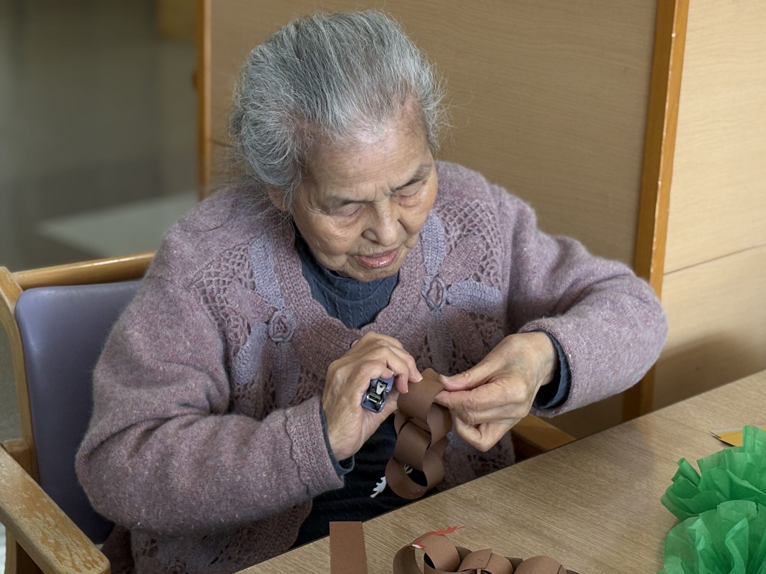 この季節を楽しんでいただくため、お客様にクリスマスツリーを制作していただきました。