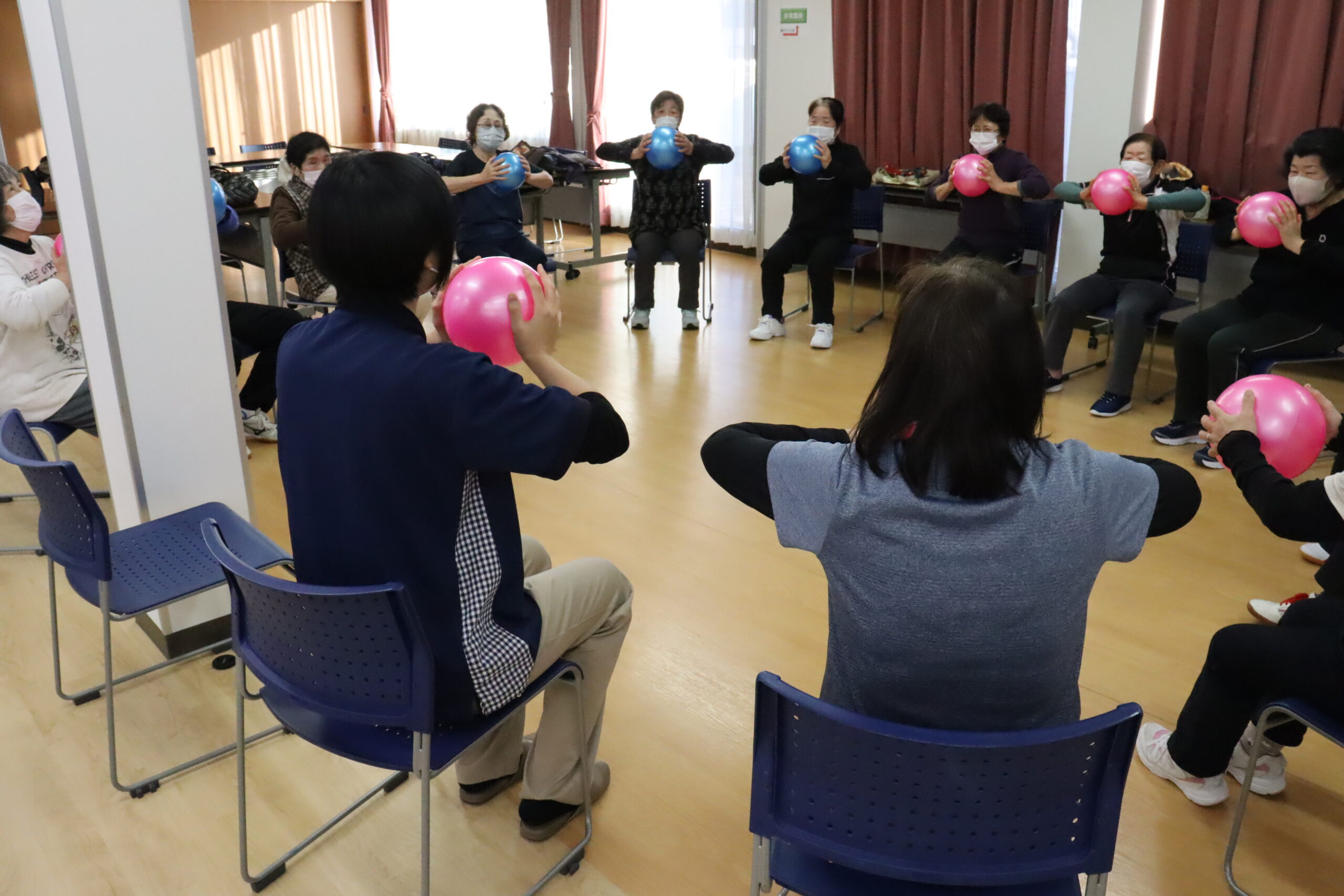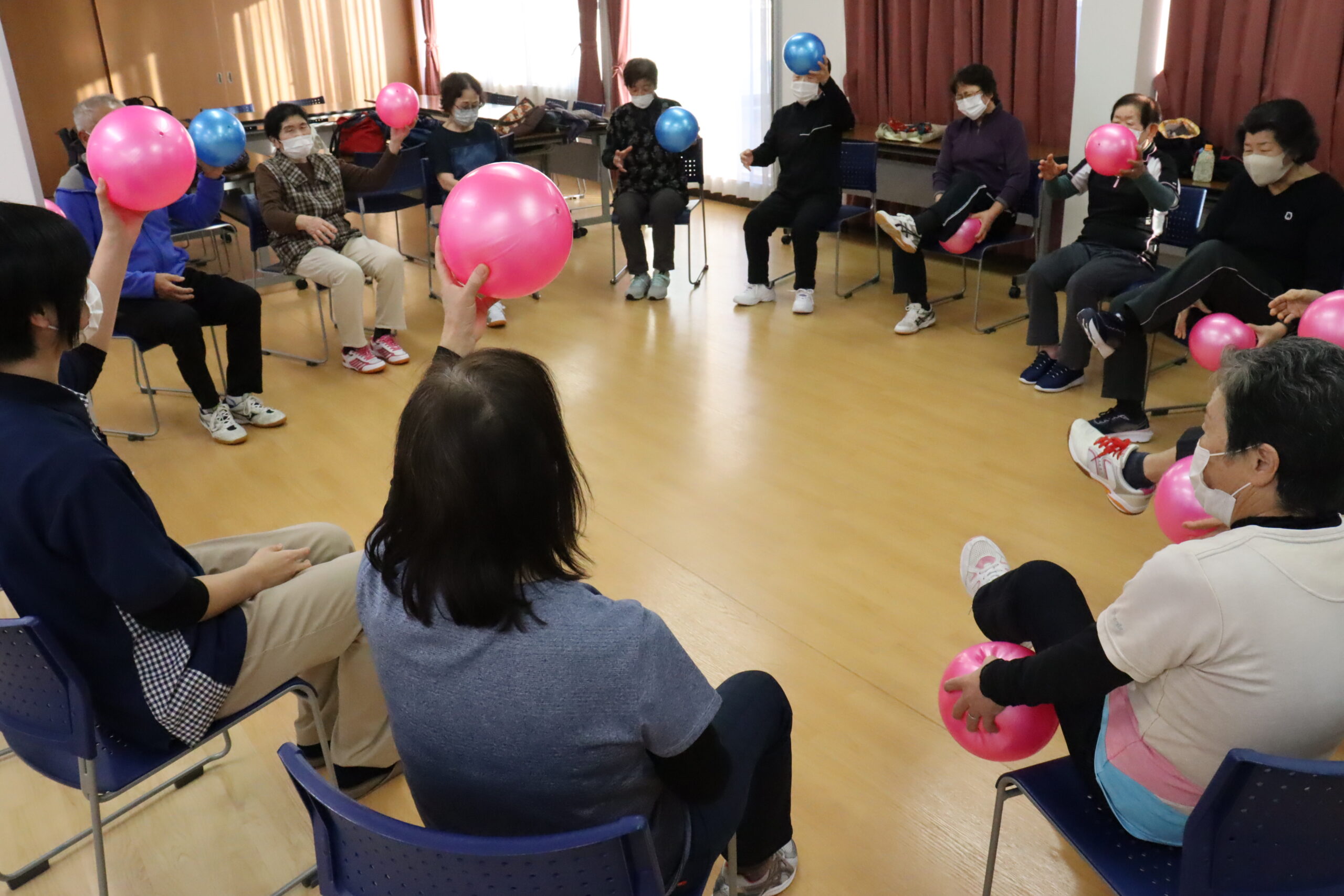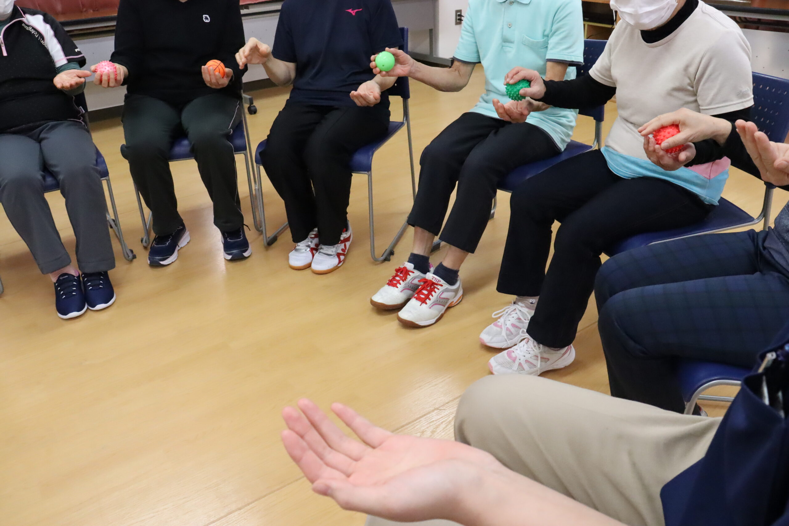 今回は五ケふれあいサロンにお邪魔し、参加者の方の運動機能と健康の維持を目的として開催をさせていただきました。