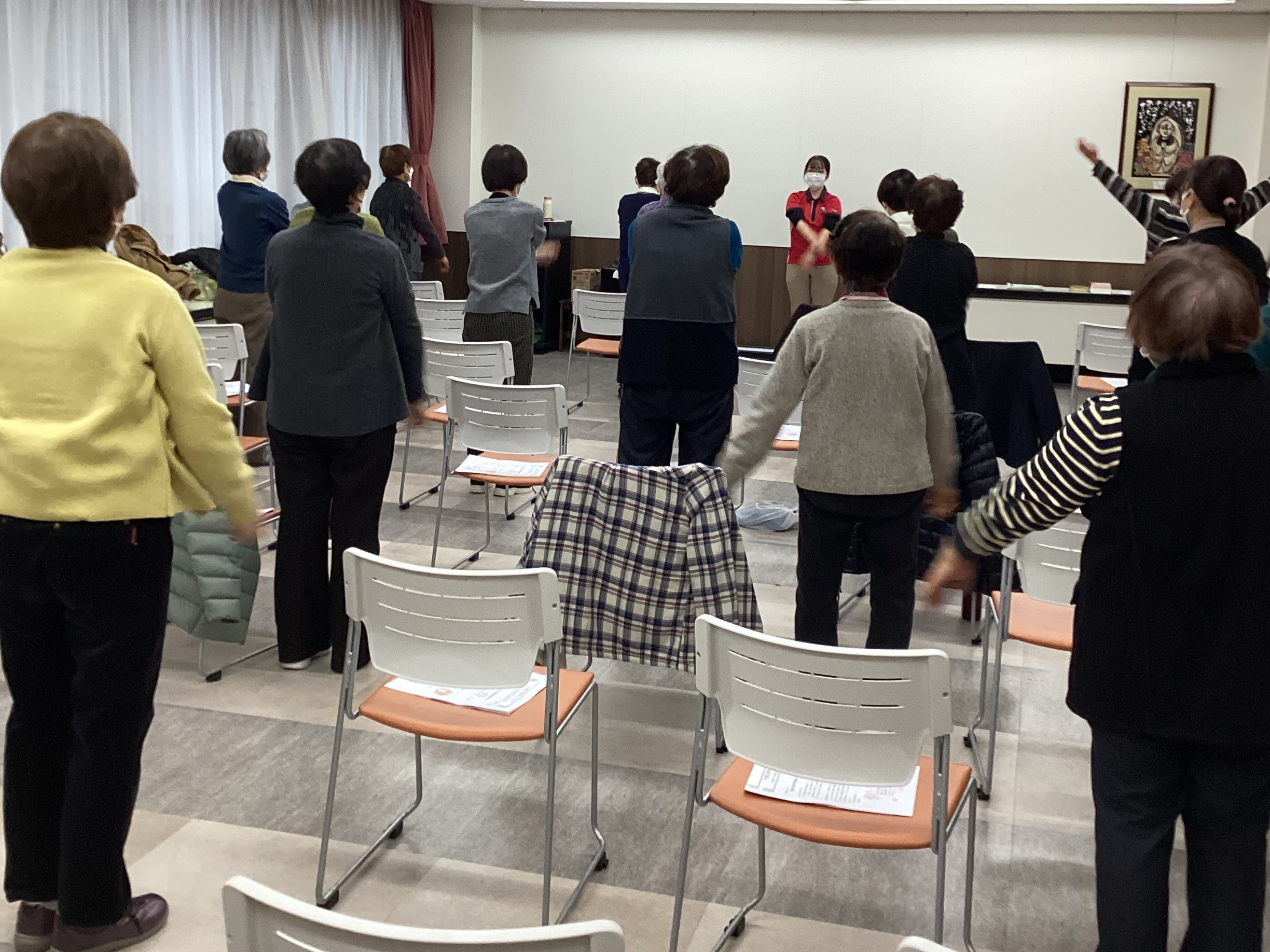 寒さに負けない体づくりのためにラジオ体操の正しいやり方とポイントを高麓デイサービスセンターの機能訓練指導員より学びました。