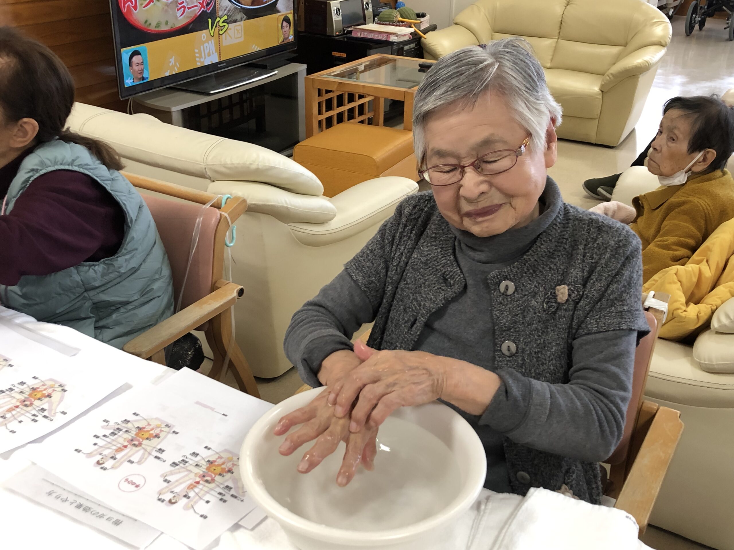 2/14 デイサービス アロマで手浴&指ヨガ