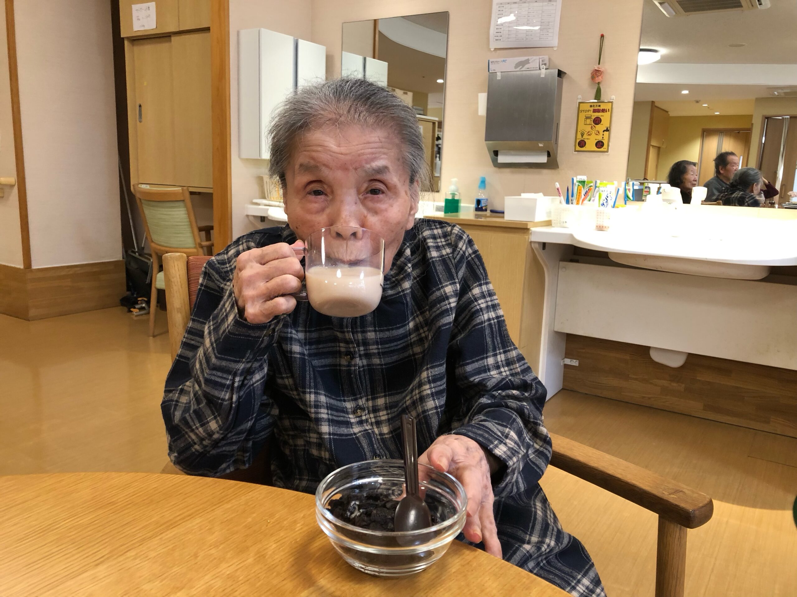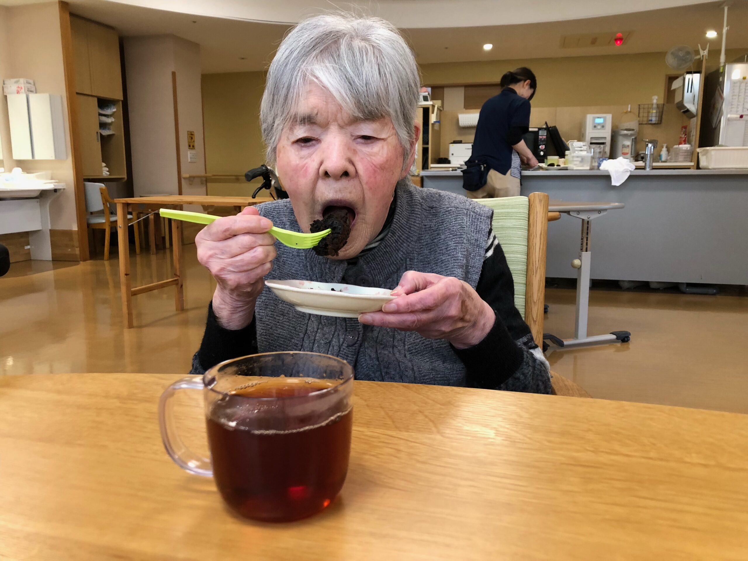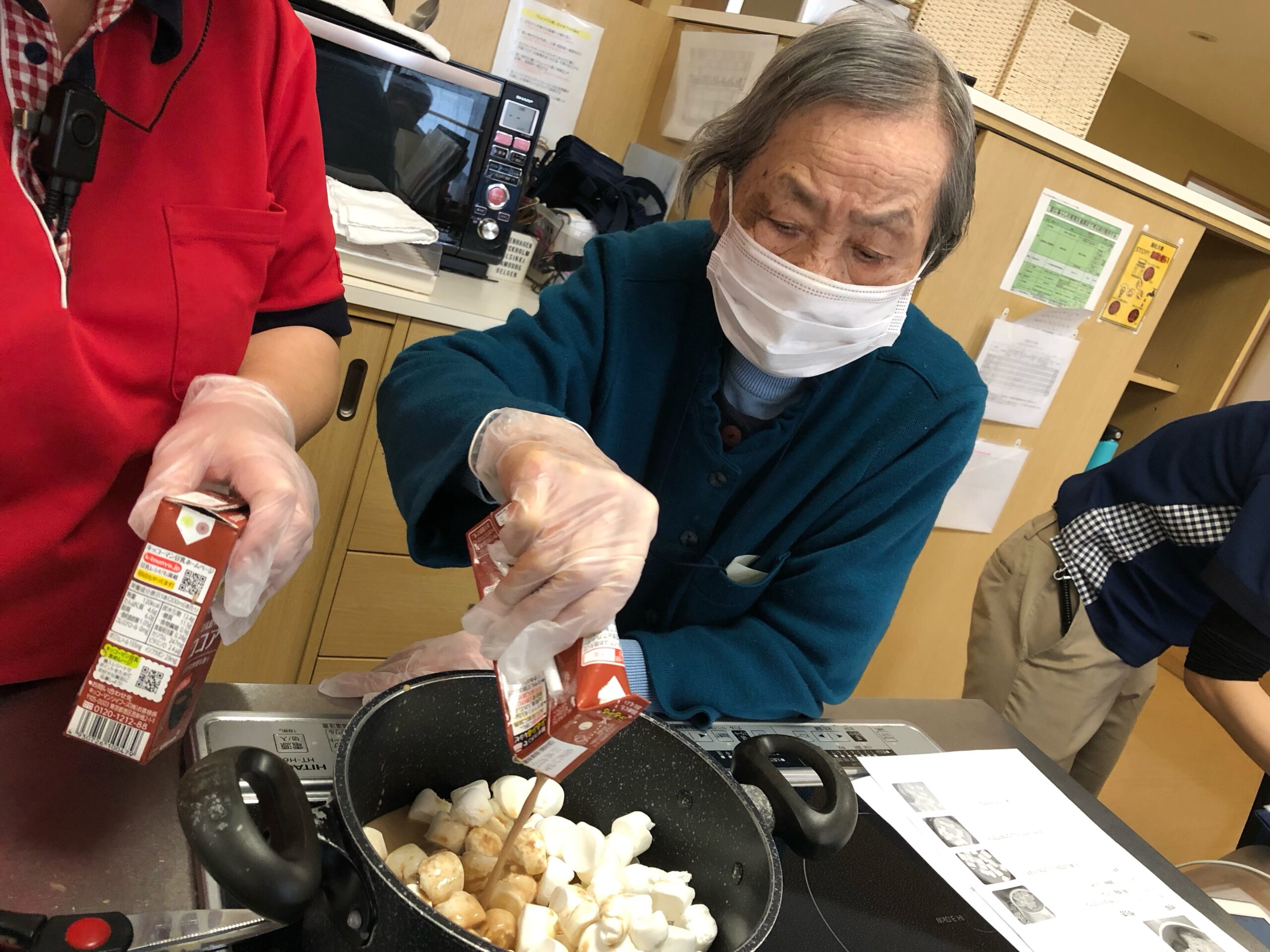 普段の感謝を伝えると共に、糖分制限で普段あまり口にすることが少ないチョコレートを使ってブラウニーとプリンを作り、ホッと一息をつけるような甘さを感じていただく企画を行いました。