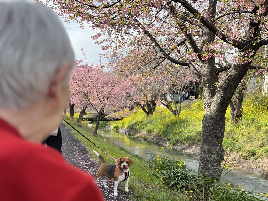 天気の日はお客様と一緒に川沿いを散歩しました。