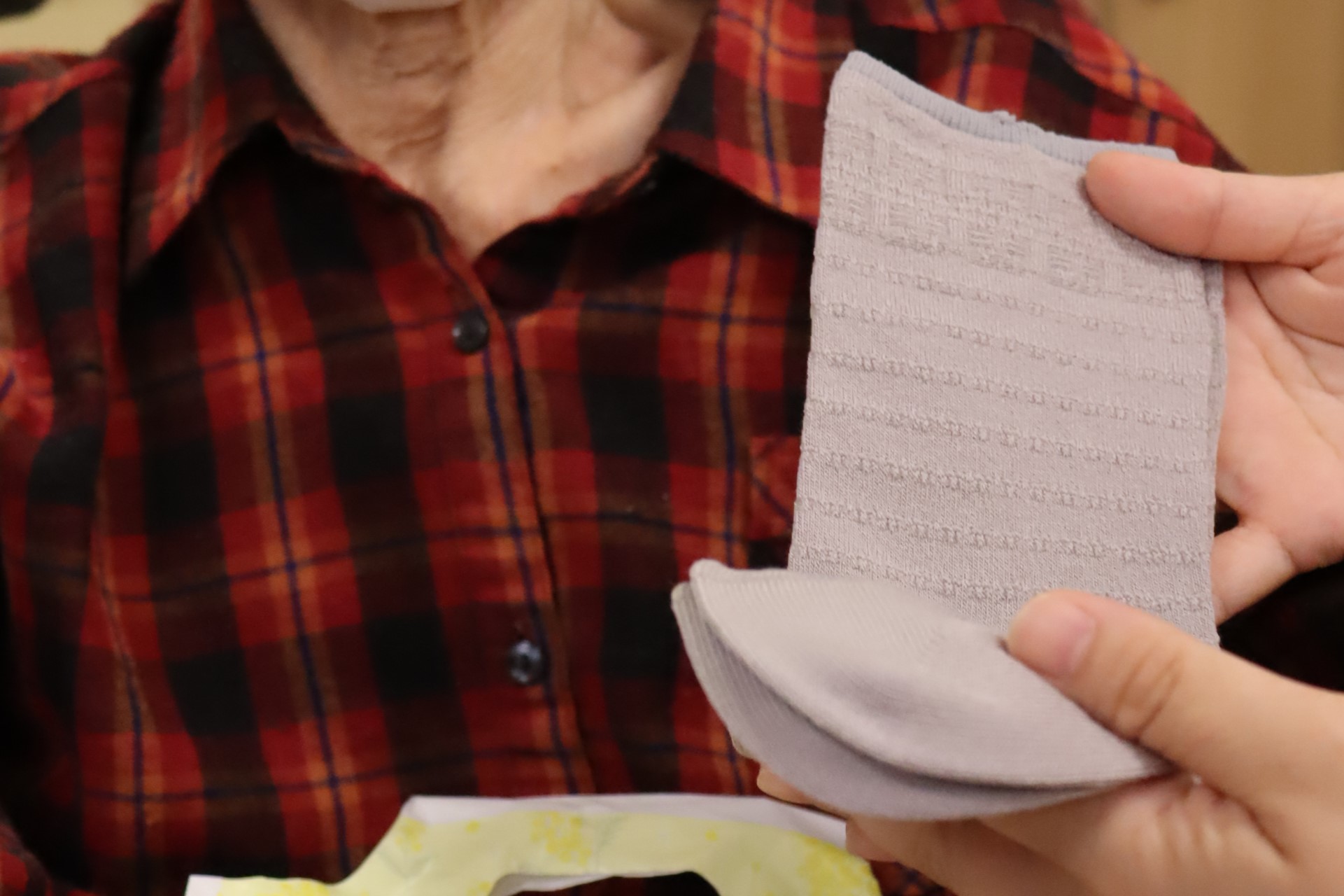 職員がお客様毎にイメージする色、締め付け等のサイズ感、お客様の状態からの履き心地などを加味して選定させていただきました。