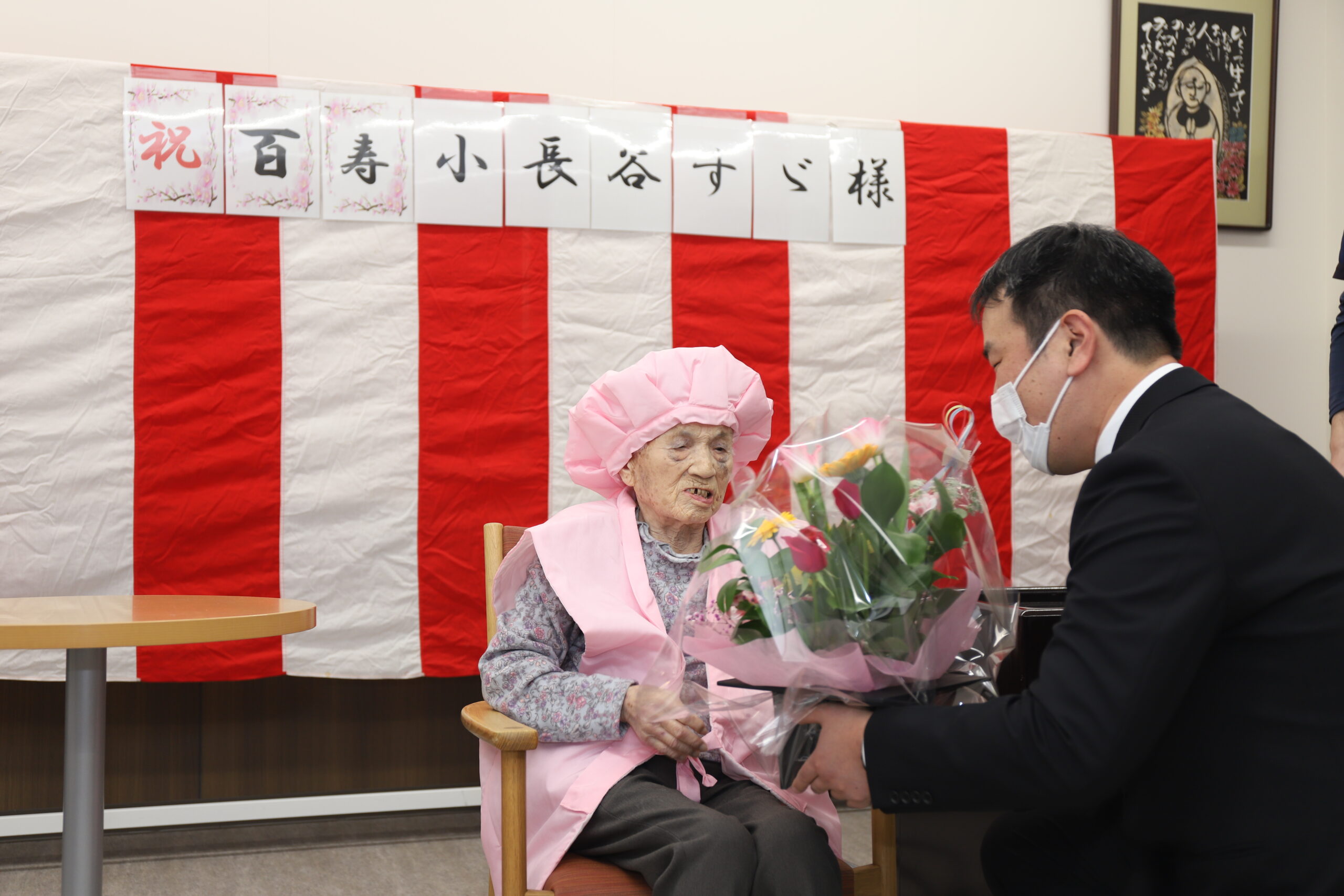 そんな誰もが迎えることができない100歳という誕生日「百寿」をお祝いさせていただきました。
