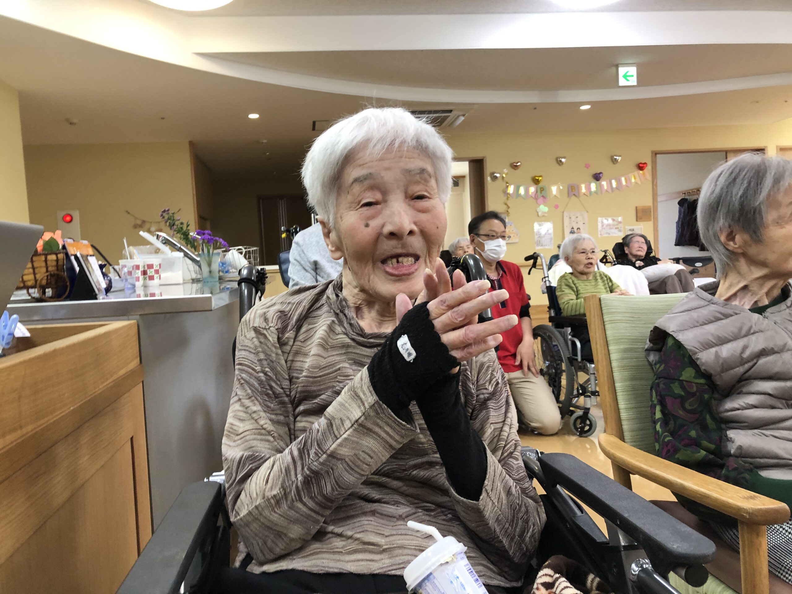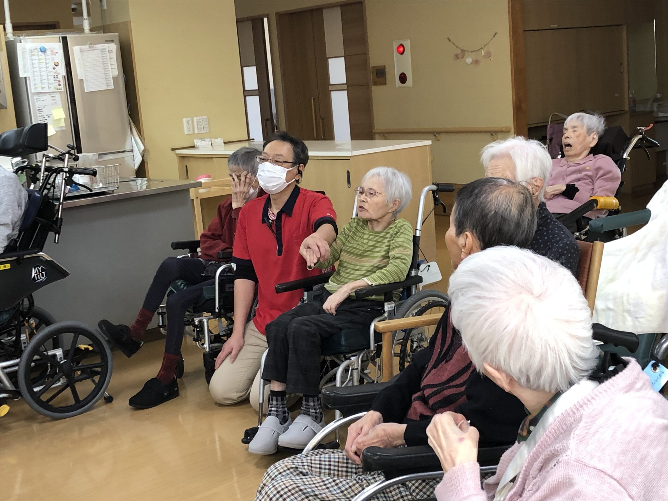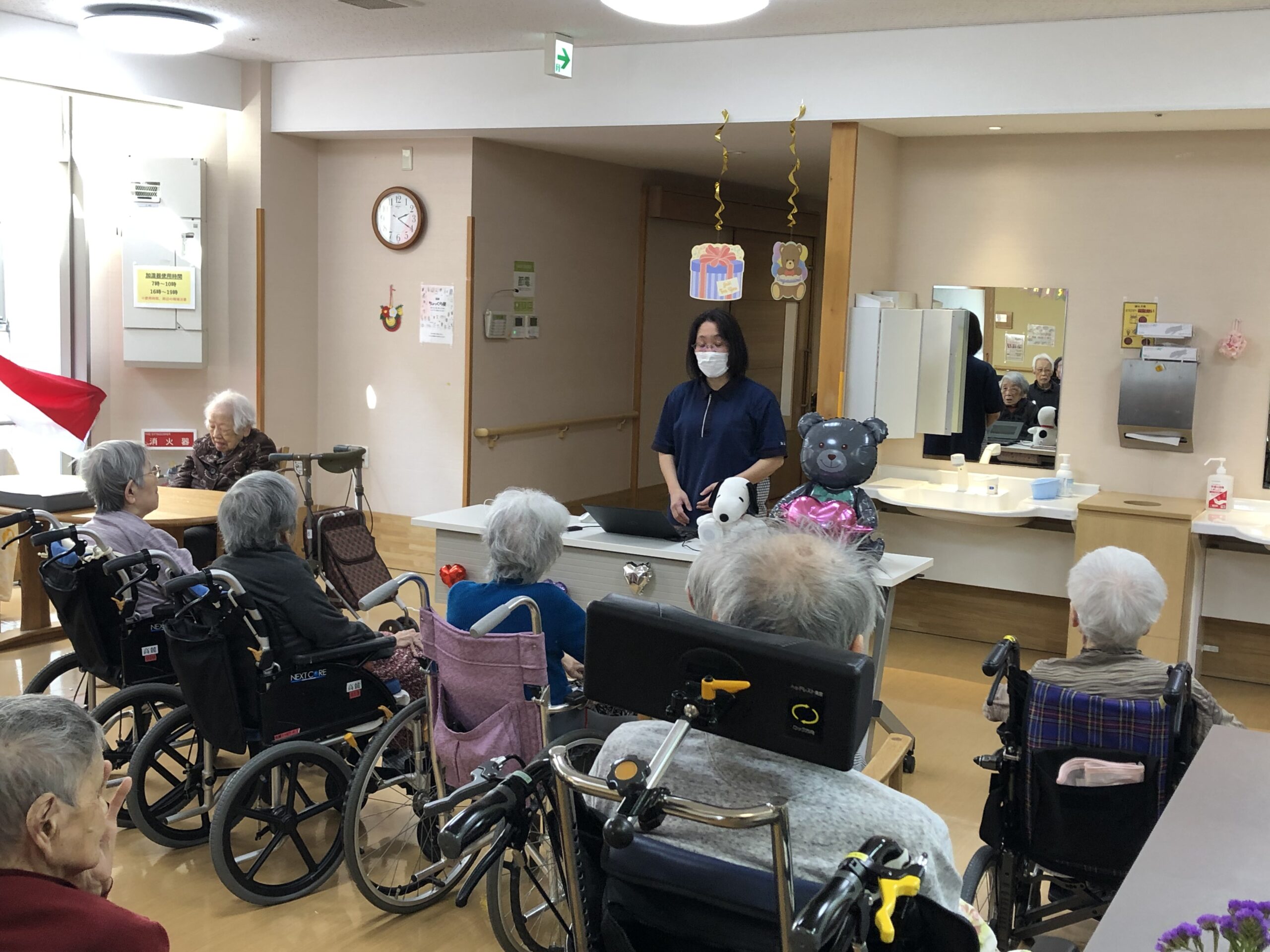 3月生まれの方のお誕生日会では、お客様から歌が得意な職員さんの歌がをまた聞きたい!というリクエストもあり、歌でリフレッシュしてもらおうと企画しました。