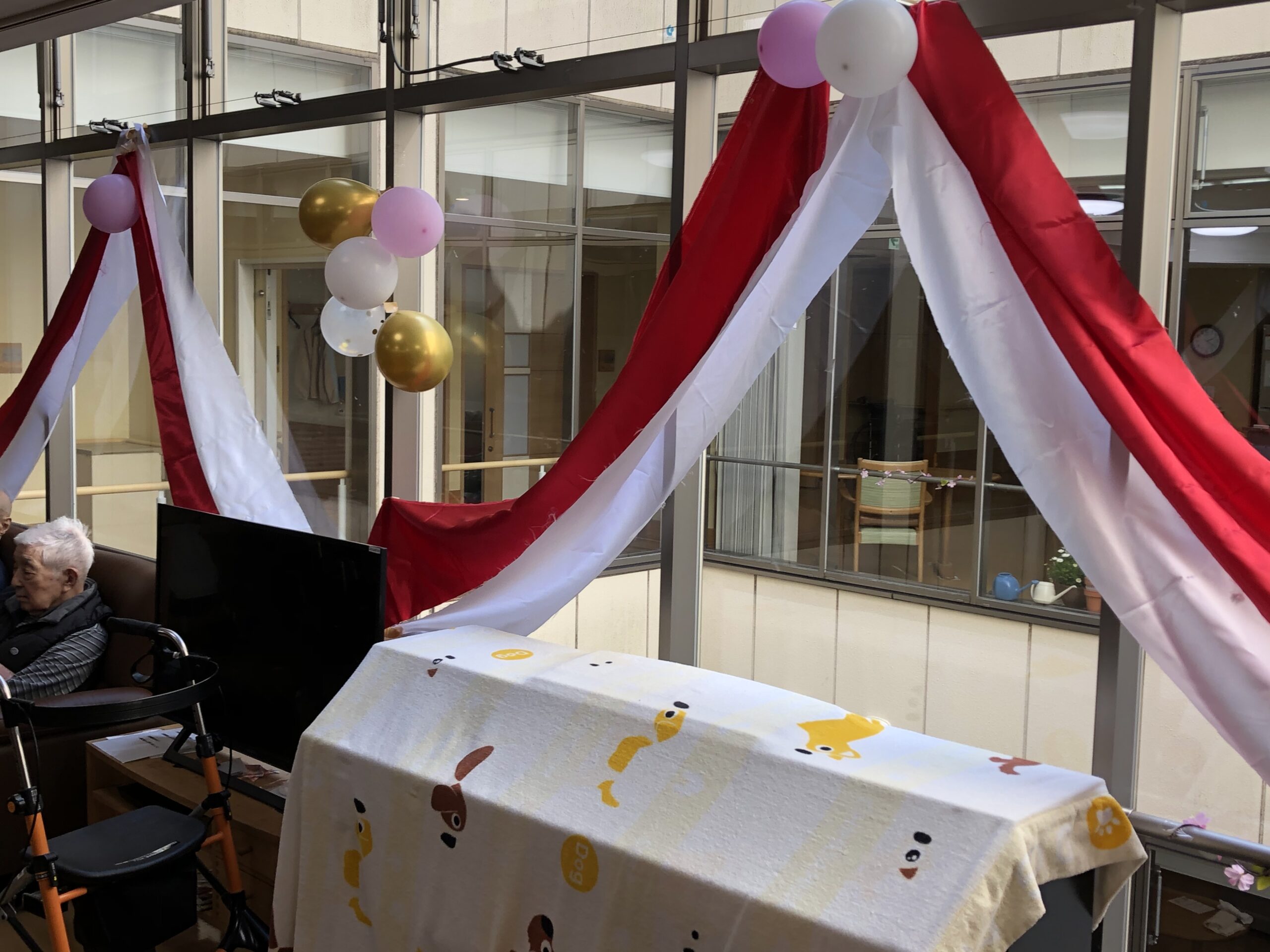 先月から楽しみにされているお客様もおり、職員が飾りつけをしている段階でなんだか嬉しそうです。