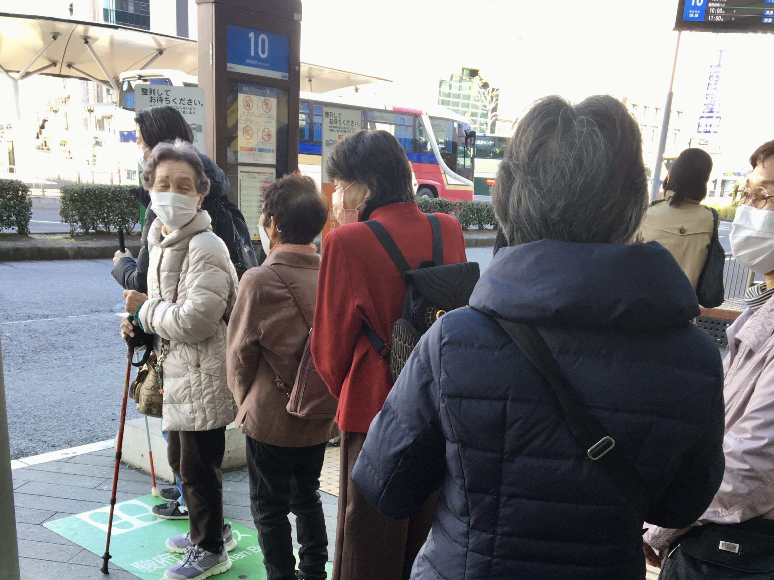 「介護予防運動」の意識も心掛けながら移動しました。