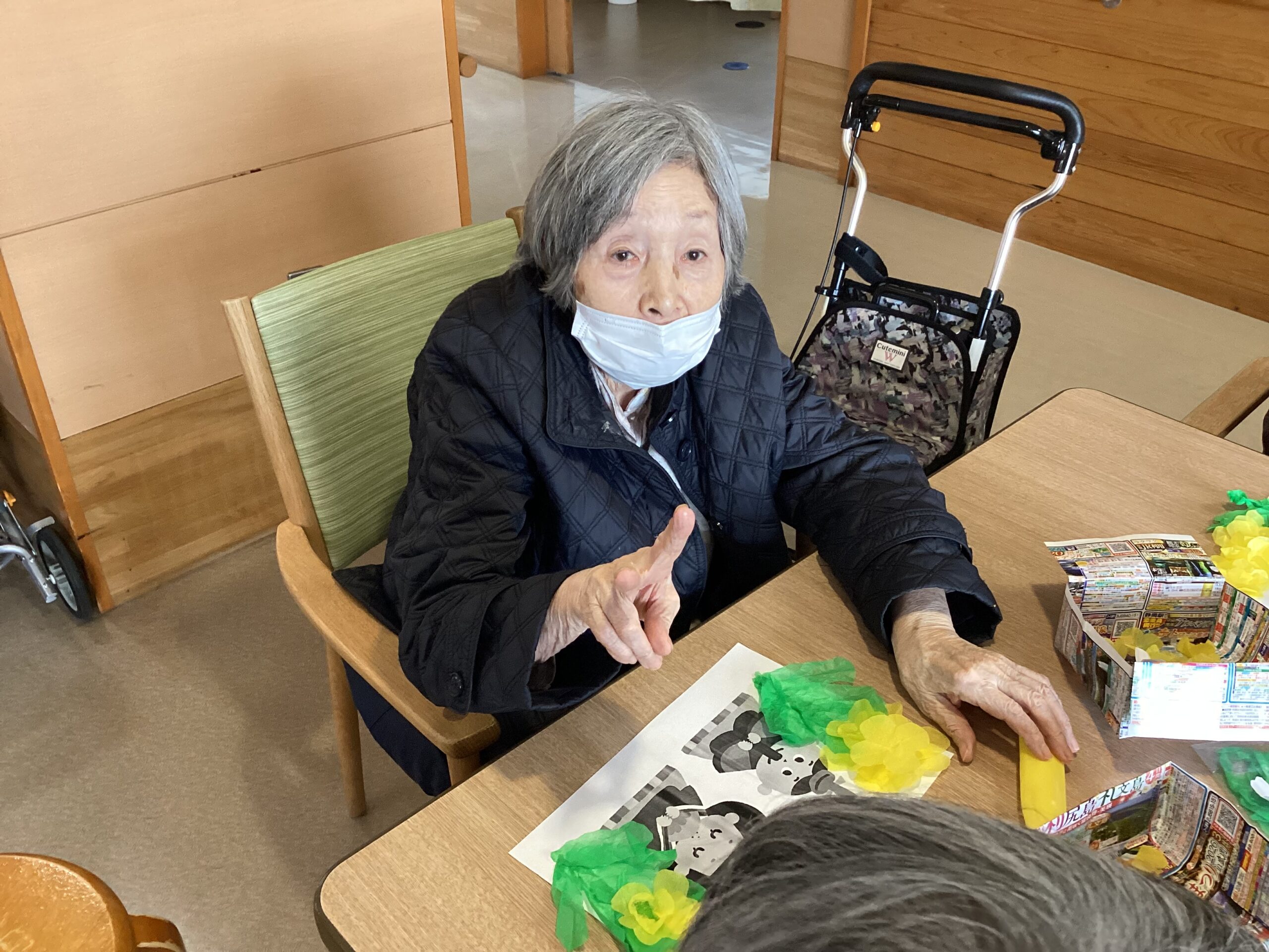 と、完成した菜の花の貼り絵を笑顔で鑑賞され、3月の季節を感じていただけました。