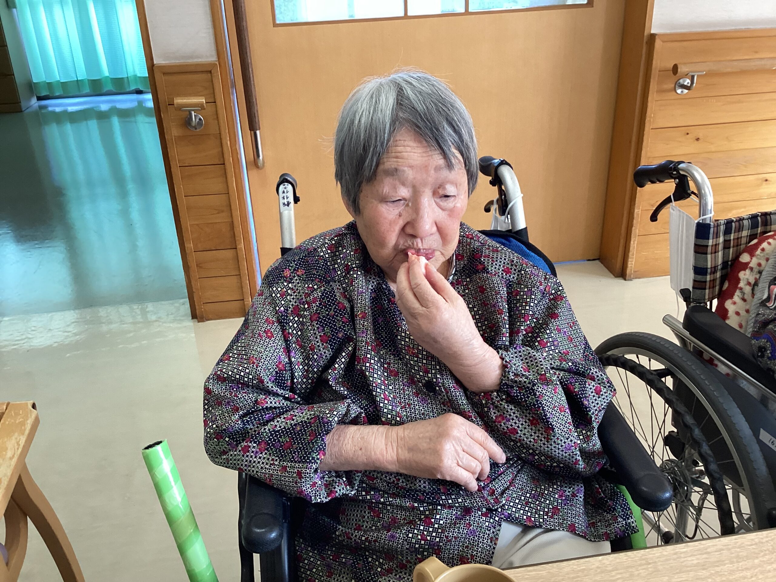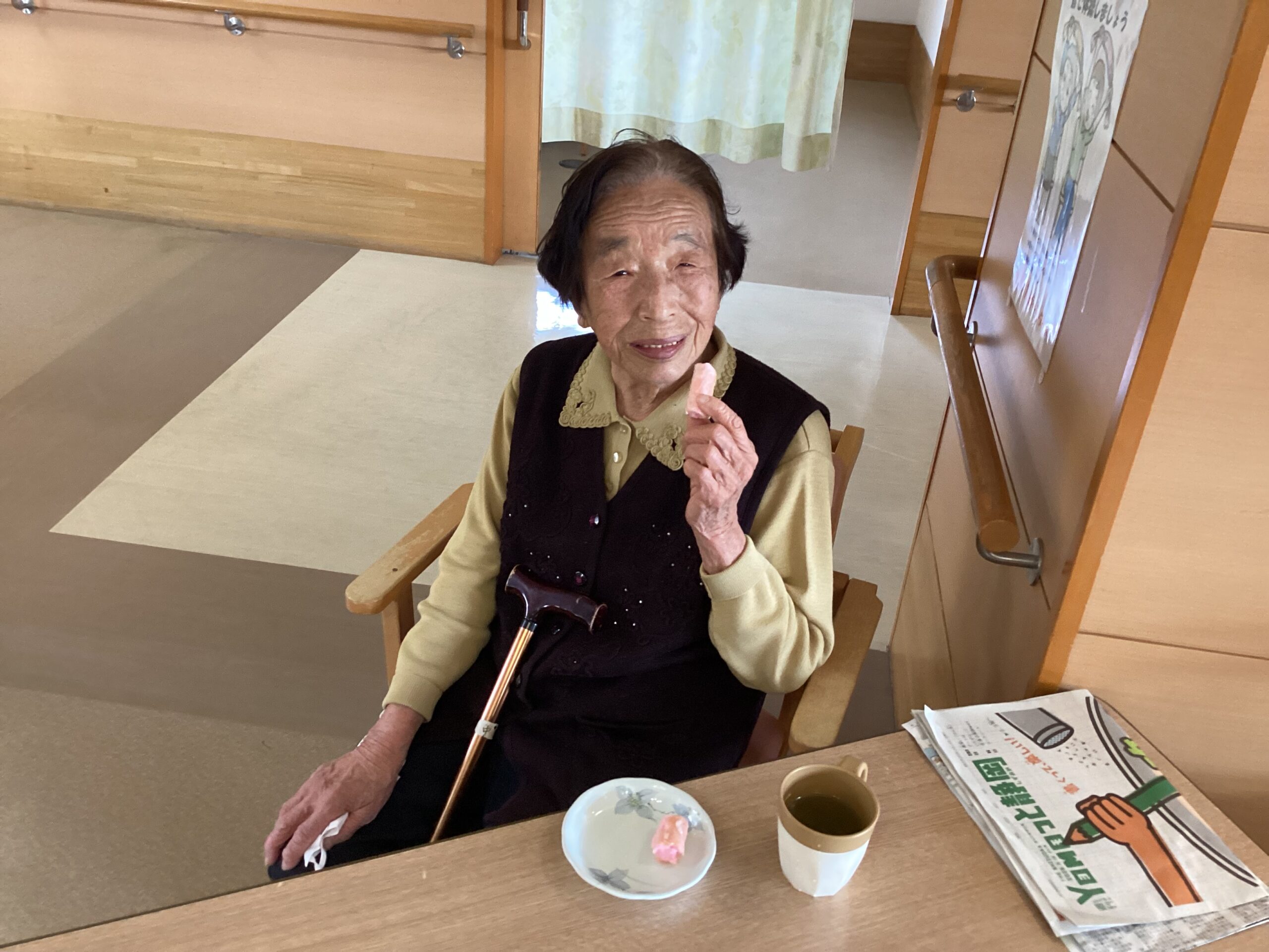制作終了後、間食として、これも春らしい「さくら棒」を提供しました。
