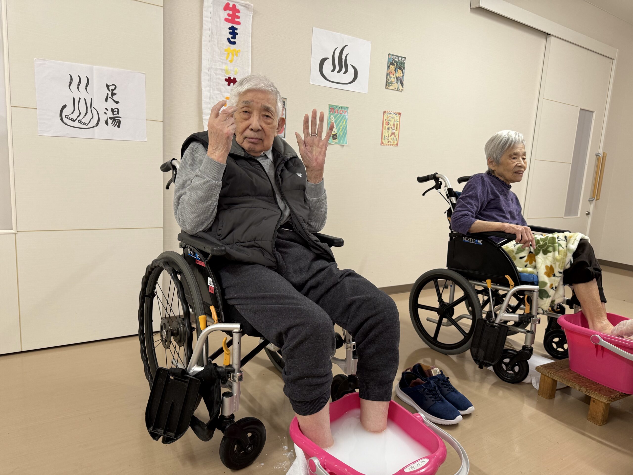 3月も春が訪れたとはいえ、寒暖差があり、肌寒い日もあったため、足湯で温まってもらうことに。