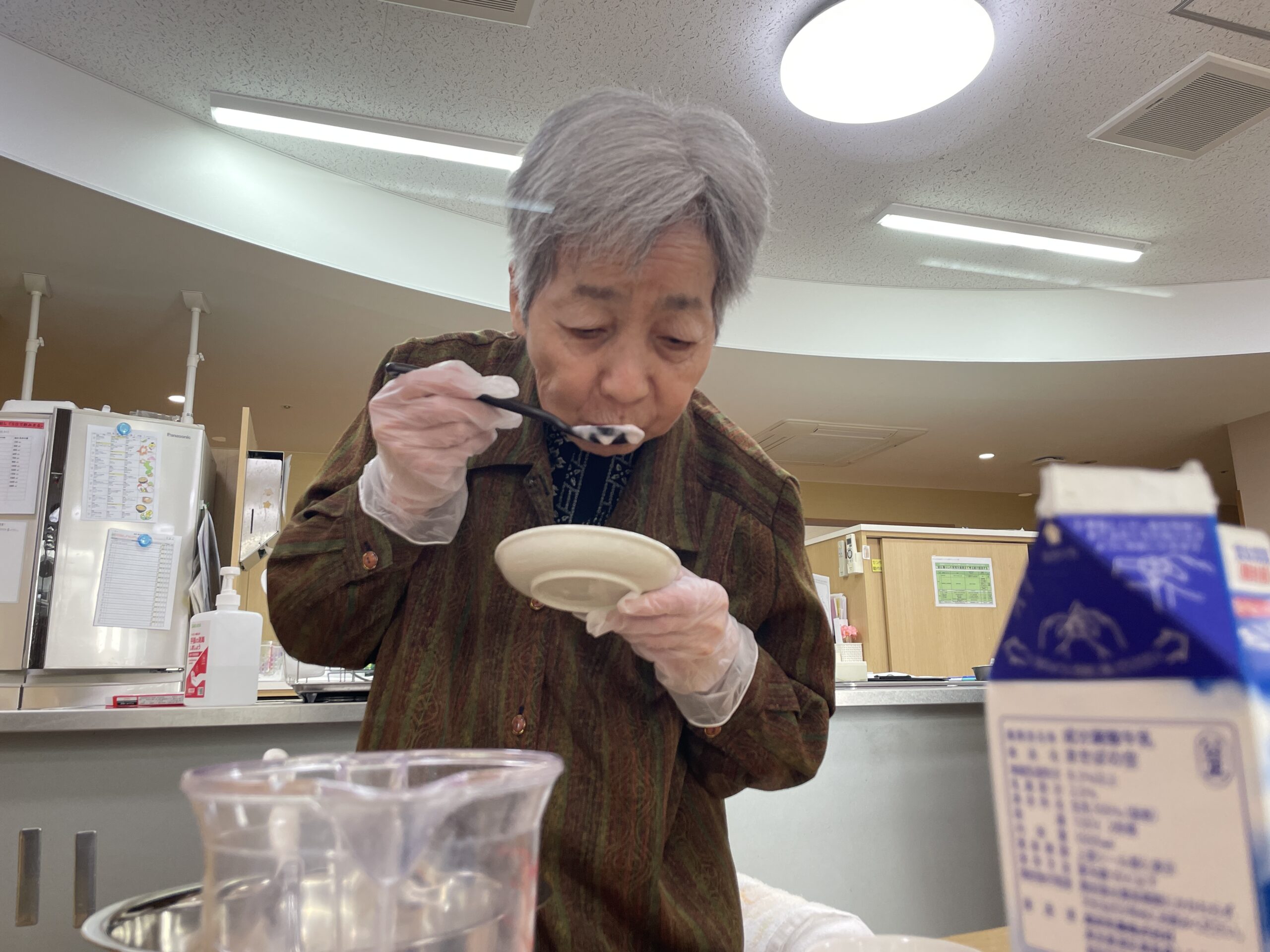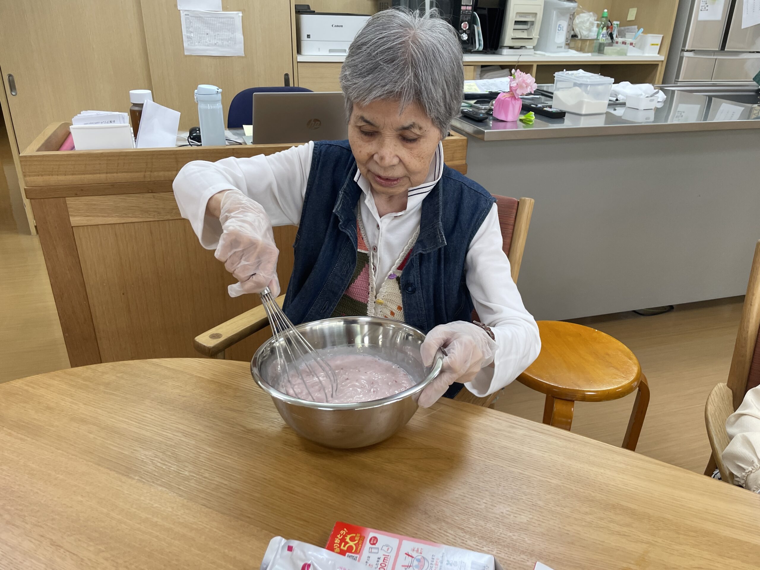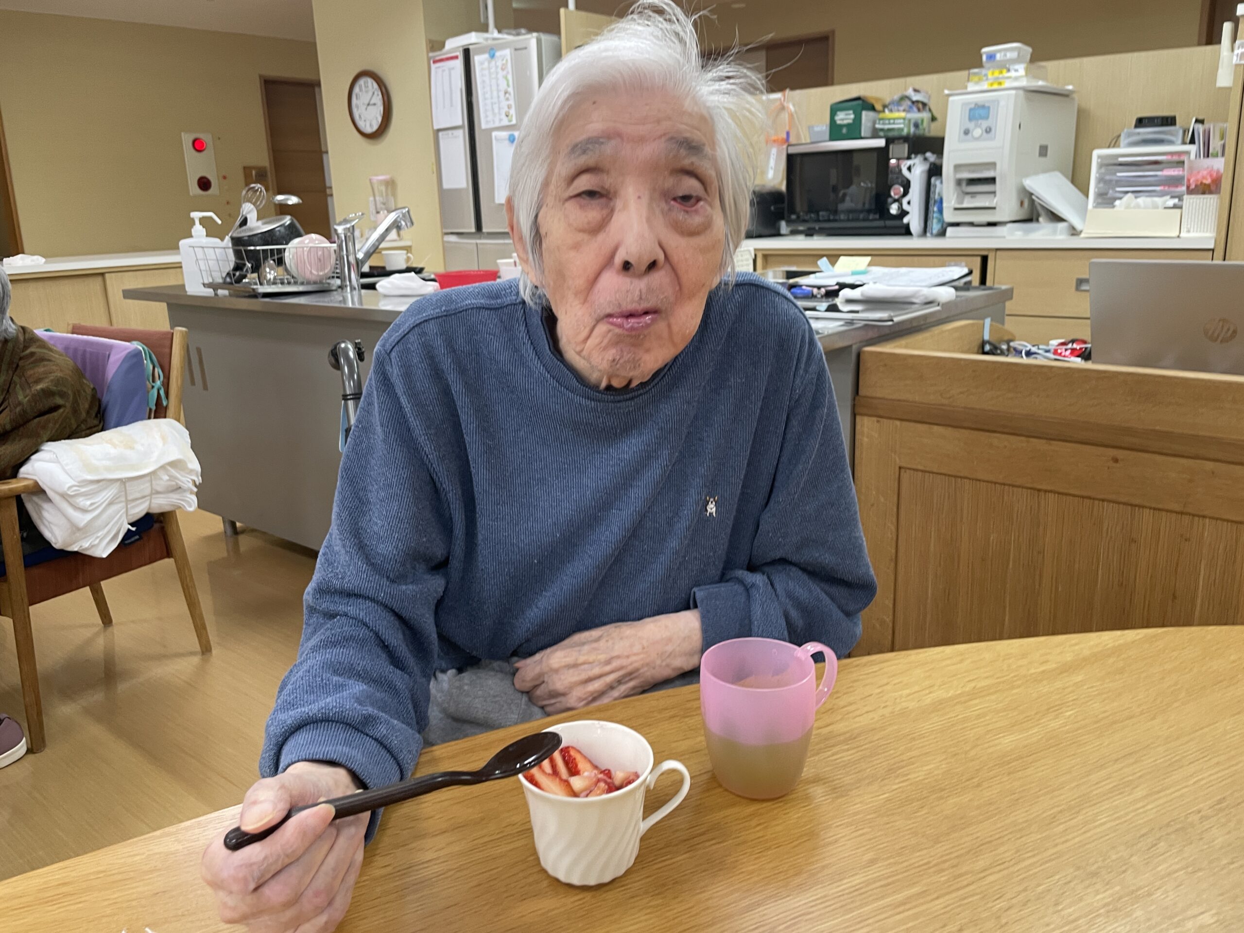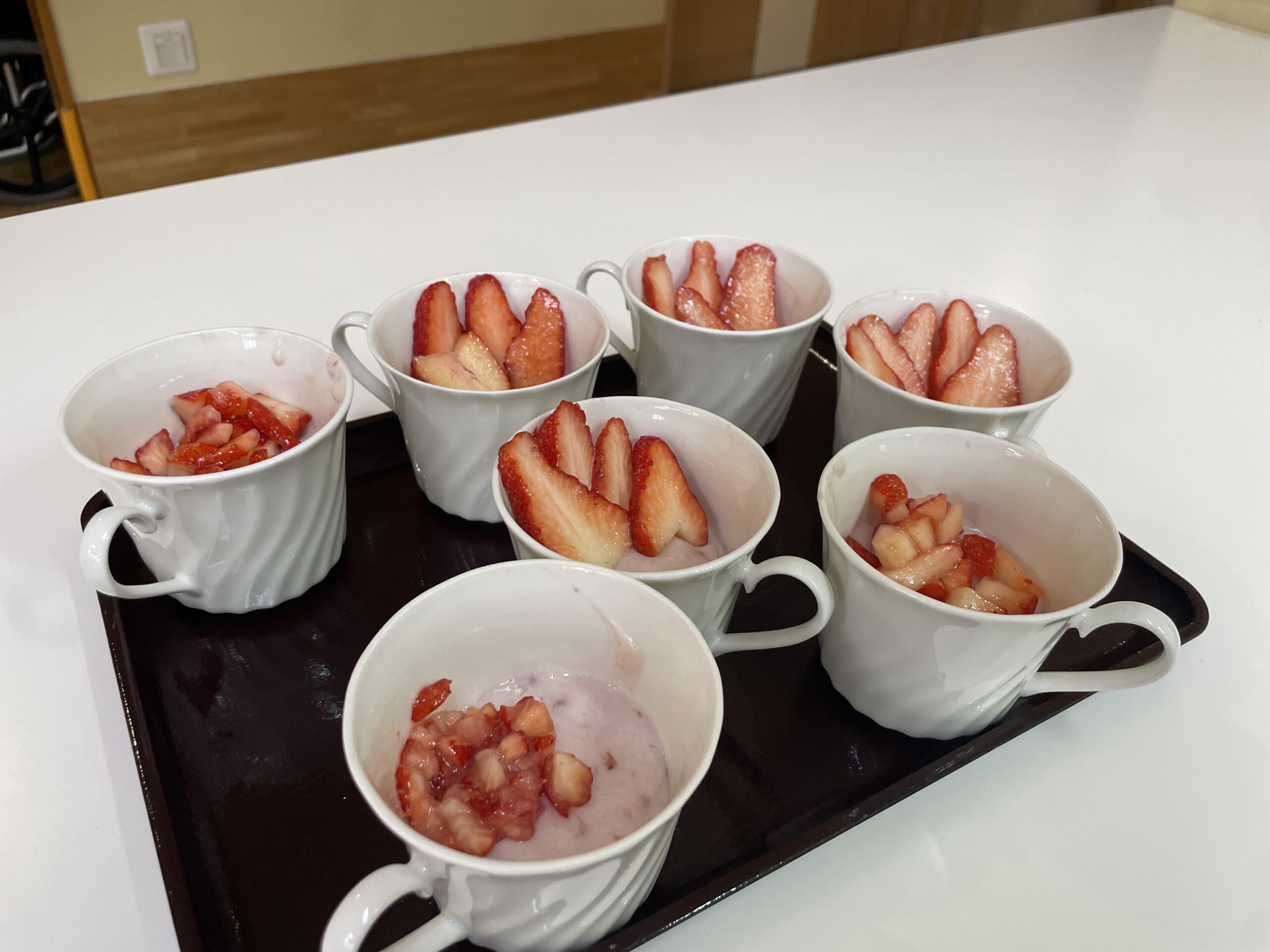 3月はイチゴの旬の季節ということもあり、季節を味覚で感じていただく目的でイチゴフルーチェのレクを企画しました。