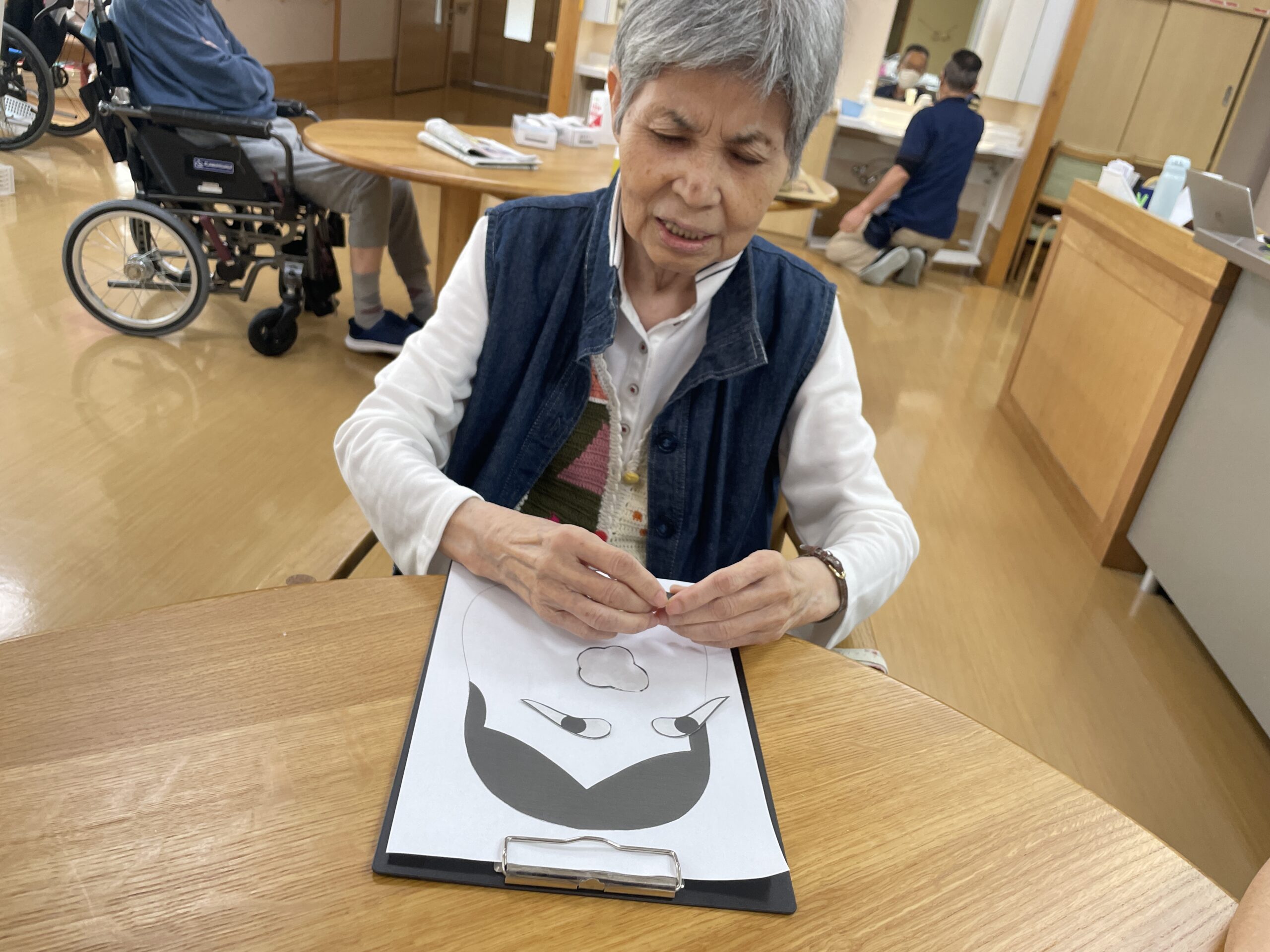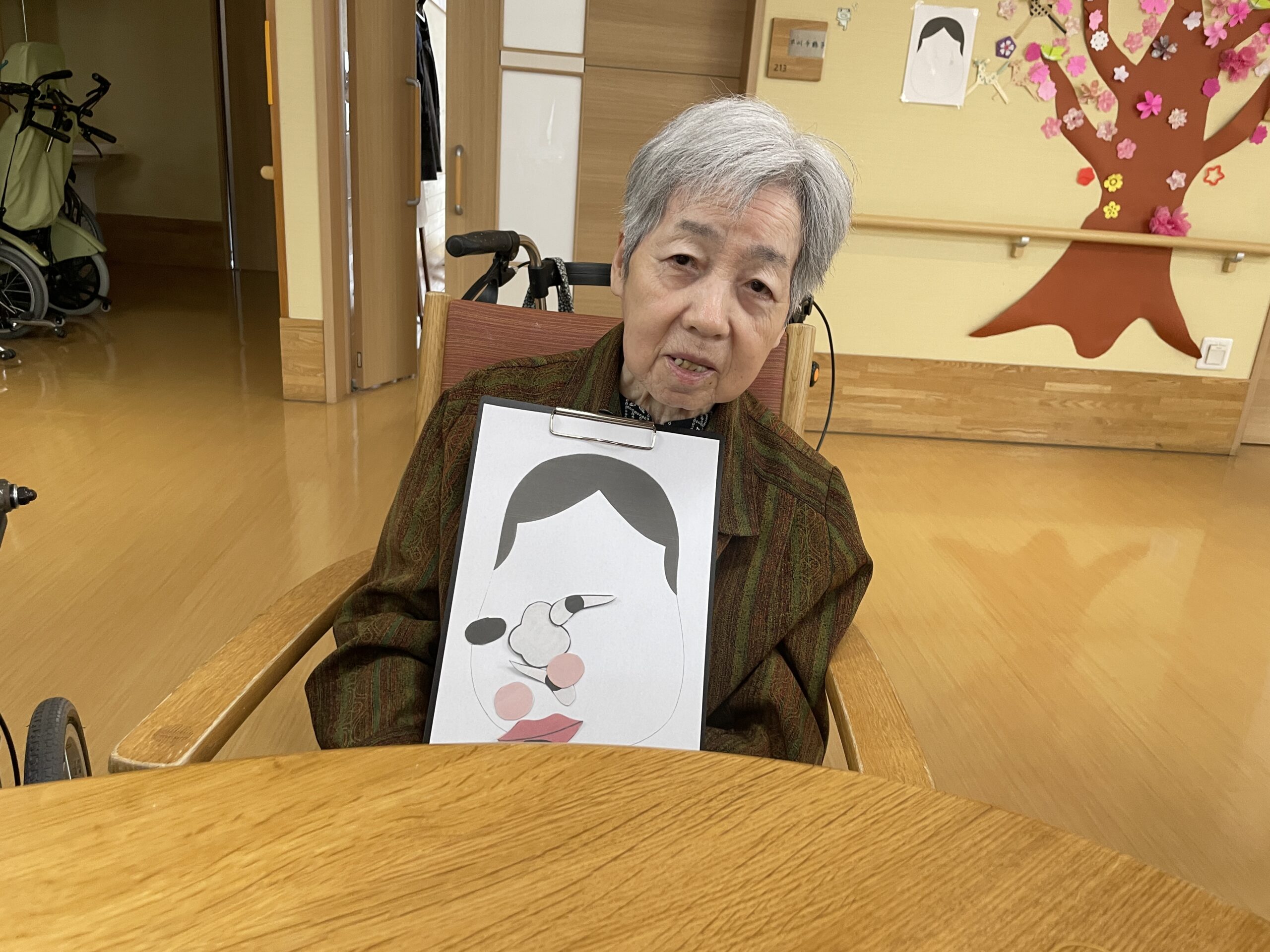 フルーチェを冷蔵庫で冷やしている間には、認知機能の訓練を兼ねた福笑いのレクリエーション。