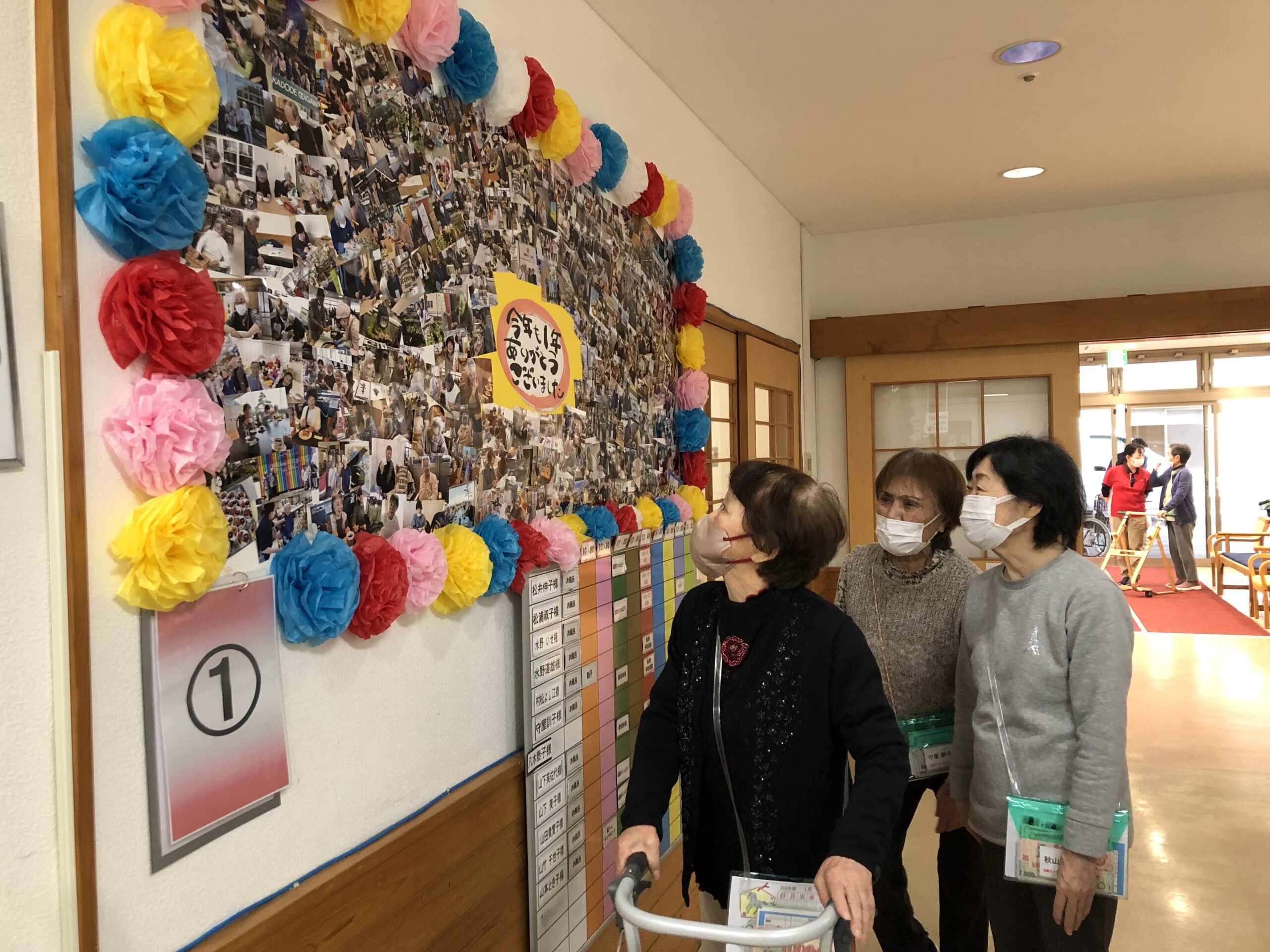 また、デイサービスの入り口付近には皆さんが真剣に活動に取り組む姿や笑顔の写真を展示をしました。