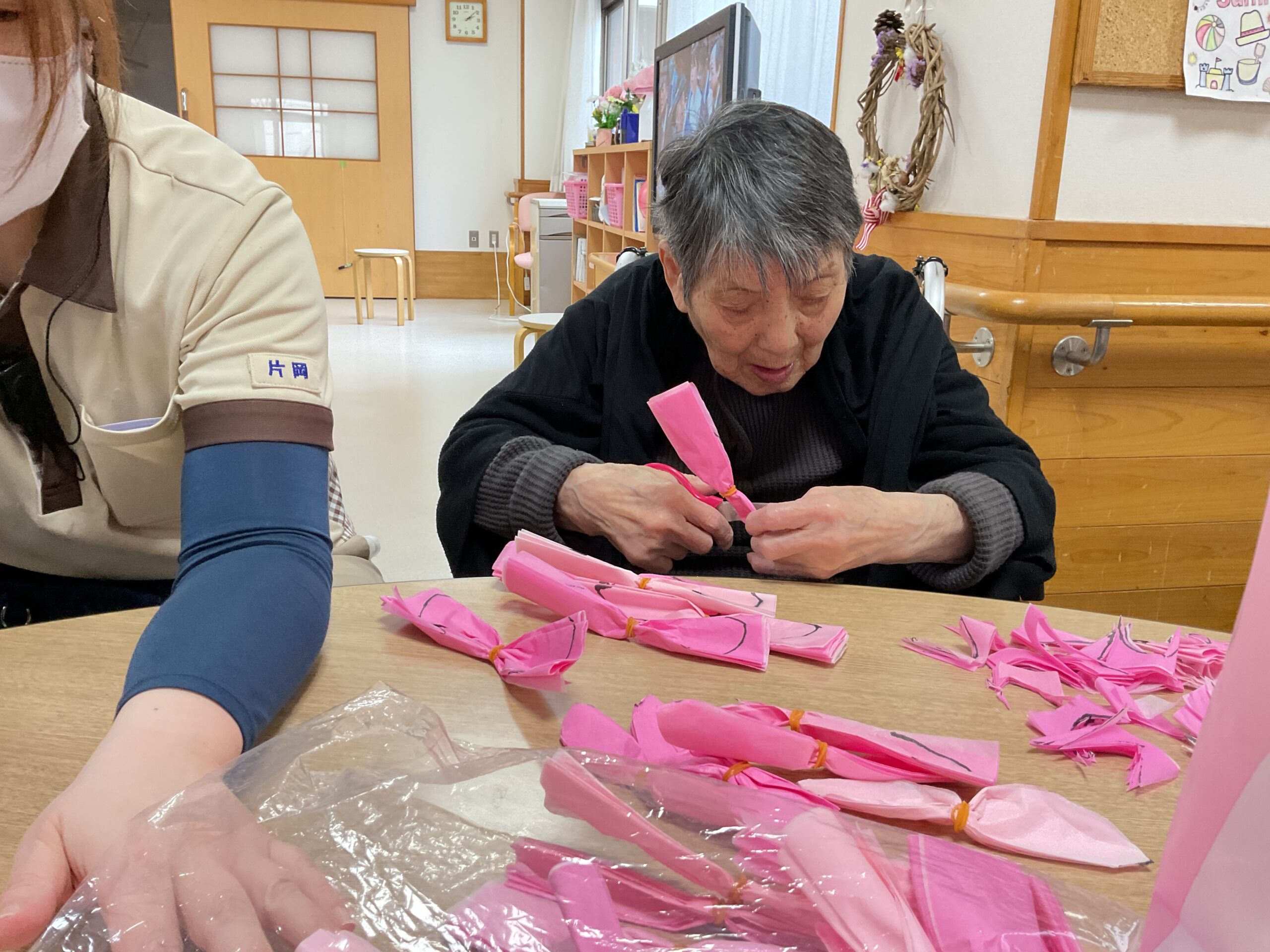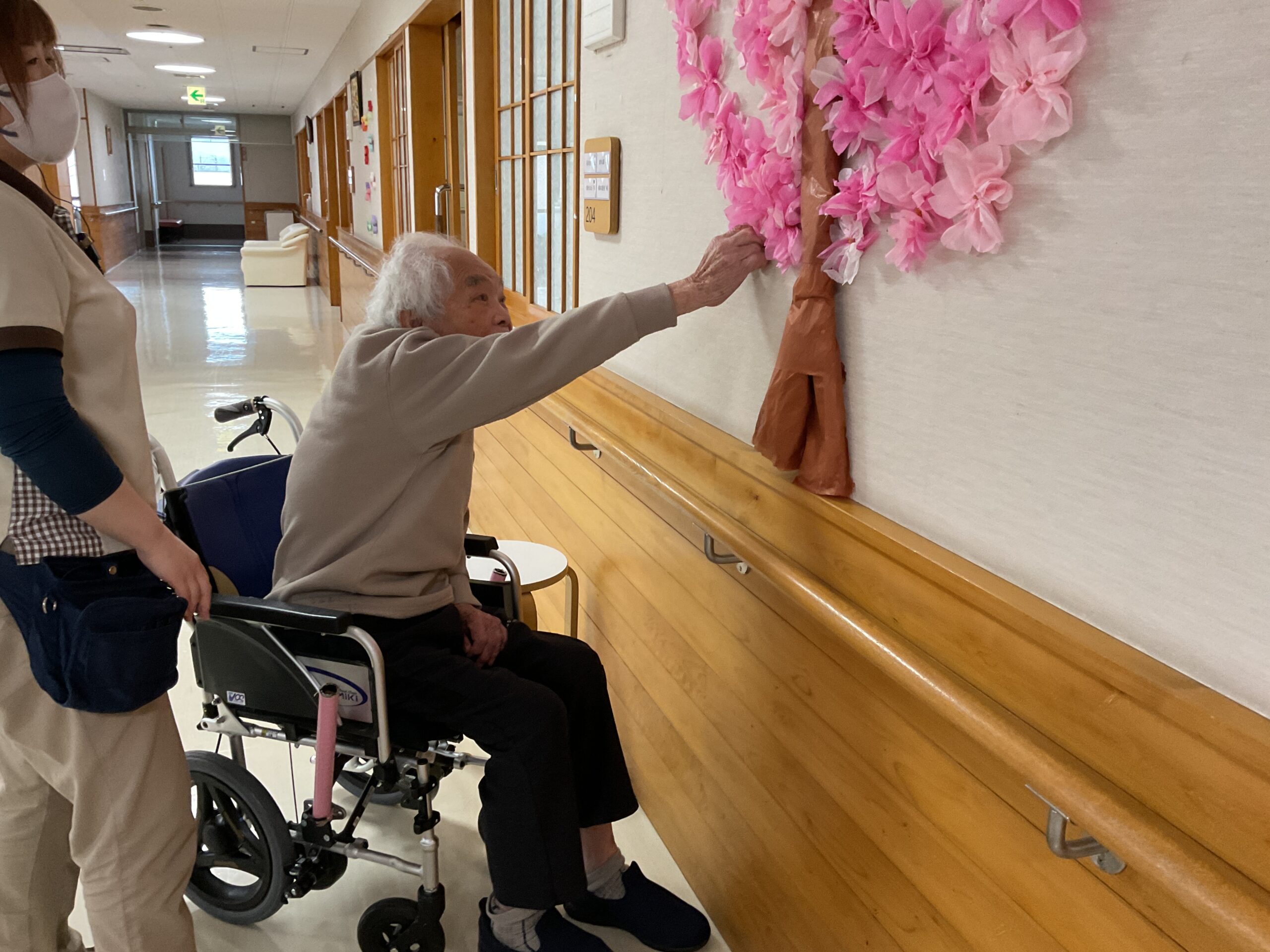 本館2階のフロアにも春の風を呼ぶべく、お客様と貼り絵のレクリエーションの企画を実施しました。