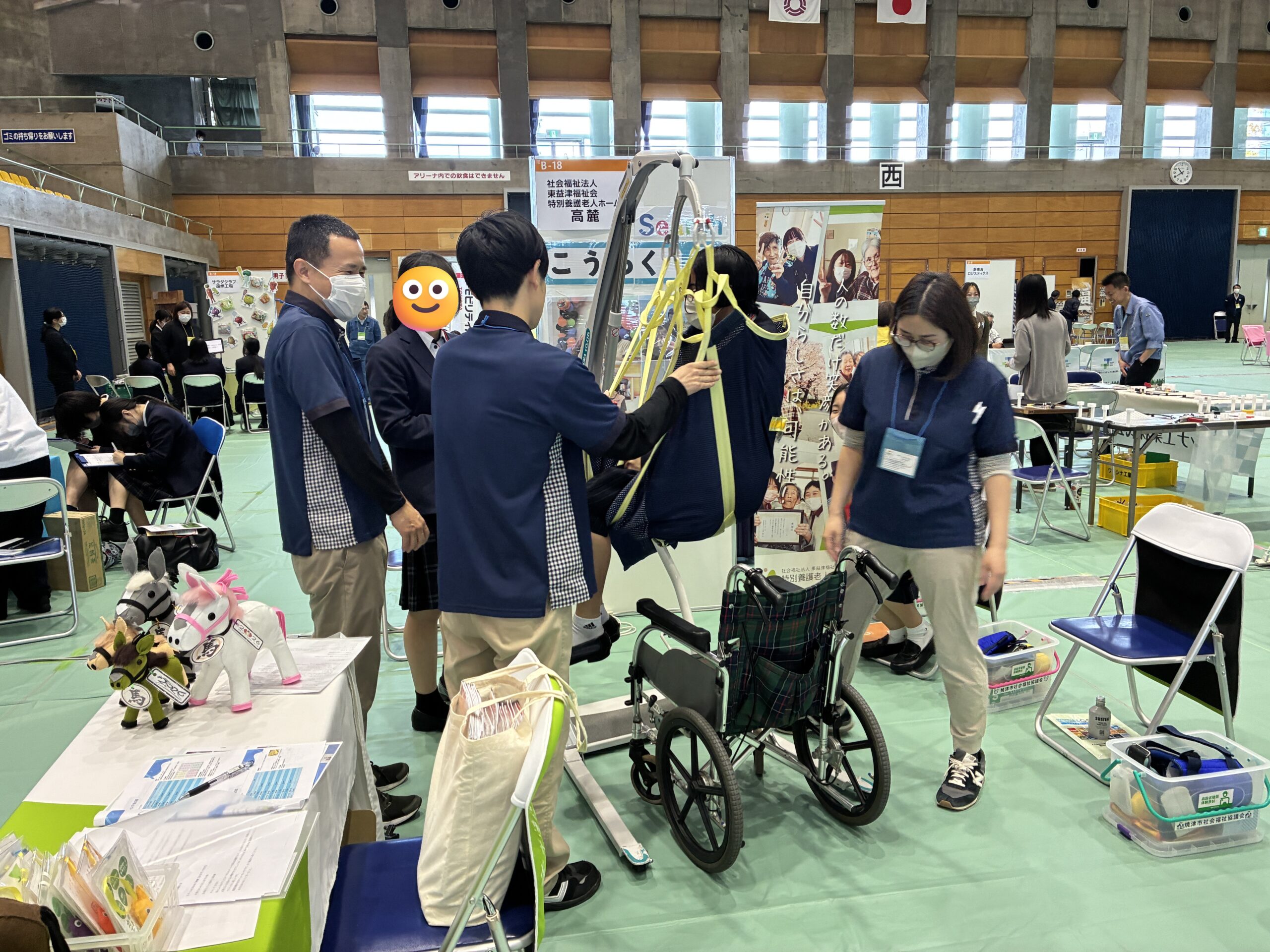 高麓では、介護のイメージチェンジを中心に、専門の学校で学ばなくとも(より学んだほうがよいですが)介護の仕事にチャレンジでき、働きながら国家資格「介護福祉士」が取れること、力がなくともボディメカニクスの理解や介護ロボット・用具を用いれば簡単に介助ができる技術職であることを知っていただく機会としました。