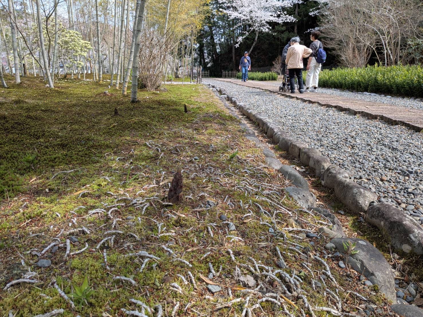 玉露の里では庭園を散歩し、池の錦鯉にエサをあげたり、道脇に筍の頭が出ていたり、季節を感じることが出来ました。