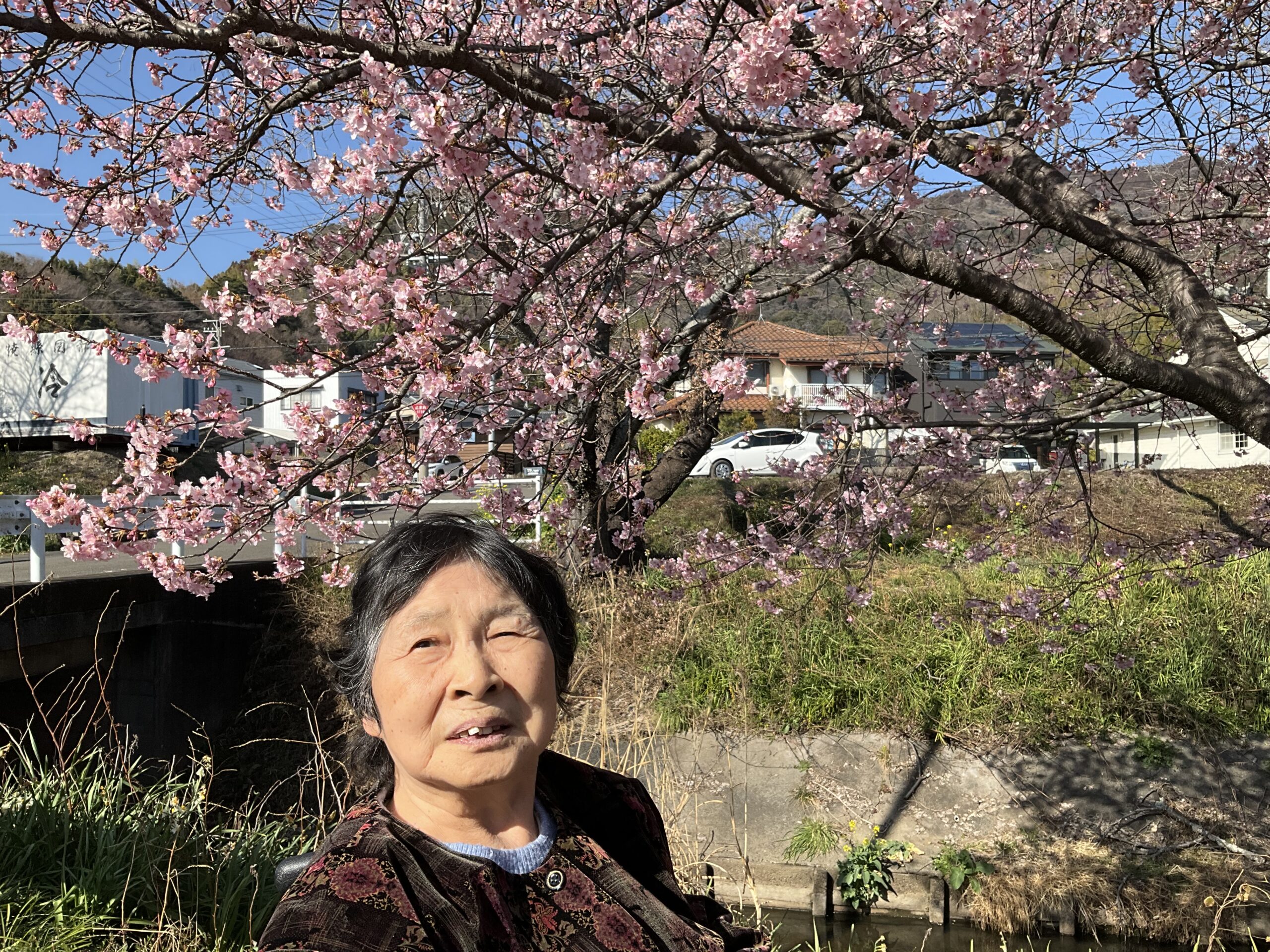 普段、施設の中では動きの少ないお客様も自ら歩行器を押して、色んな景色を見て楽しむことができ、春風を感じ、表情明るく散歩することが出来ました。