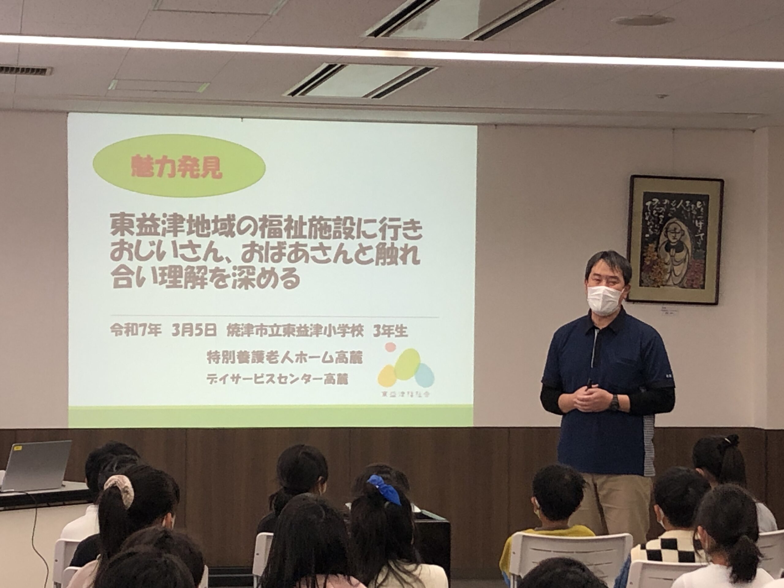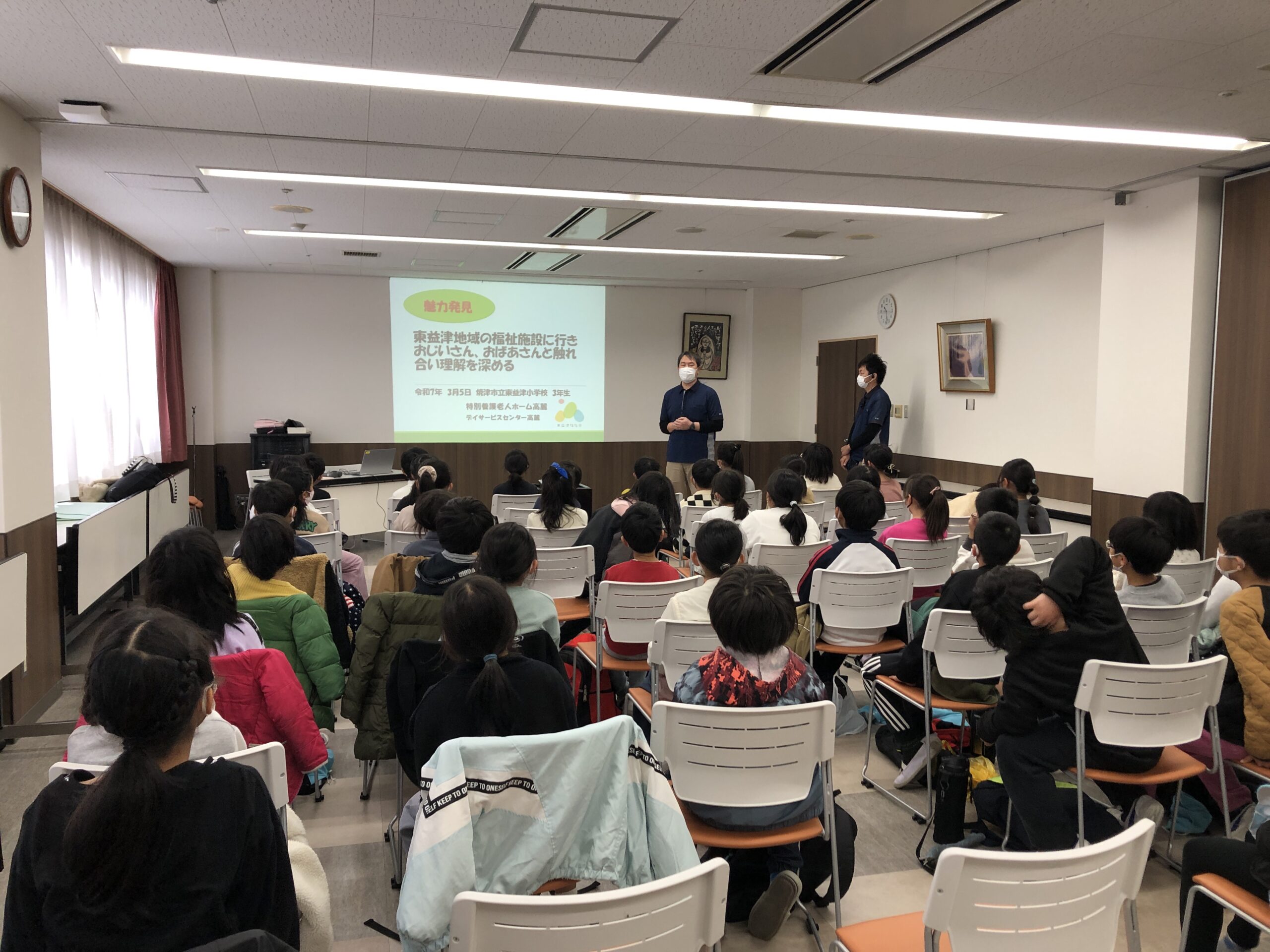 東益津小学校3年生が地域の福祉施設のことを学ぶために高麓デイサービスの見学とお客様と交流をしてくれました。