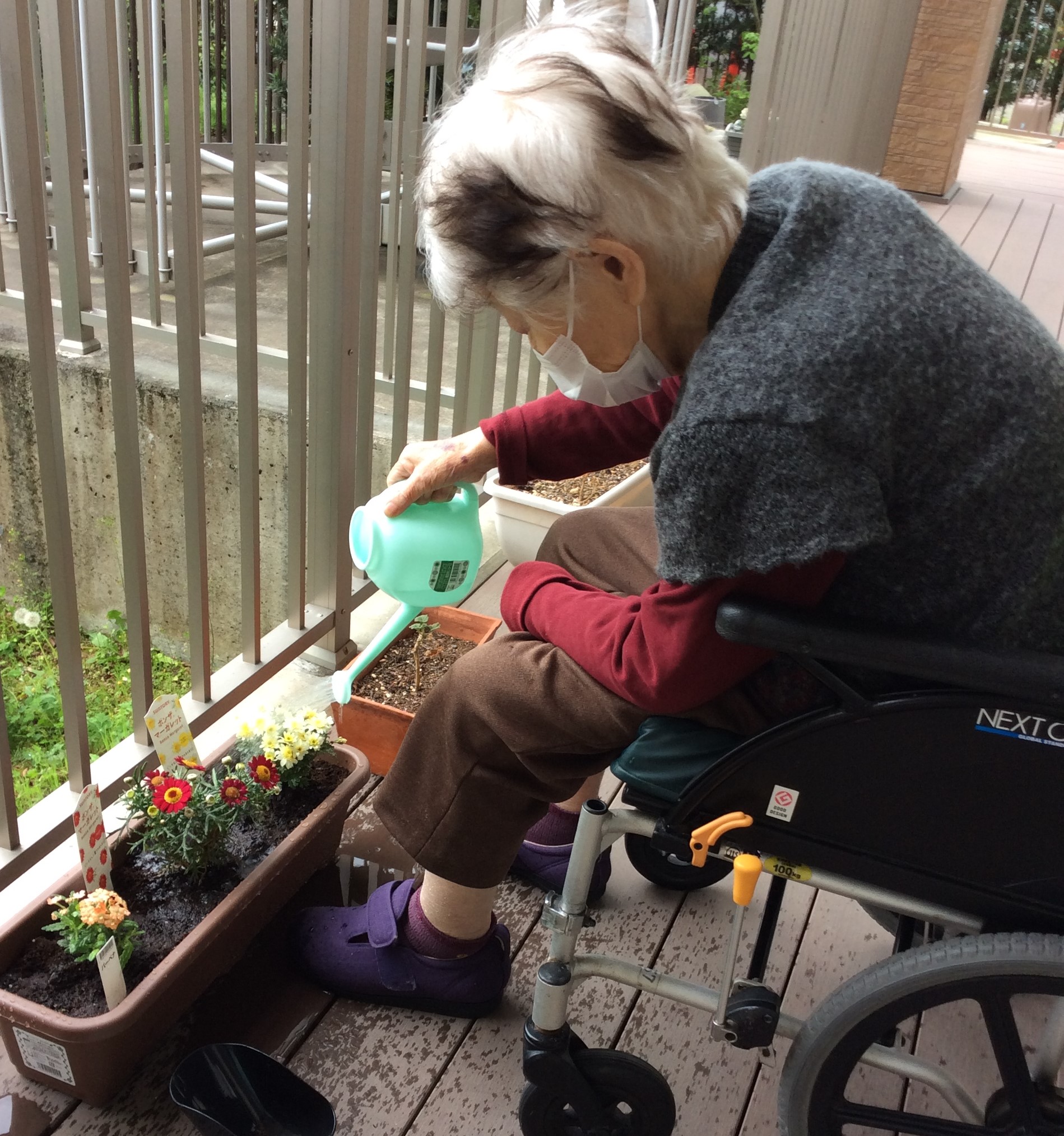そのため、お客様と職員でお花を植え、お世話をしていこうと園芸レクを始めました。