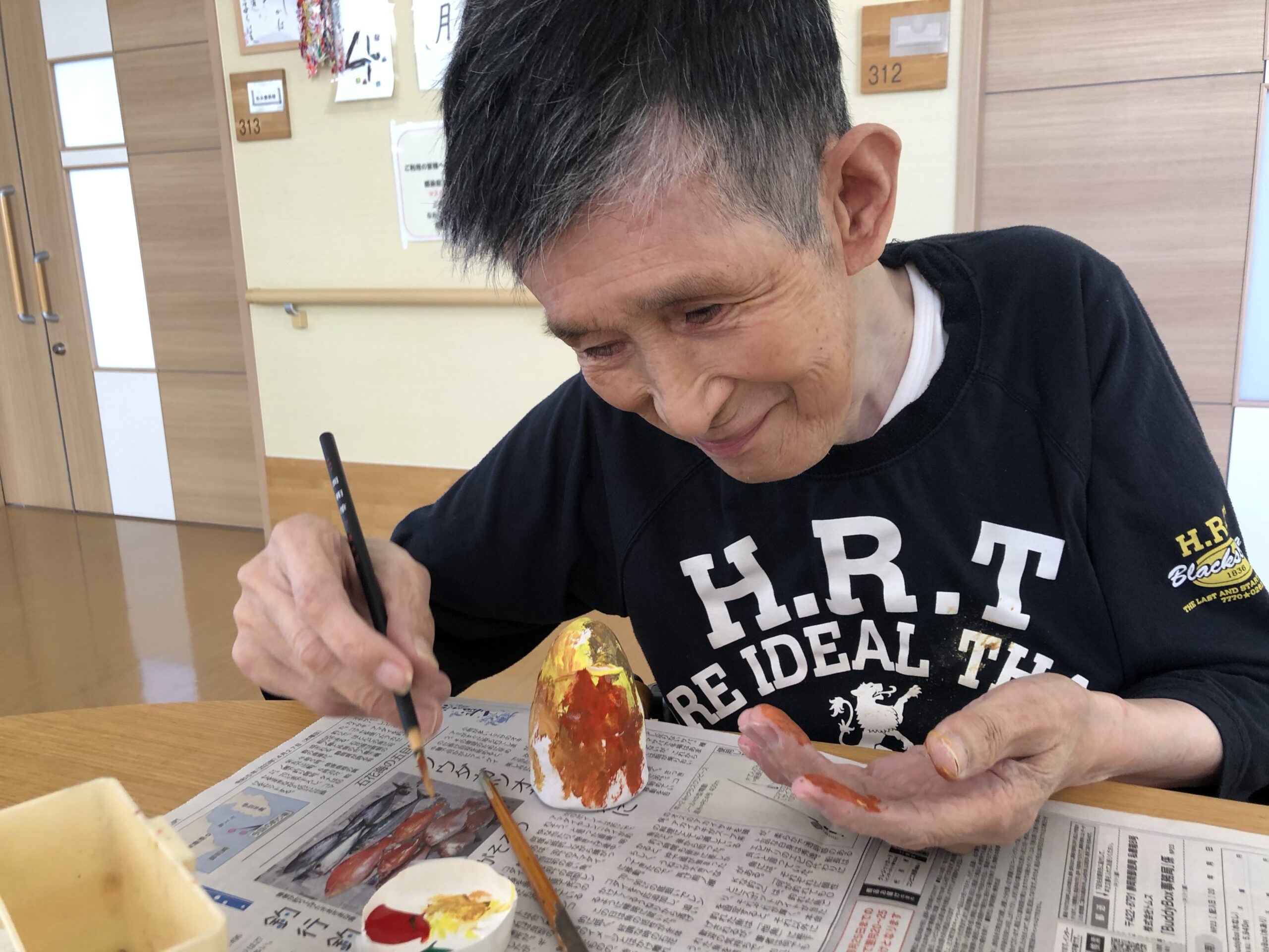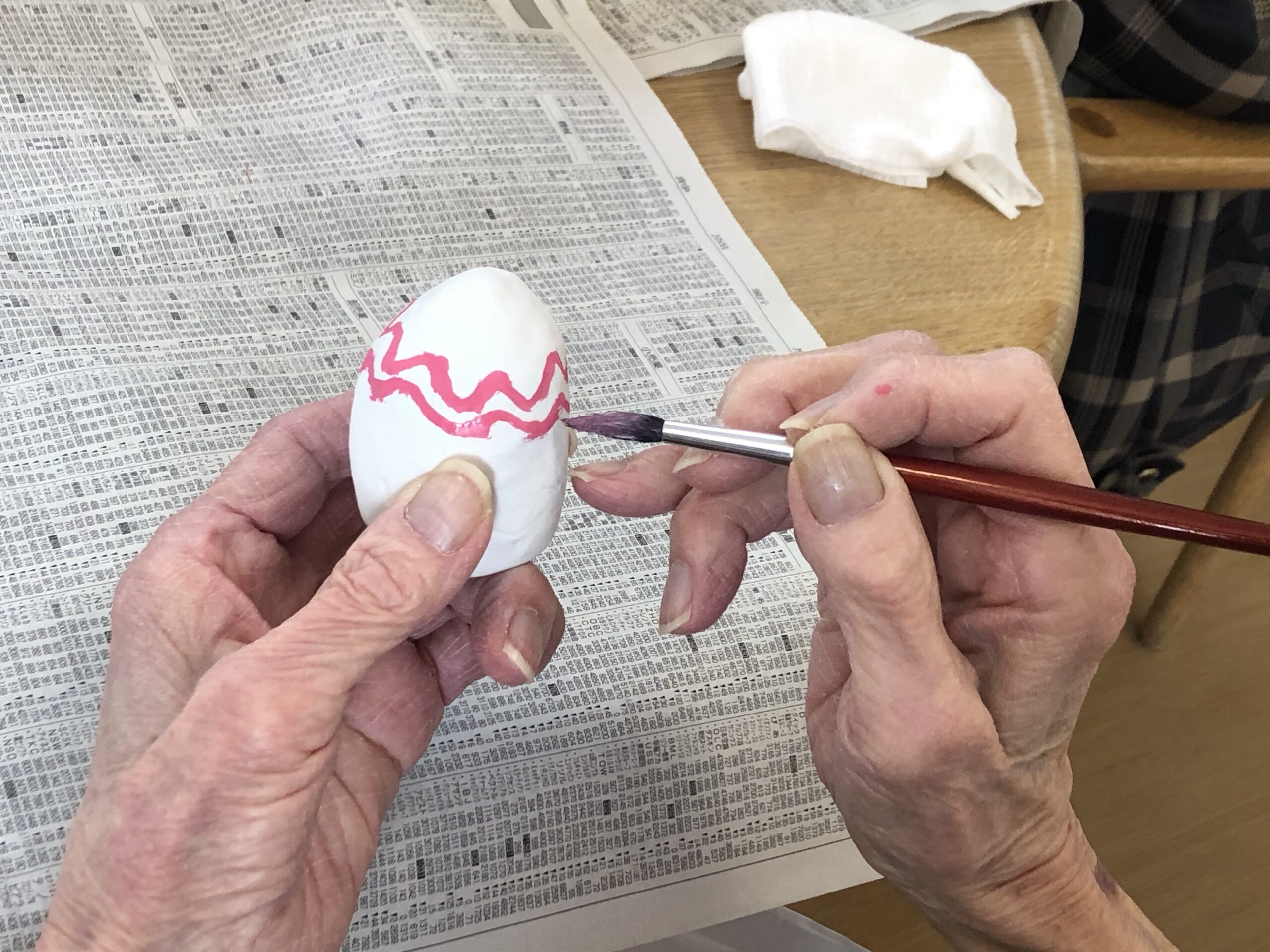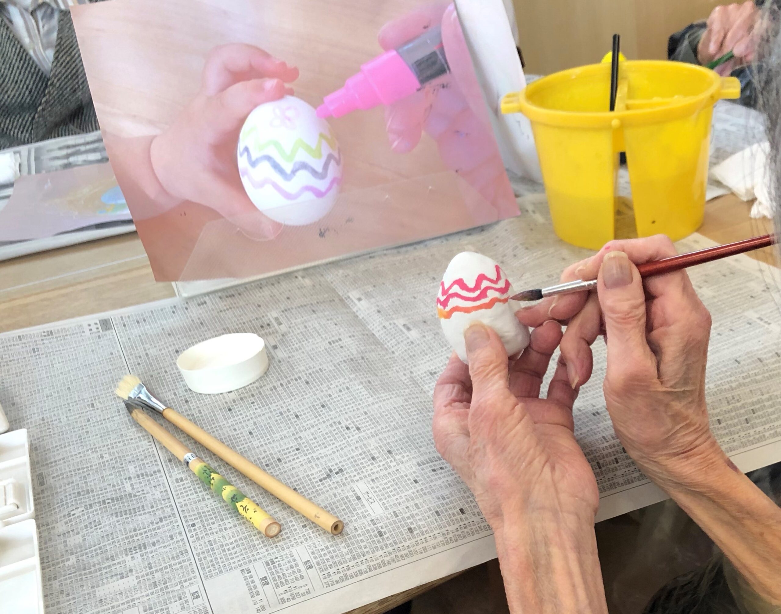 ということで、ユニット3階のお客様と職員と一緒にイースター・エッグ作りに
