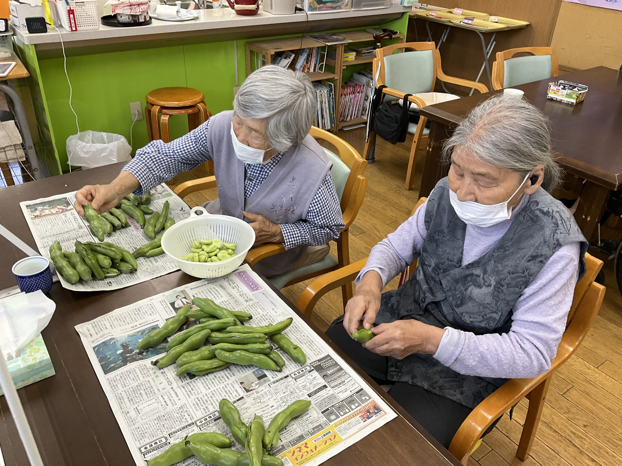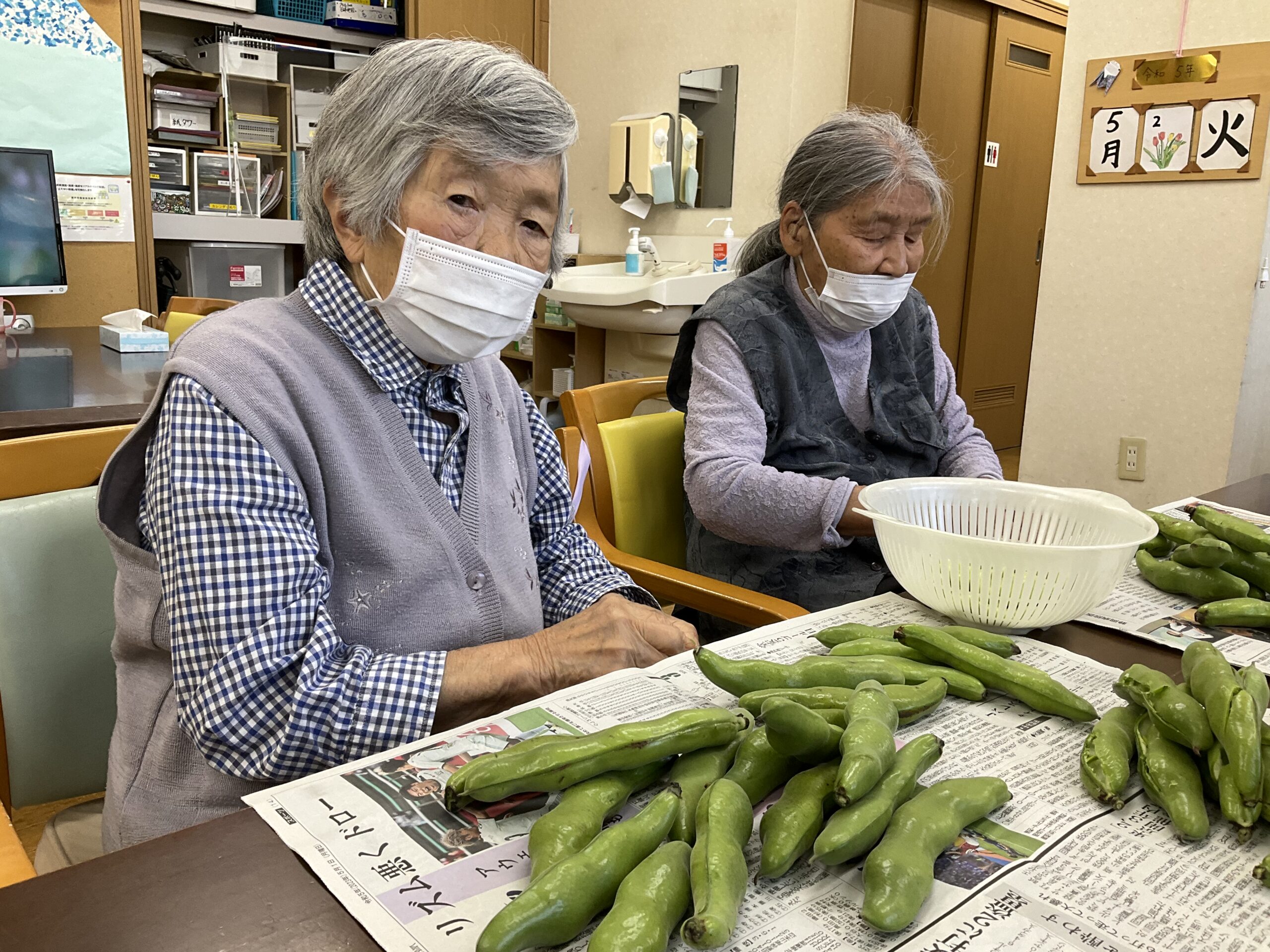 女性陣が手際よく皮むきをして下さり、そのままお昼ご飯に塩ゆでにして頂きました。