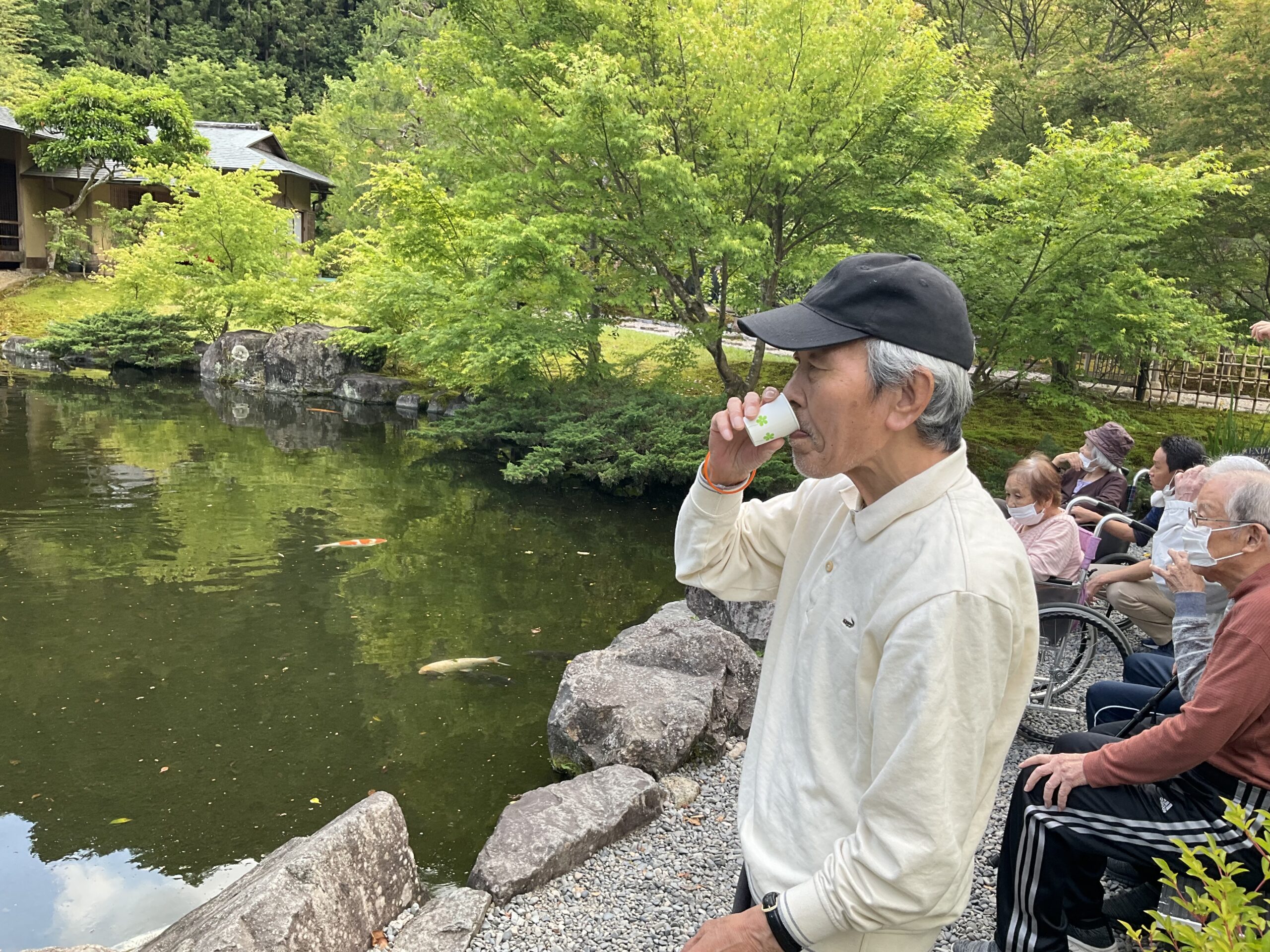 庭には花菖蒲、池には色とりどりの鯉達がゆうゆうと泳ぎ、皆様の目を楽しませてくれました。