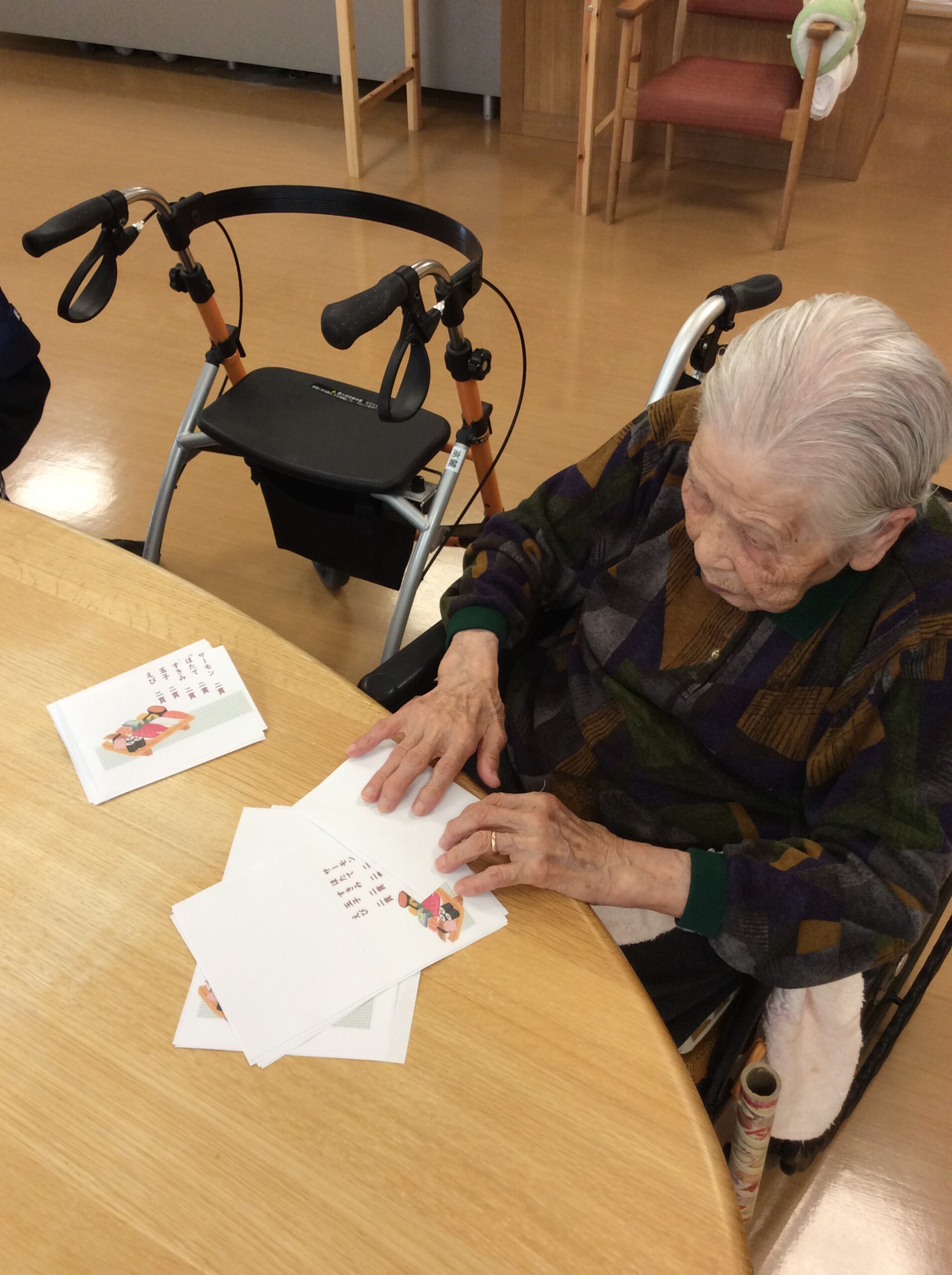 お寿司をより楽しんでいただくために、前日には職員と一緒にお品書きを作っていただきました。