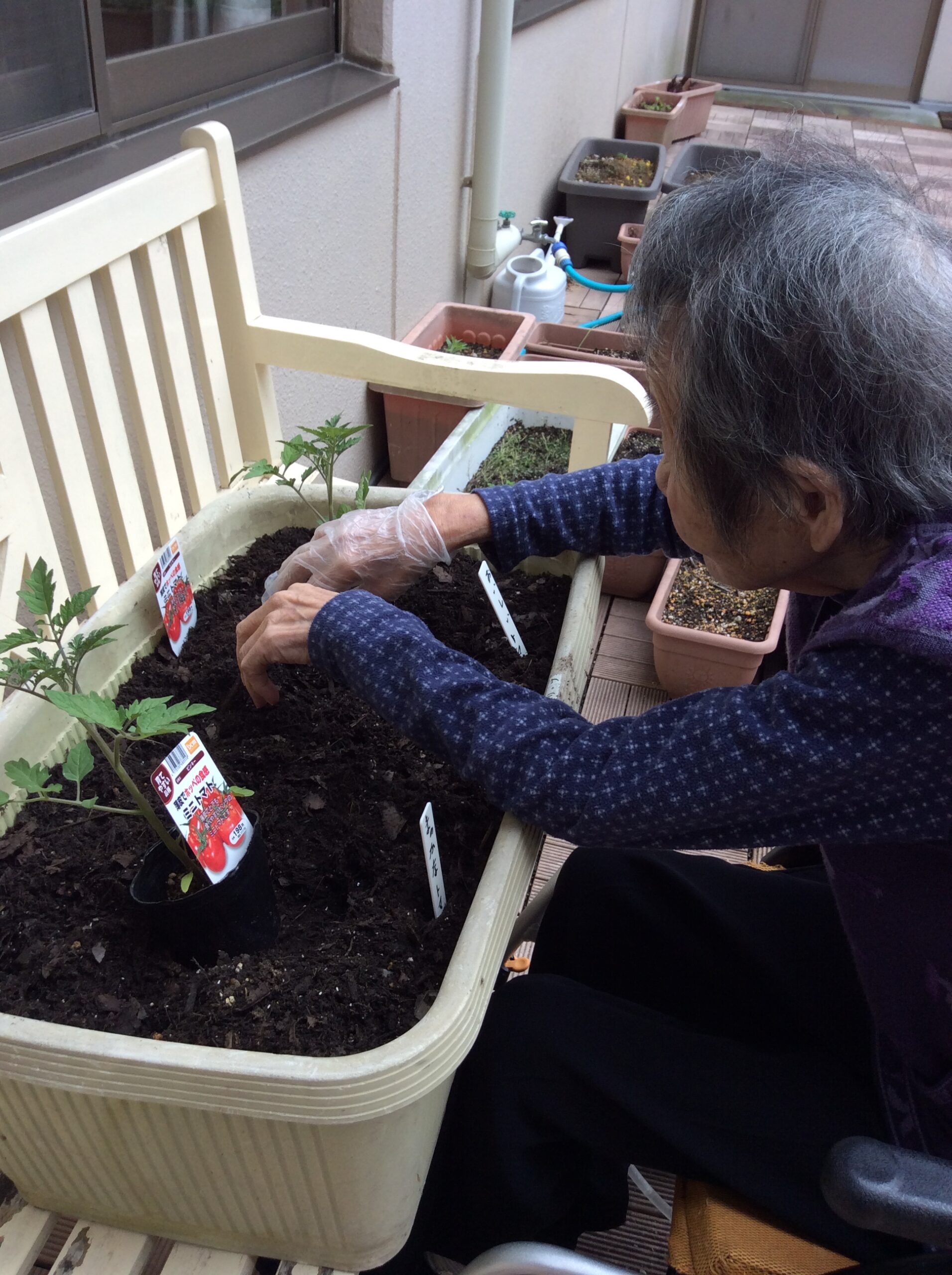 植える作業は考えたり手を使うため、認知症予防や手指の機能訓練にもなると考えています。