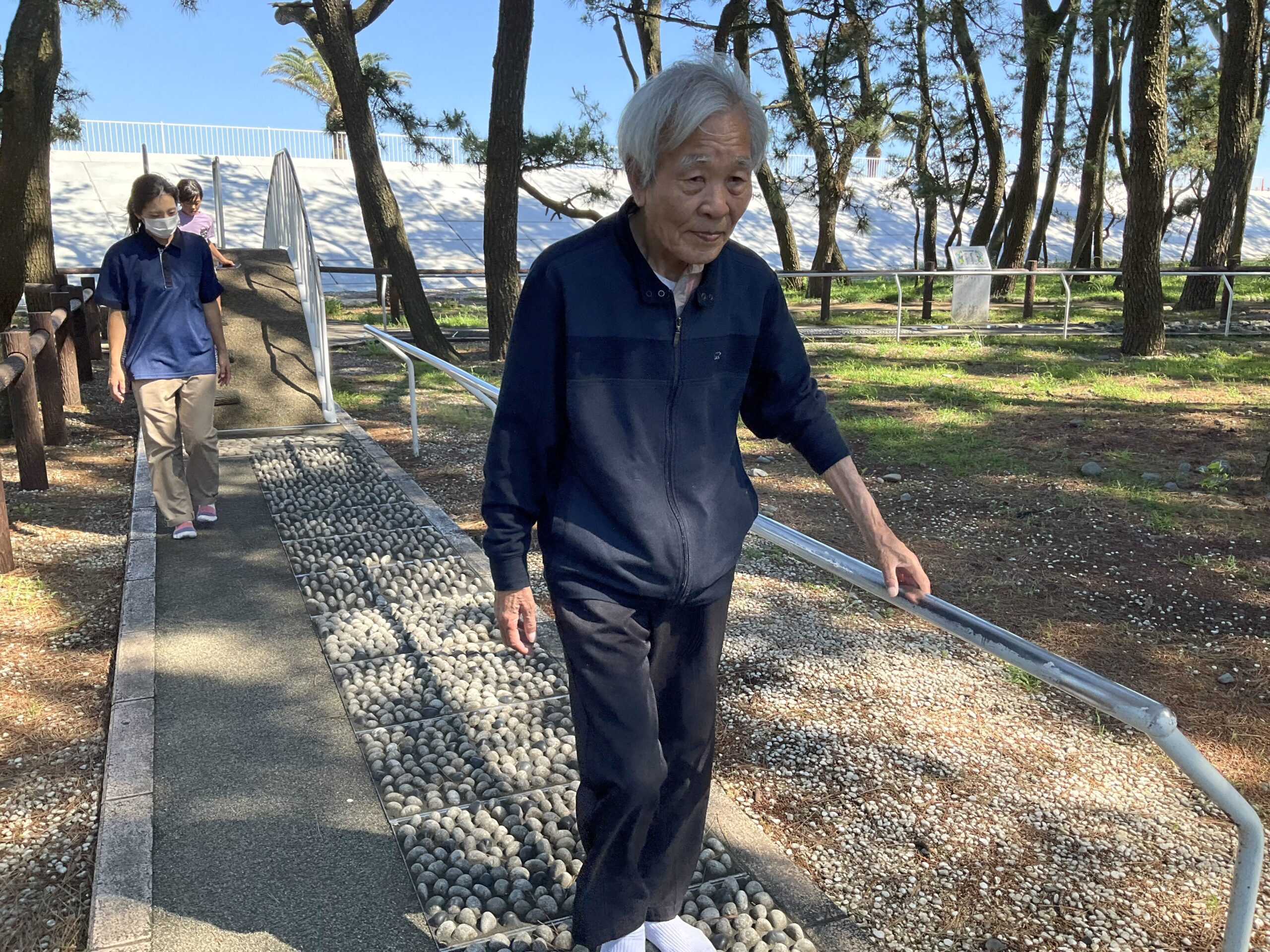 ベンチに腰掛け、水分補給を済ませた後は、足つぼ遊歩道のお散歩を、皆様存分に楽しまれました。