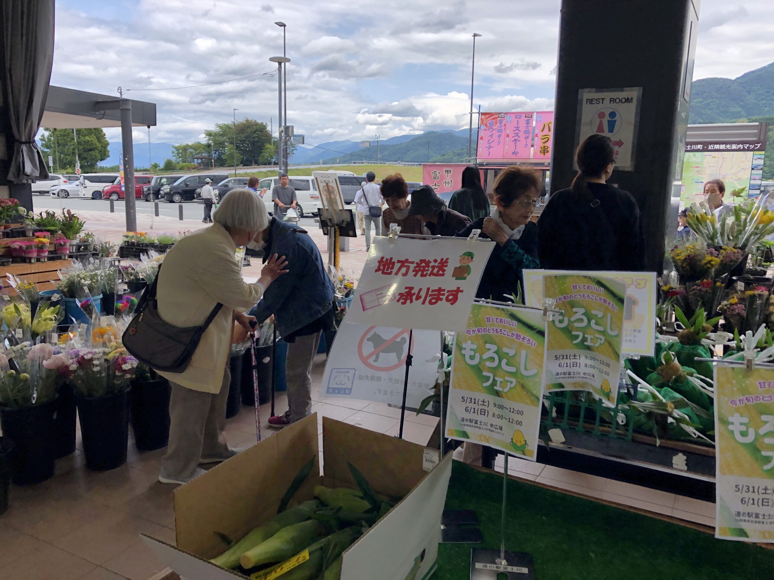 到着するなりに、トウモロコシなどの地場産品やパン、グルメ、土産品等に目を輝かせます。