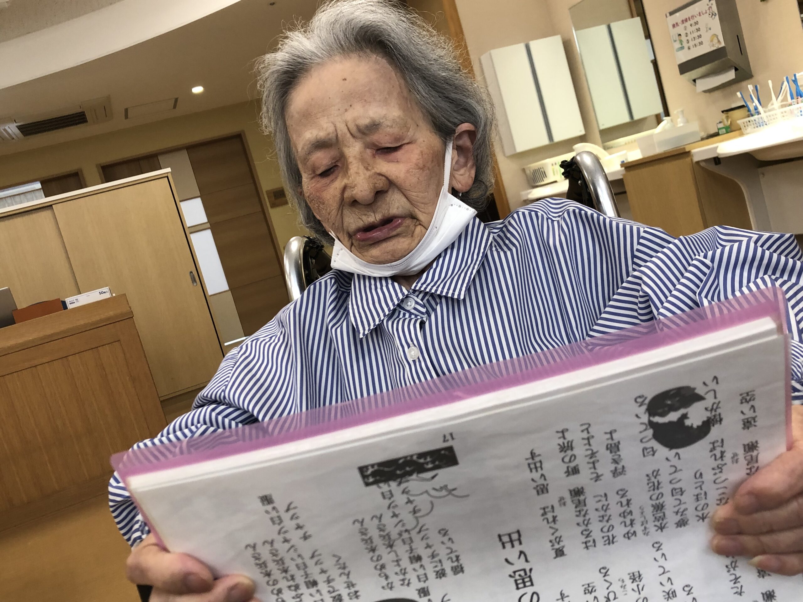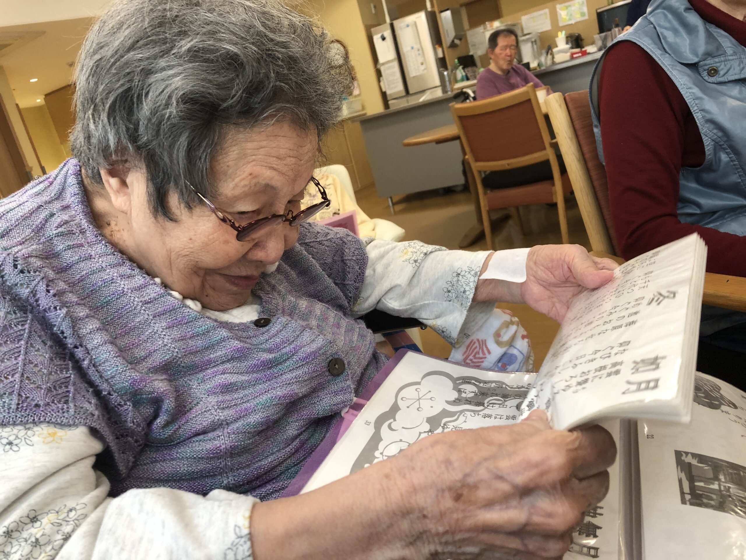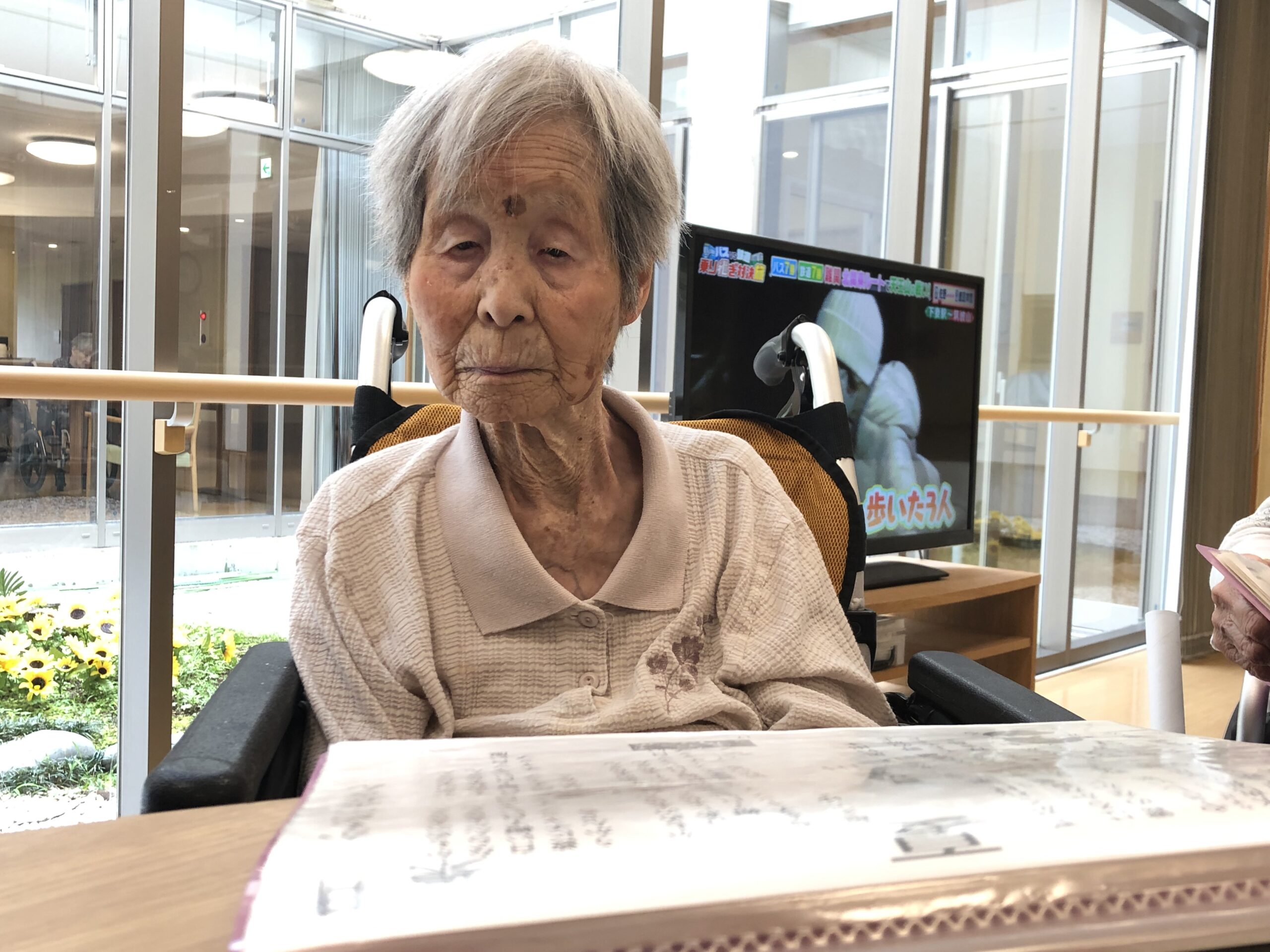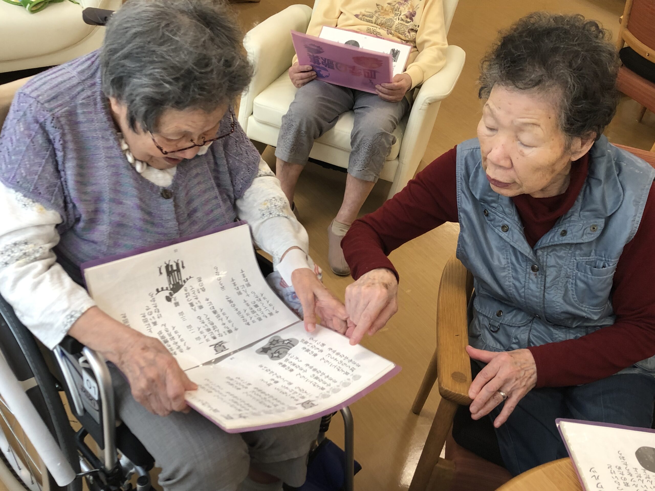 それを見かけた職員が歌詞カードを渡すと、同じテーブルの席に座っていたお客様同士で歌い始め