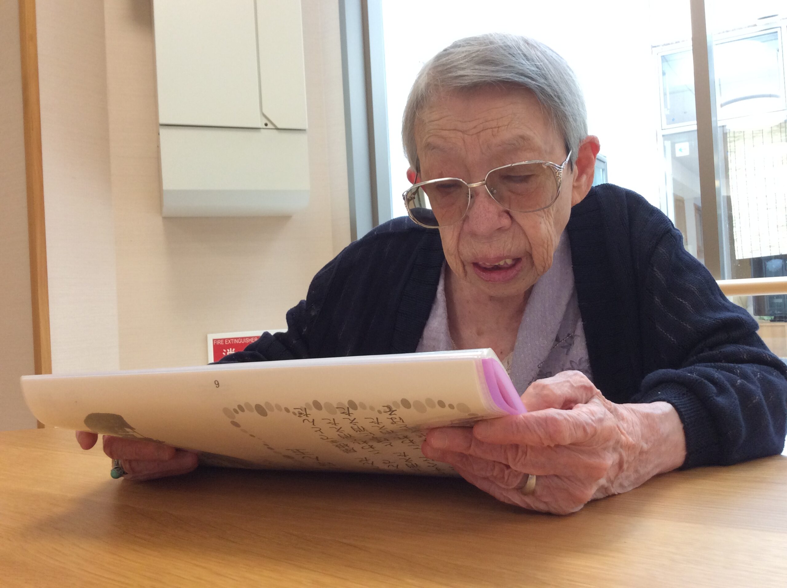 ユニット1階のフロアから、何やら小さな歌声が聞こえます。