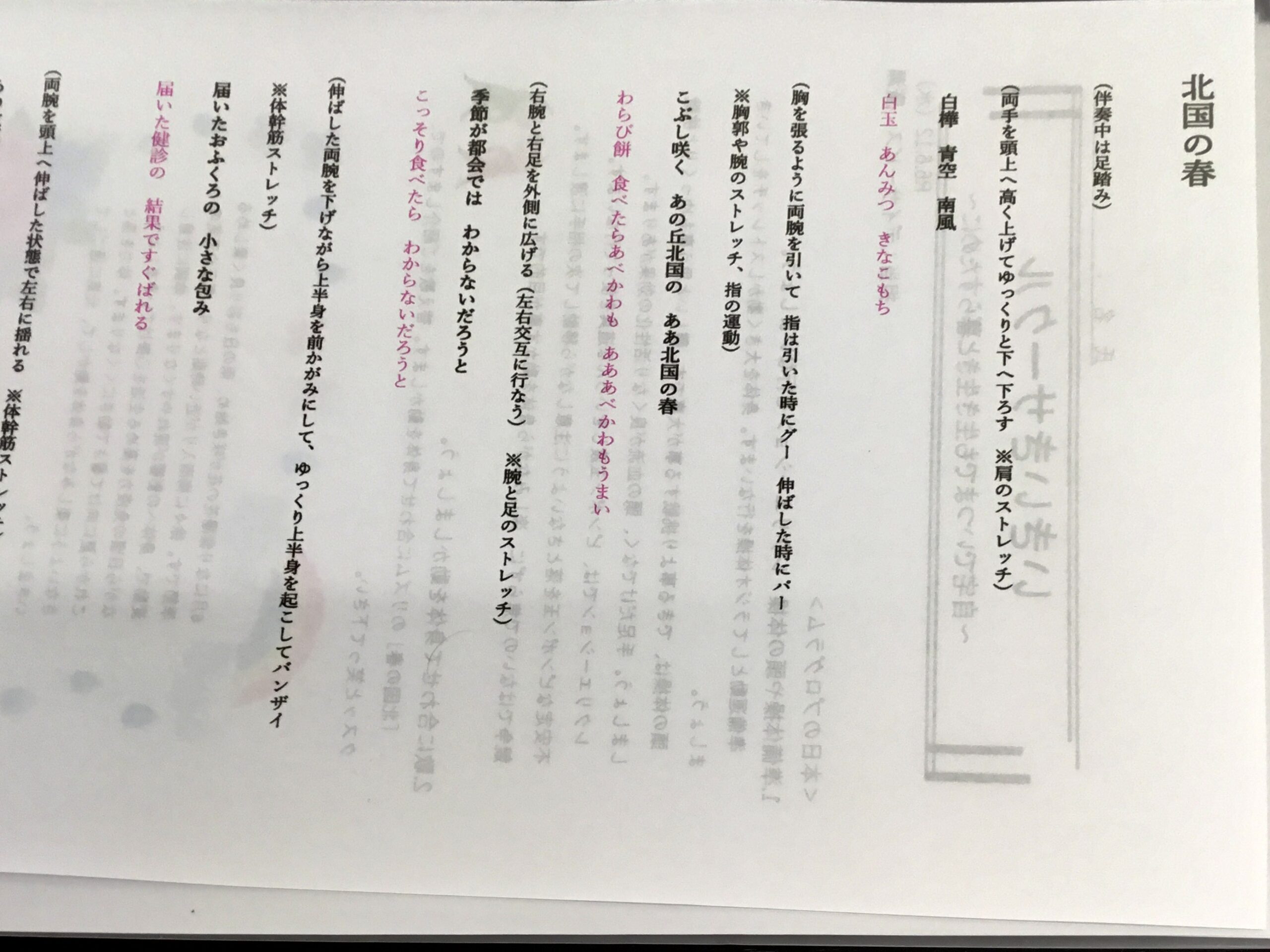 音楽に合わせたリズム体操など