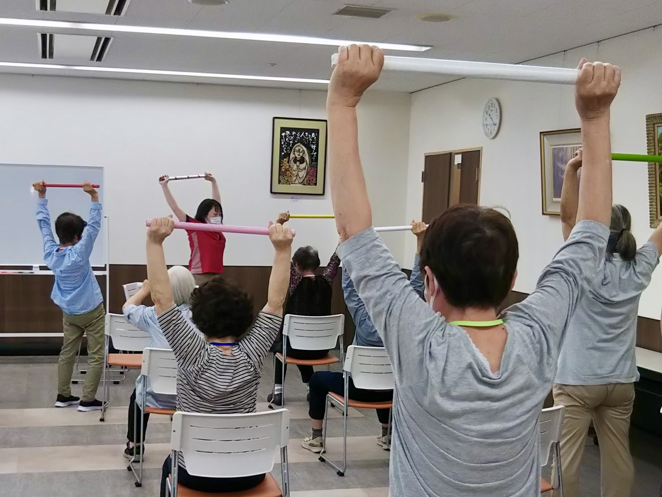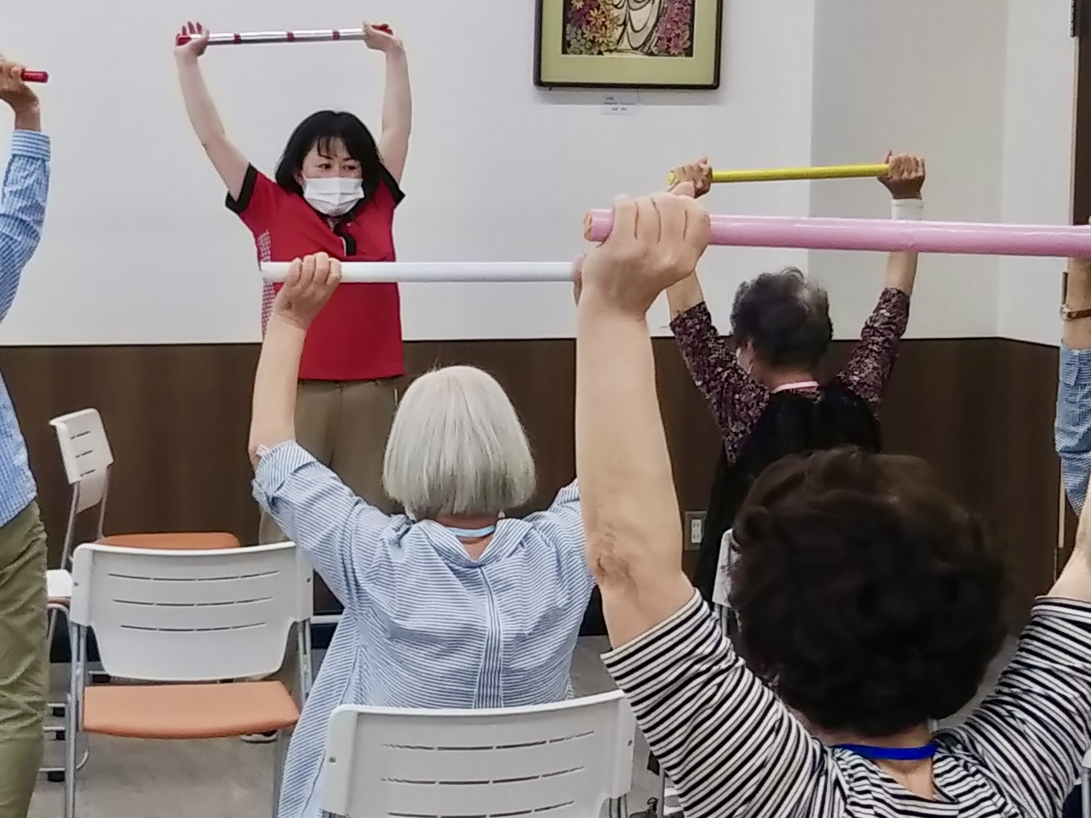 続いて、5月に皆様と一緒に作った棒を使った「棒体操」。