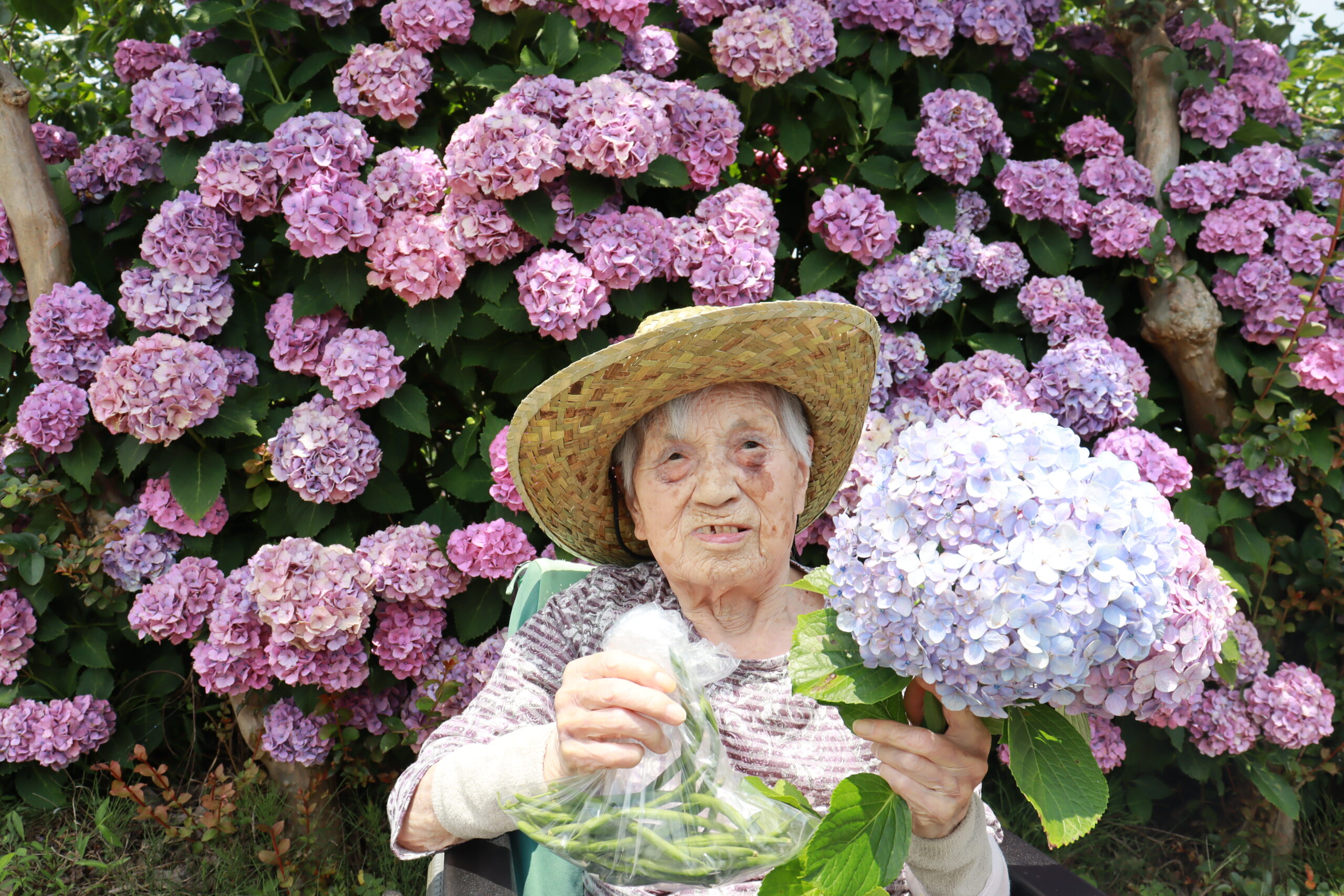紫陽花狩りの帰り道、「ここ坂本?知り合いがいる。」「浜当目に住んでた。」など、皆様からご自身の話を聞かせてくださいました。