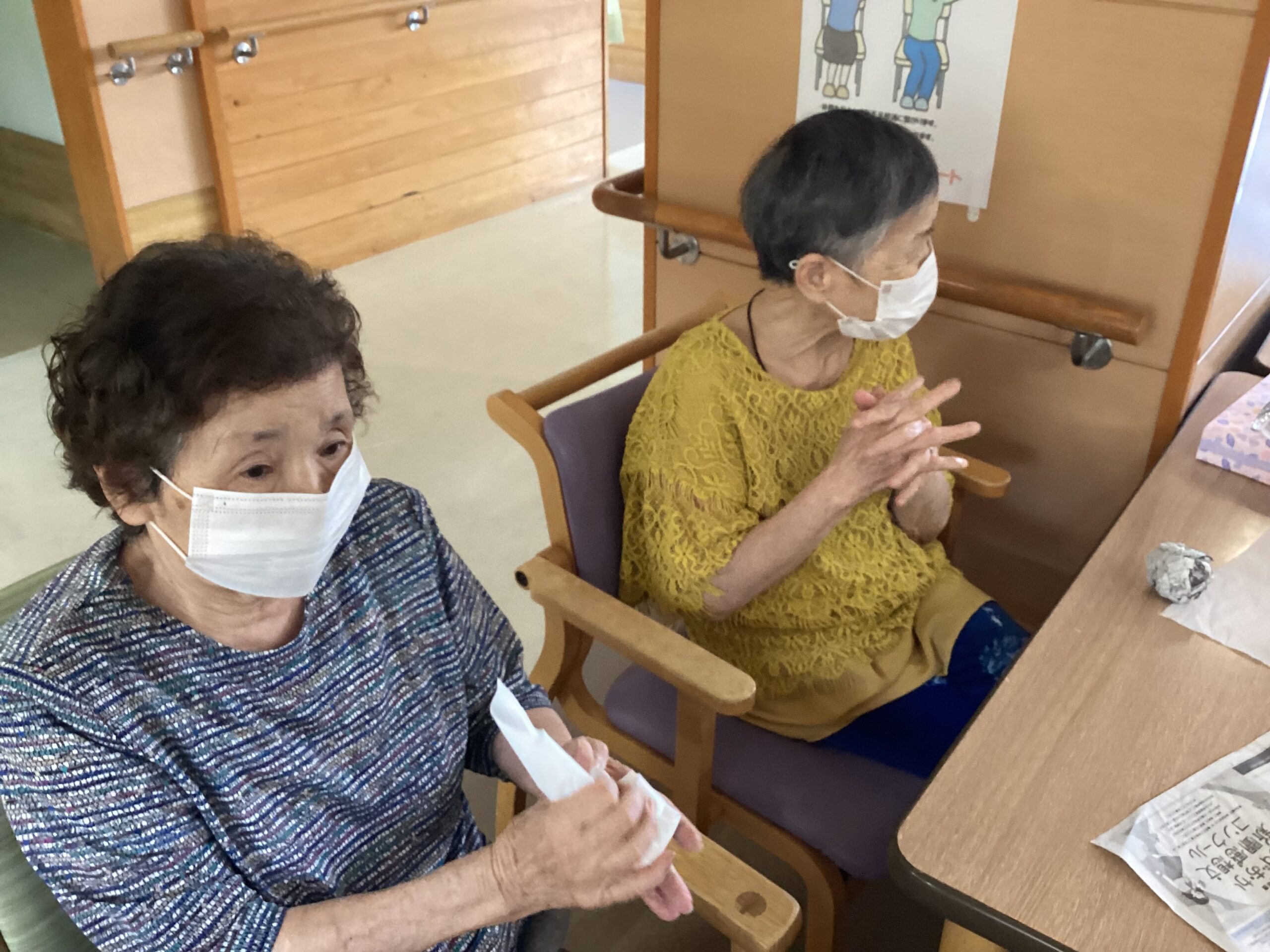雨が多くなり、普段が外出の機会も限られているお客様たちが、しかるべき機会に外出ができるよう、6月という季節も感じていただきながら晴れへの願いを込めて、てるてる坊主づくりを行う企画を立てました。