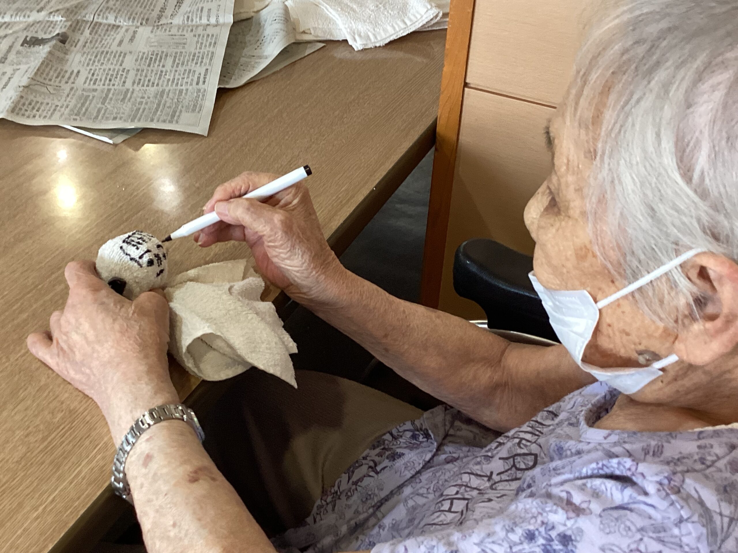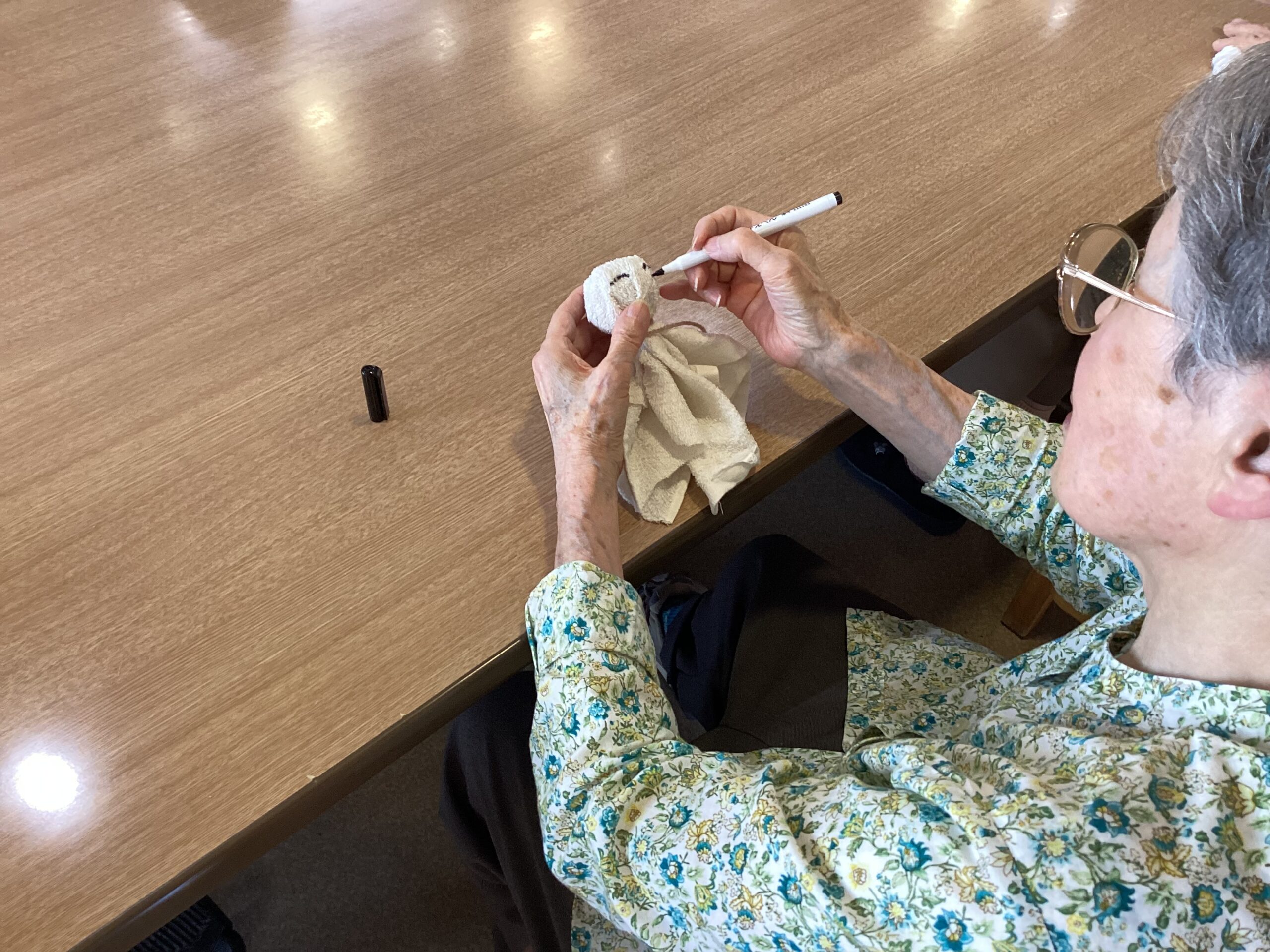 形ができたので、皆さんに思い思いの顔をマジックで書いていただきました。
