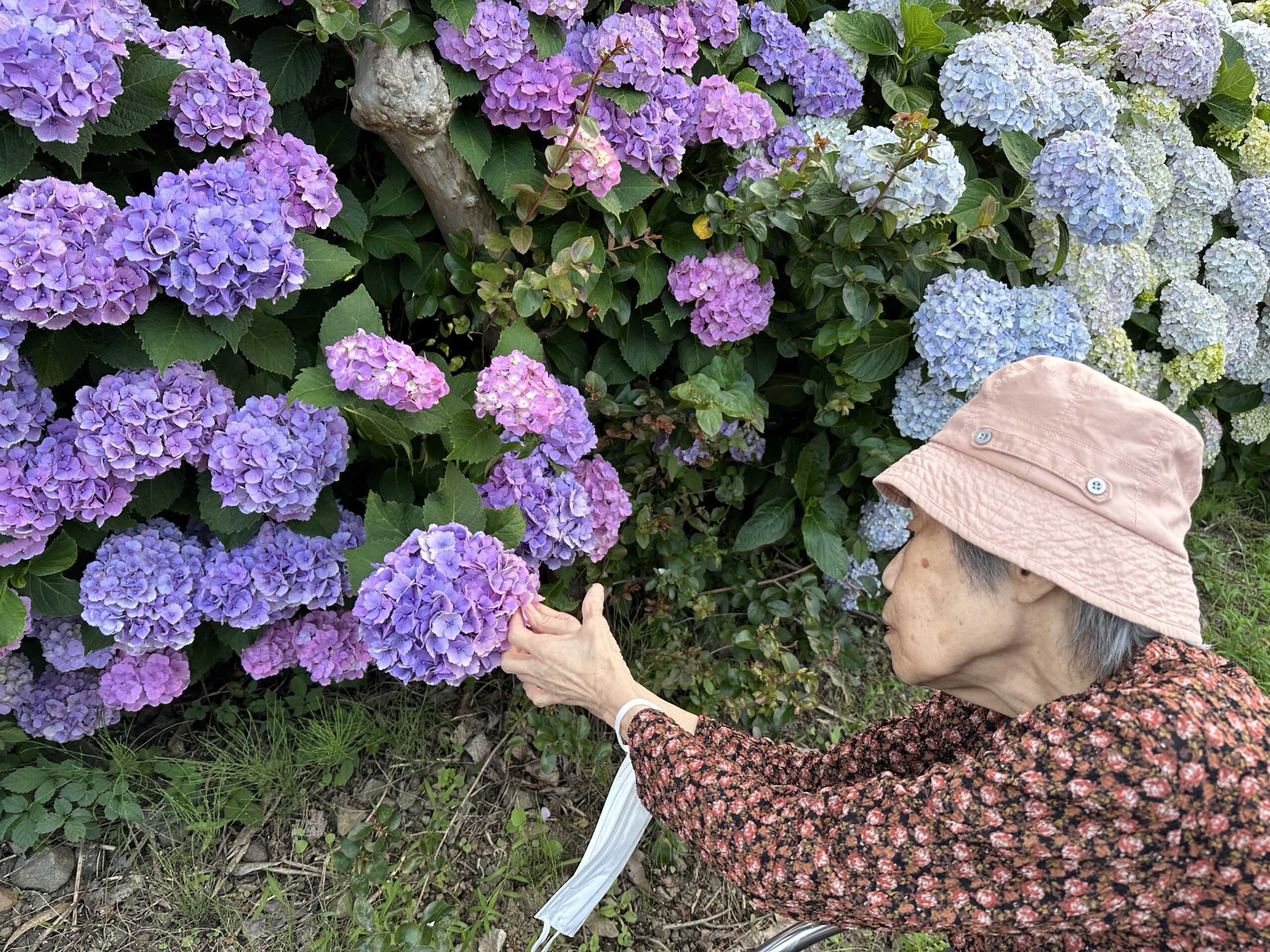 昨年の6月はまだコロナ禍で、なかなか外出の機会がなかった為、今年は少しでも多く、外の空気や季節を感じていただきたく、「紫陽花をみに出かけよう!」と計画しました。