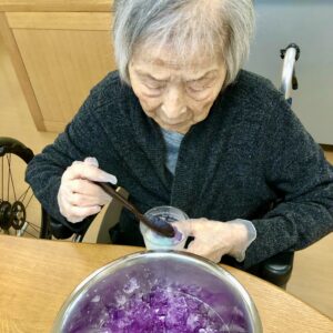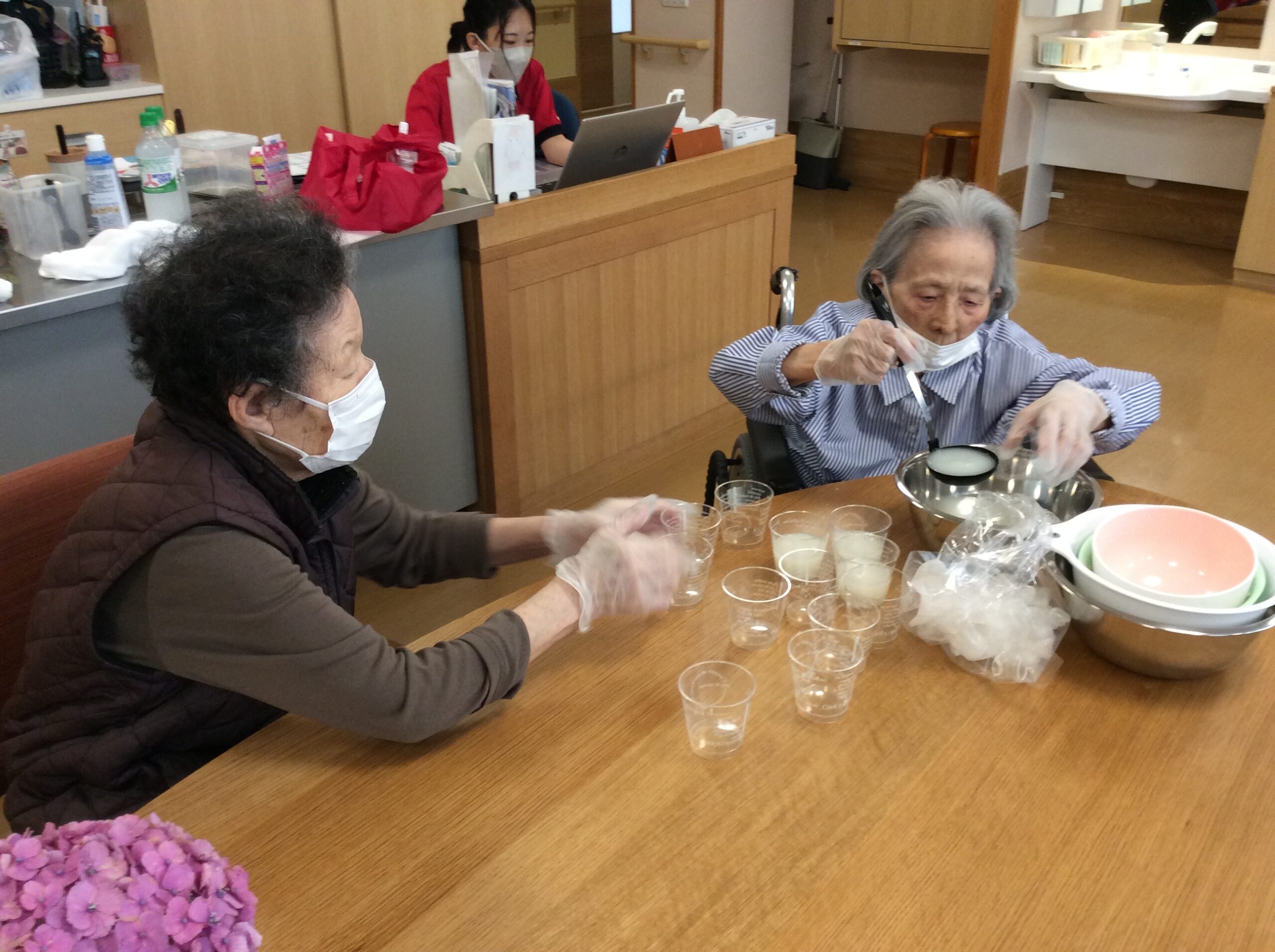 そこでユニット1階では、少しでも涼しさを感じていただこうと「あじさいゼリー」をお客様と一緒に作ることに!
