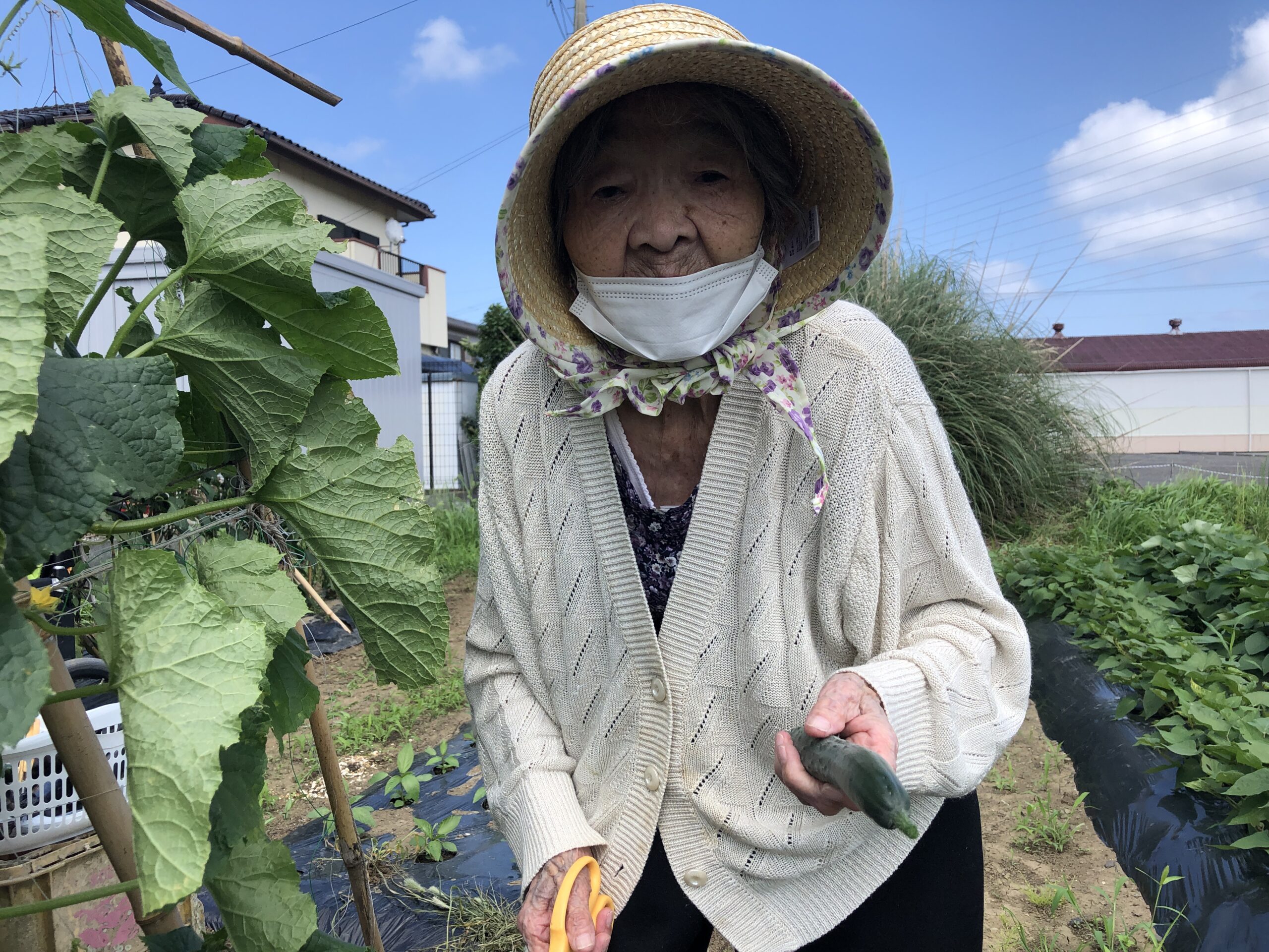 一緒に収穫に向かったお客様は「今日は何?きゅうり?トマト?美味しそうだね!こっちのは取ってもいいの?」と職員に尋ねながら野菜を収穫していきます。