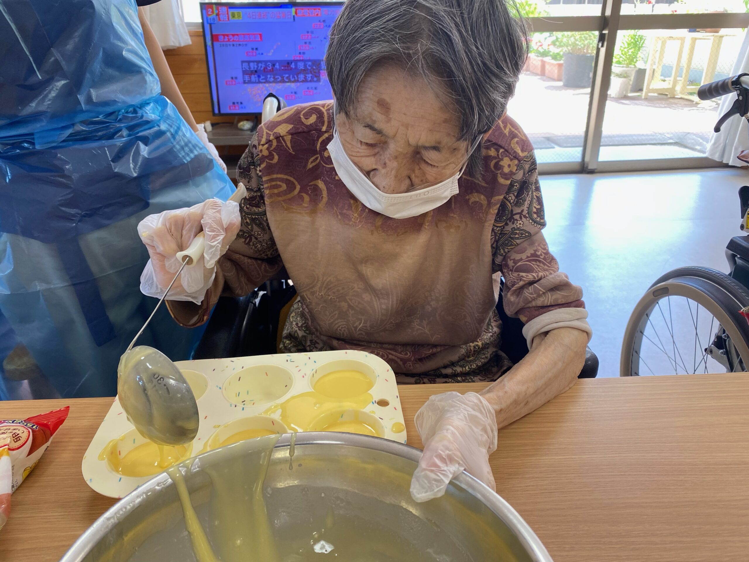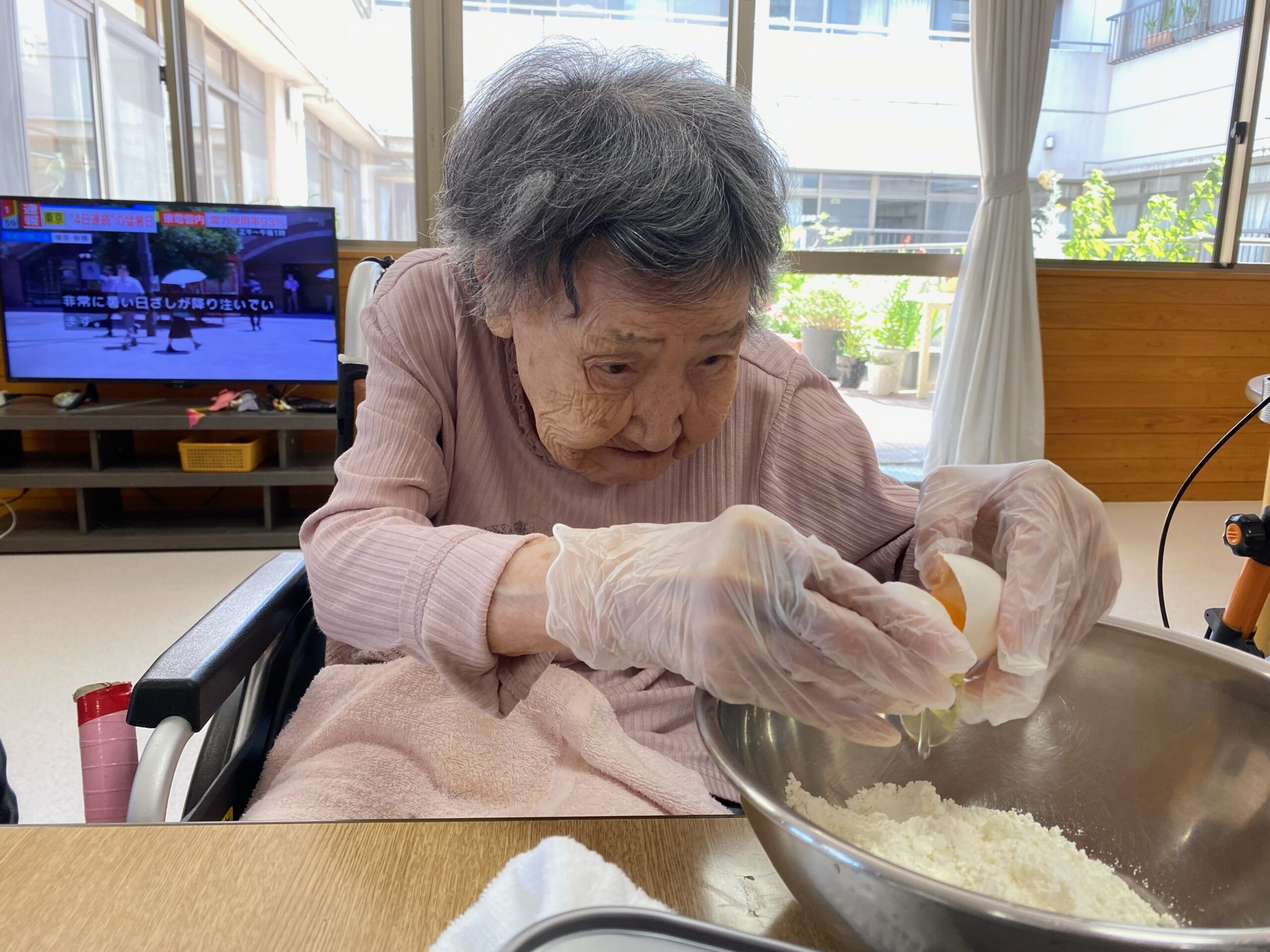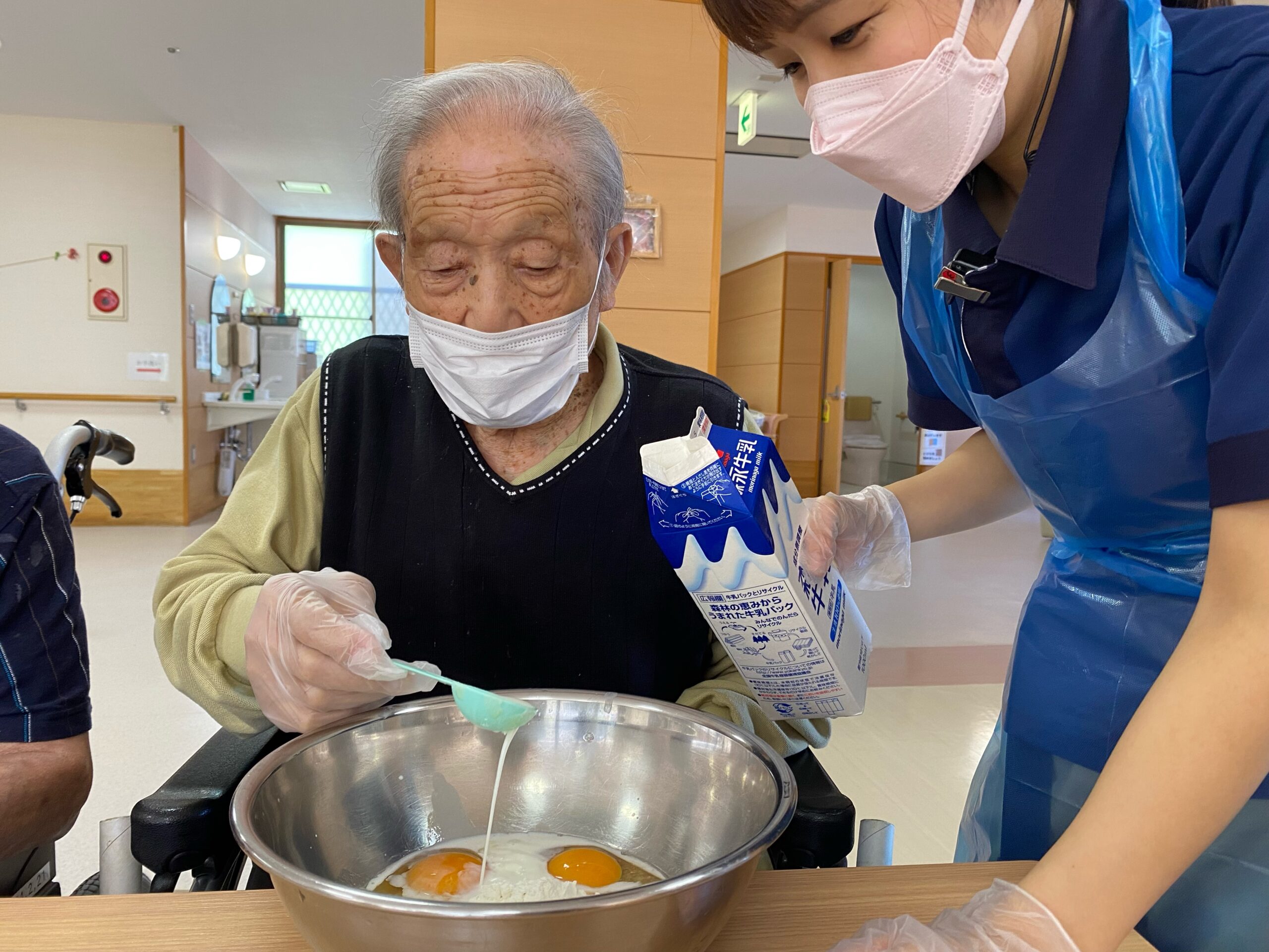 調理手順を説明した時は「そんなこと出来ないよ~」とおっしゃっていましたが、真剣な表情で調理いただき、職員も指示を受ける様な場面も。