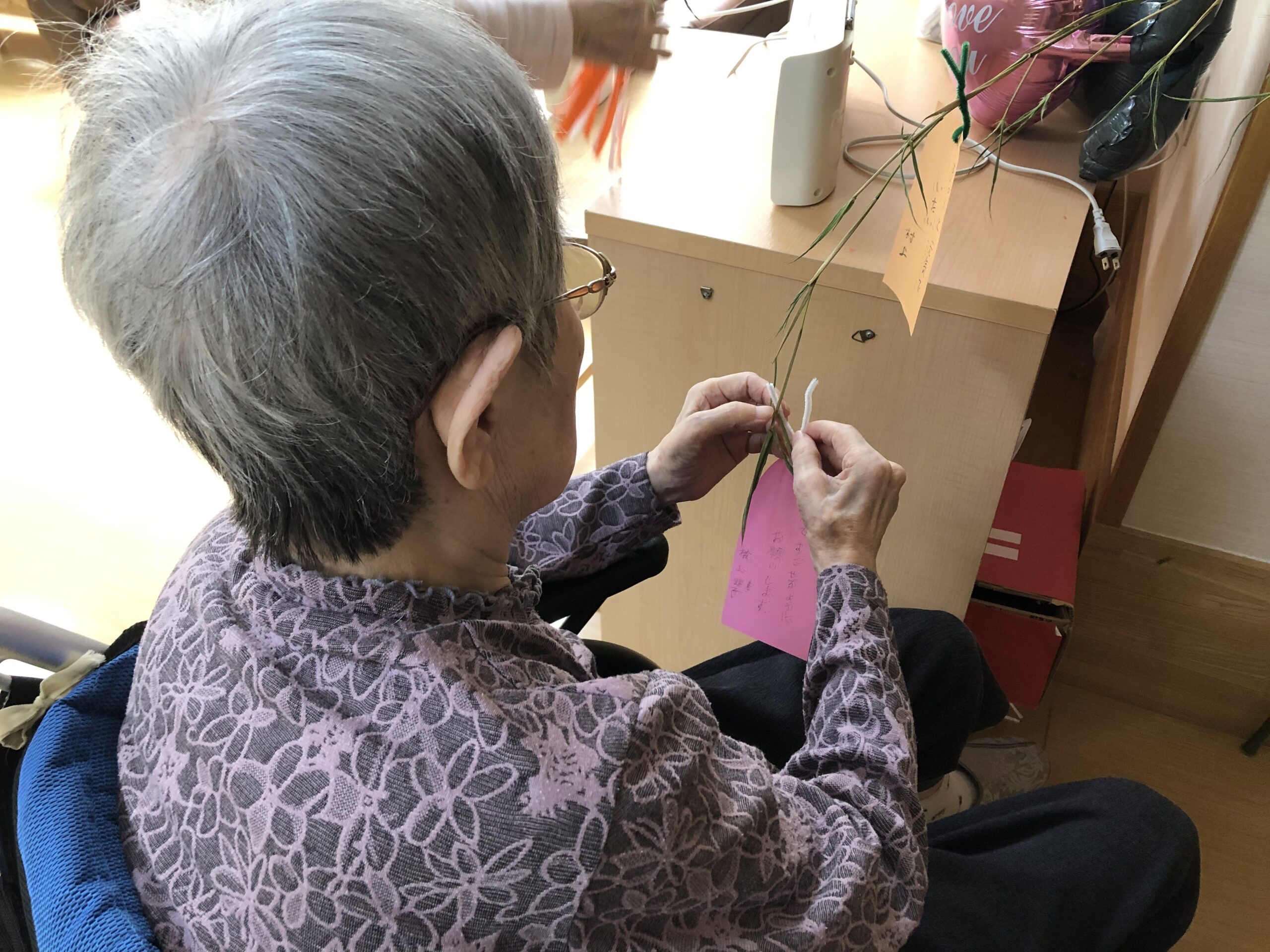手先を動かし、飾りつけで脳を使って、目で楽しんだ後は、笹の葉を眺めながらサマーゼリーで涼を取りました。