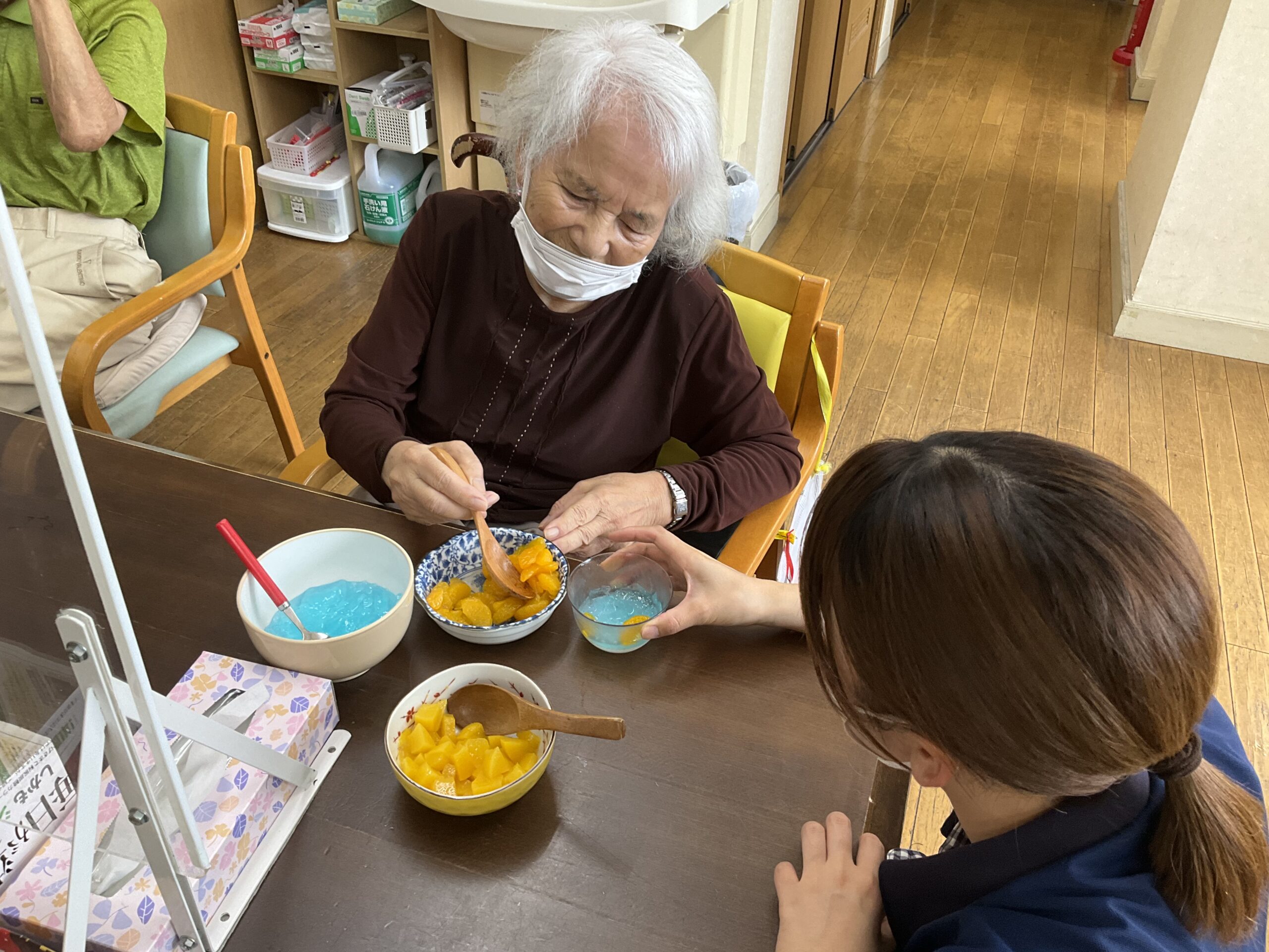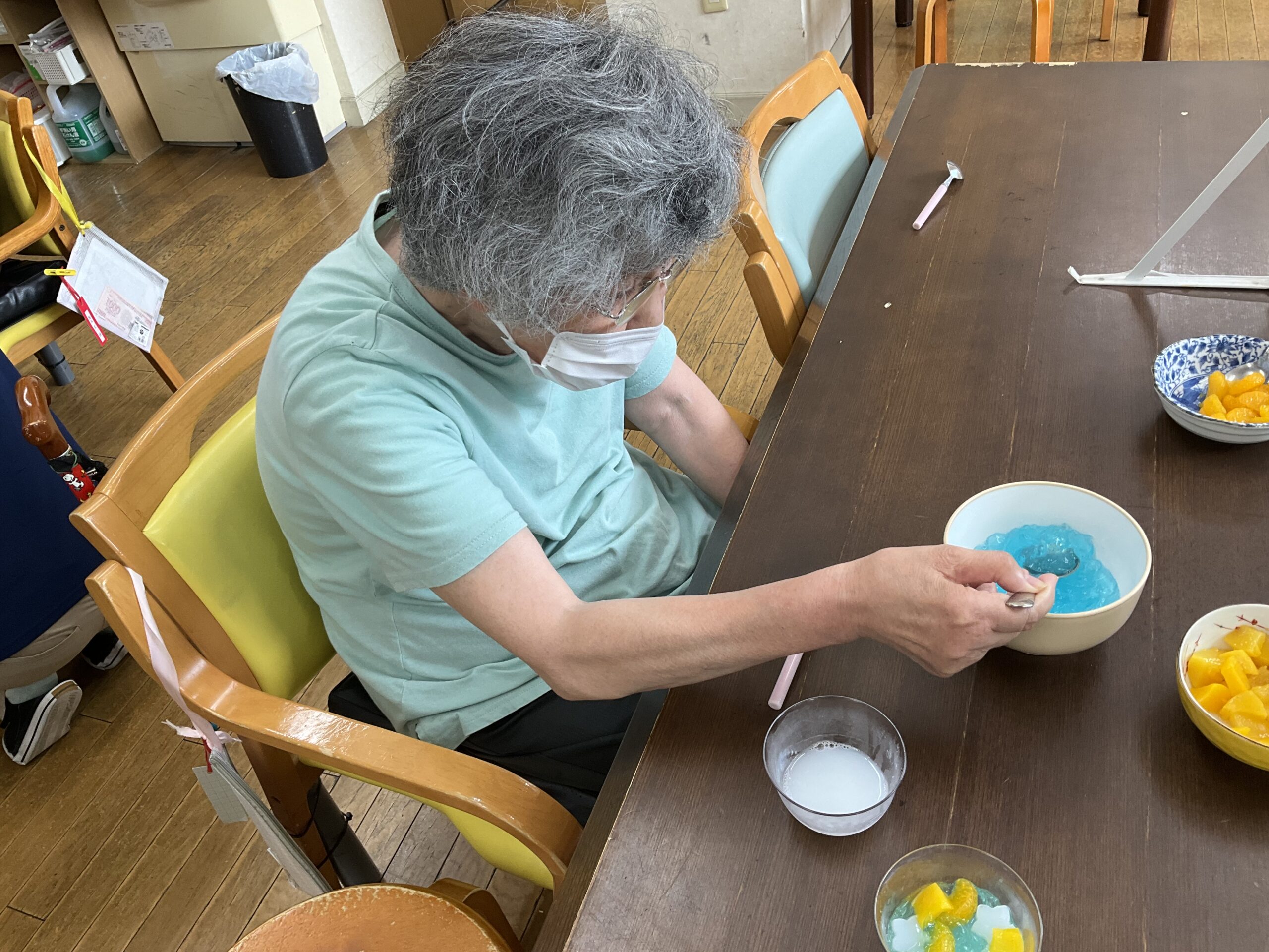 こちらも七夕に合わせ、天の川をイメージしたカラフルなゼリー作りにチャレンジ。