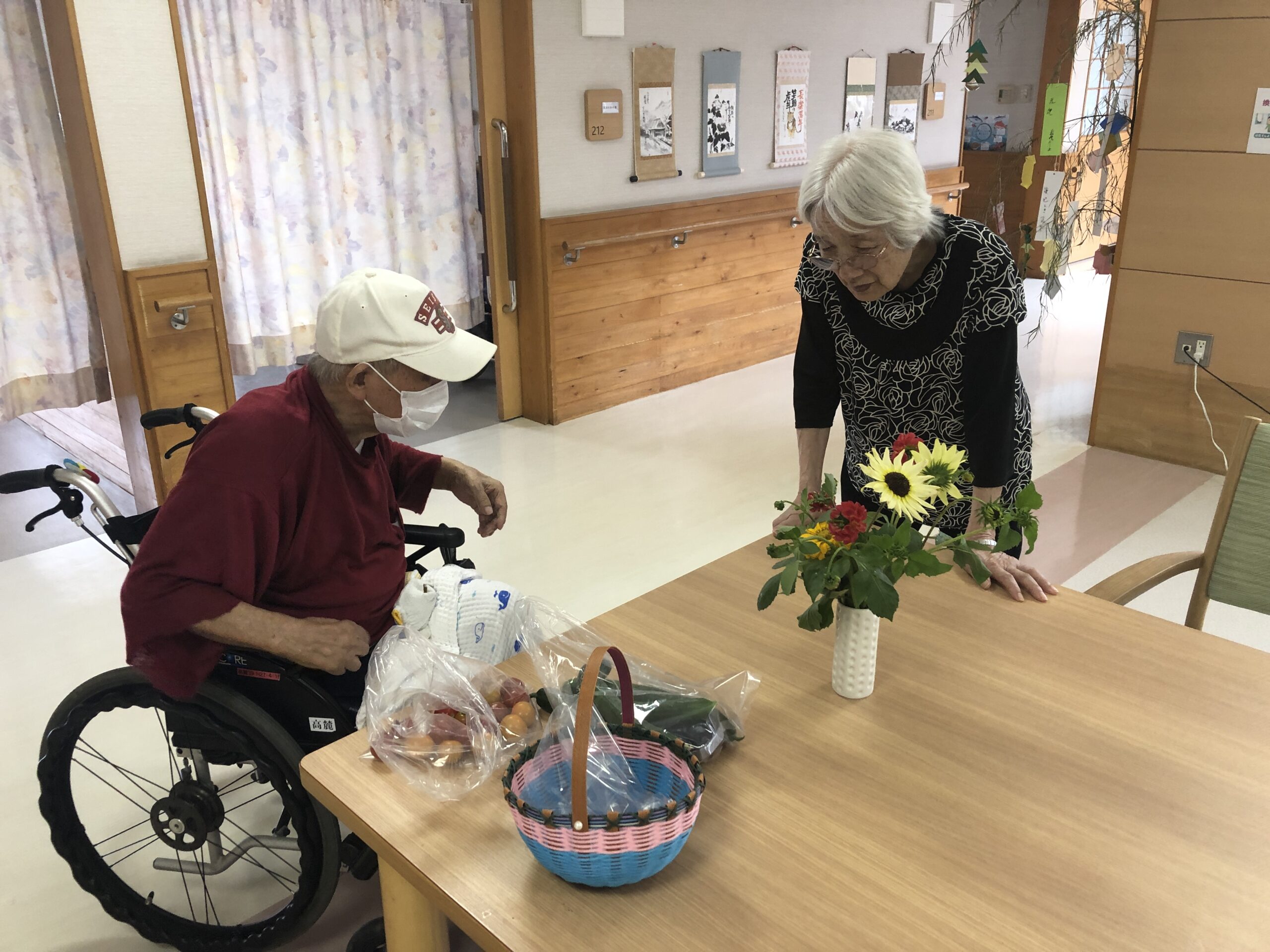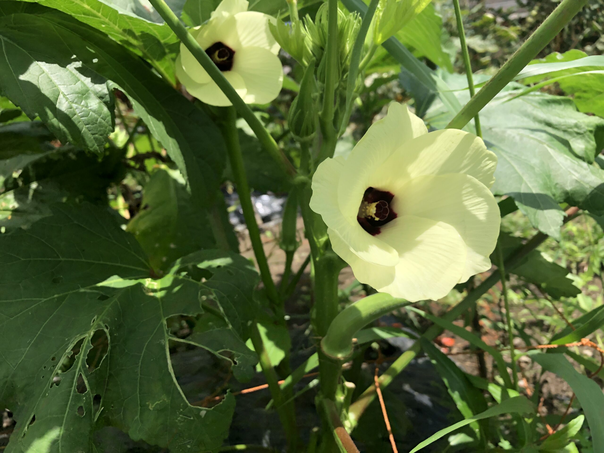 オクラには花が咲いており、初めてみたお客様はその花を興味深々に見られながら、持ち帰り、フロアで談笑をされていました。