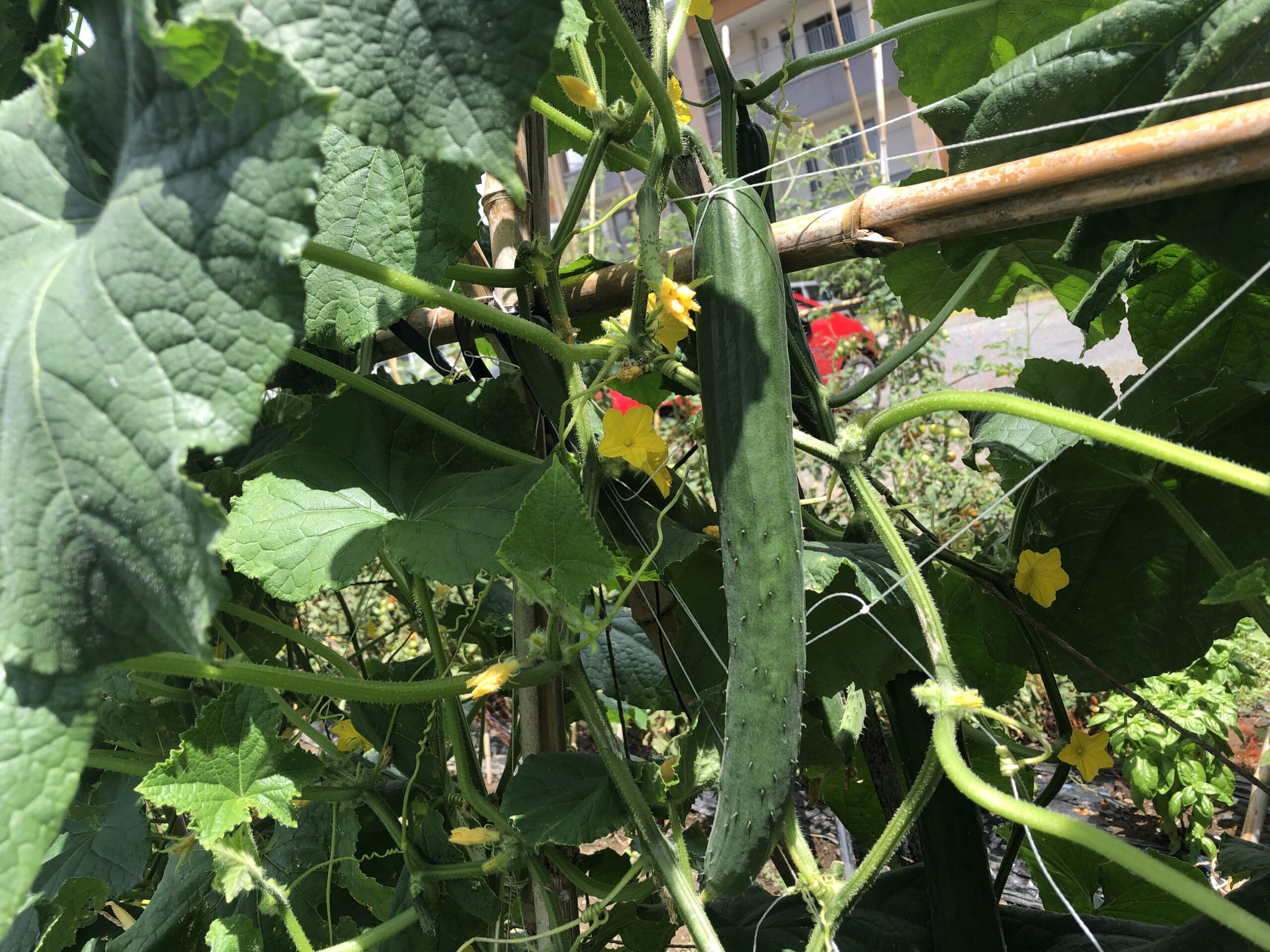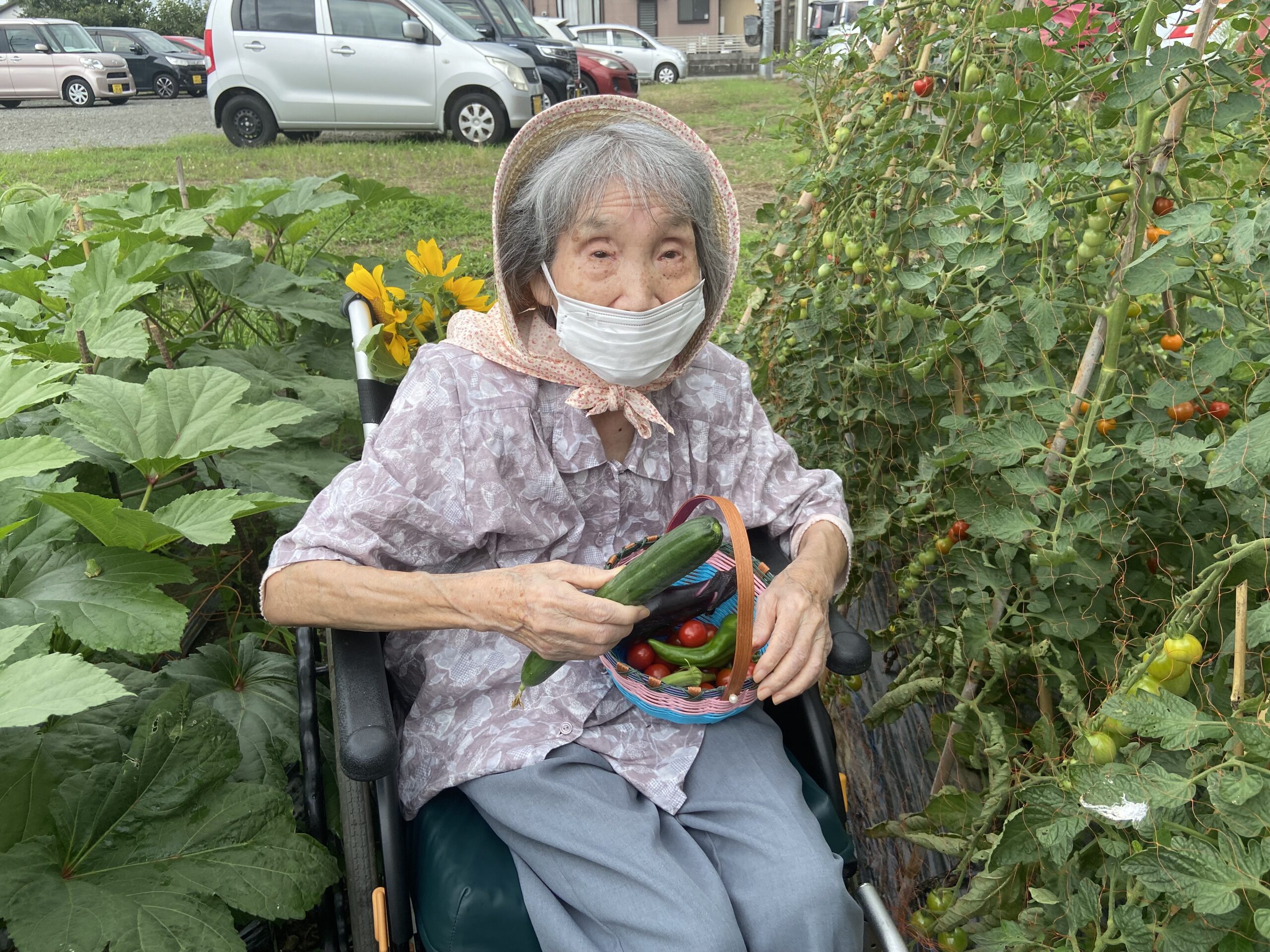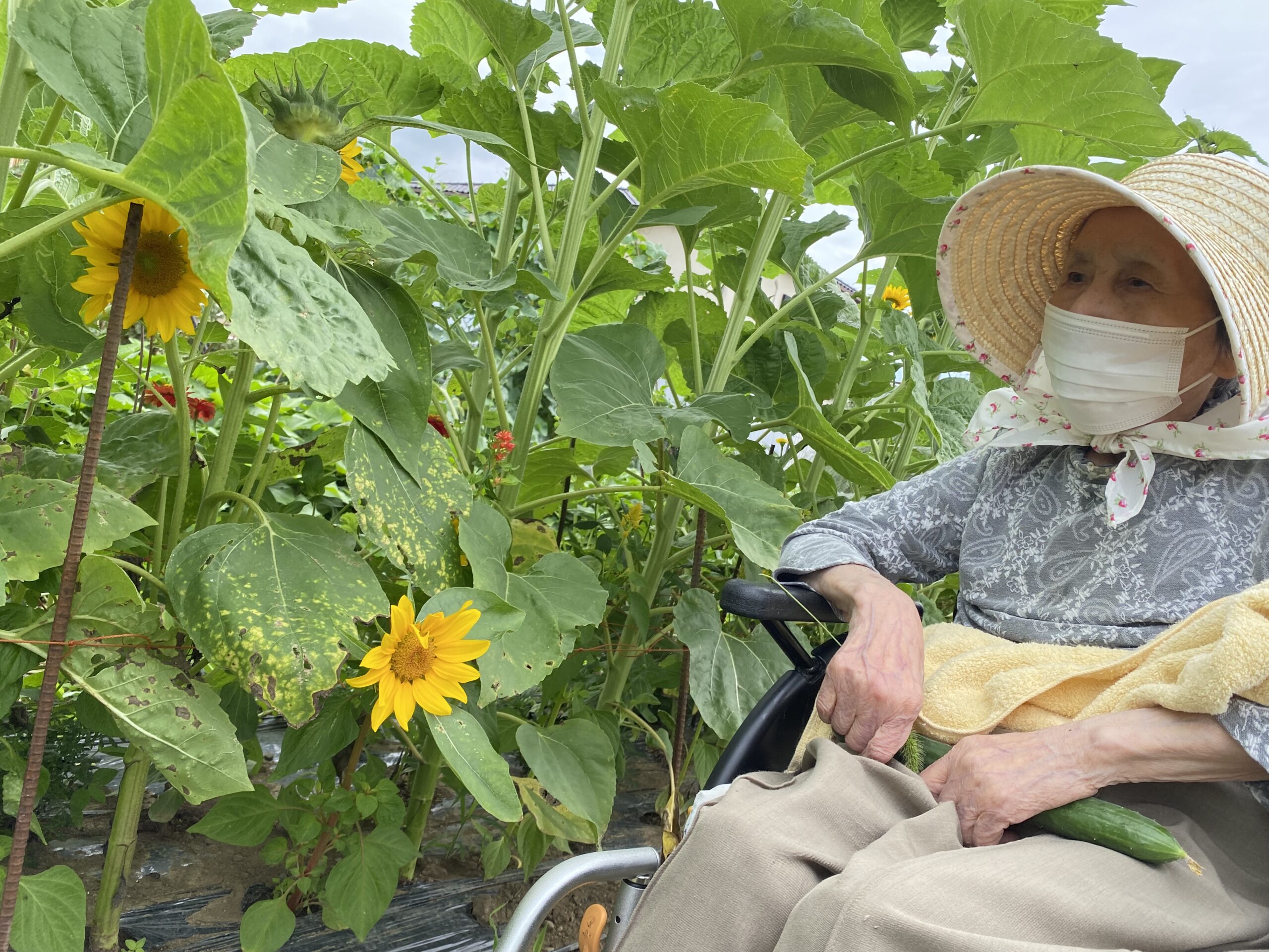7月の浦田農園はナス、きゅうり、ミニトマト、花を収穫しました。