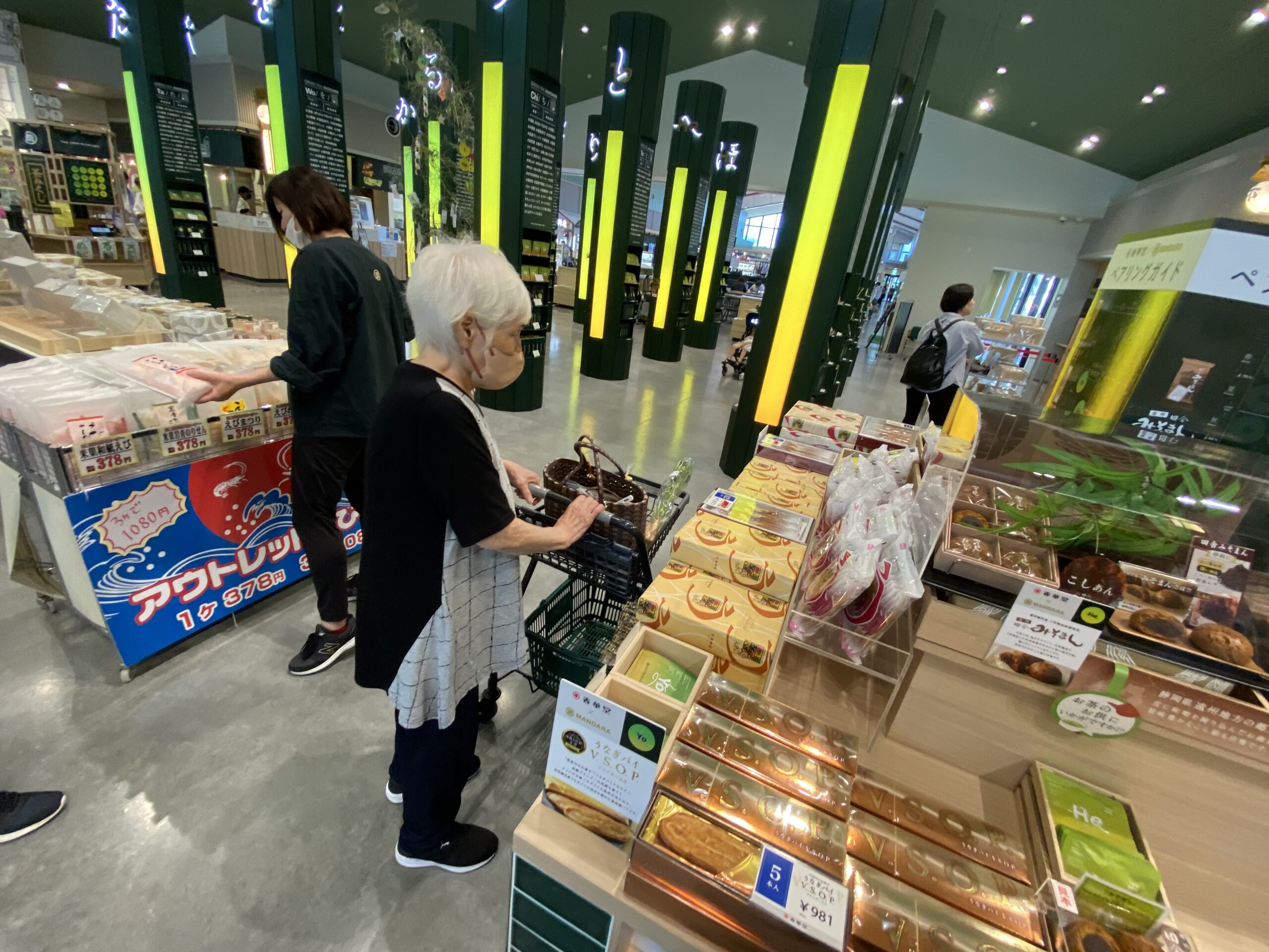 着いた拍子に買い物カートを取りに行く方、買い物カゴを持って、めずらしい食材の売り場へ行く方、家族へのお土産をと、お土産売り場へ向かわれる方…