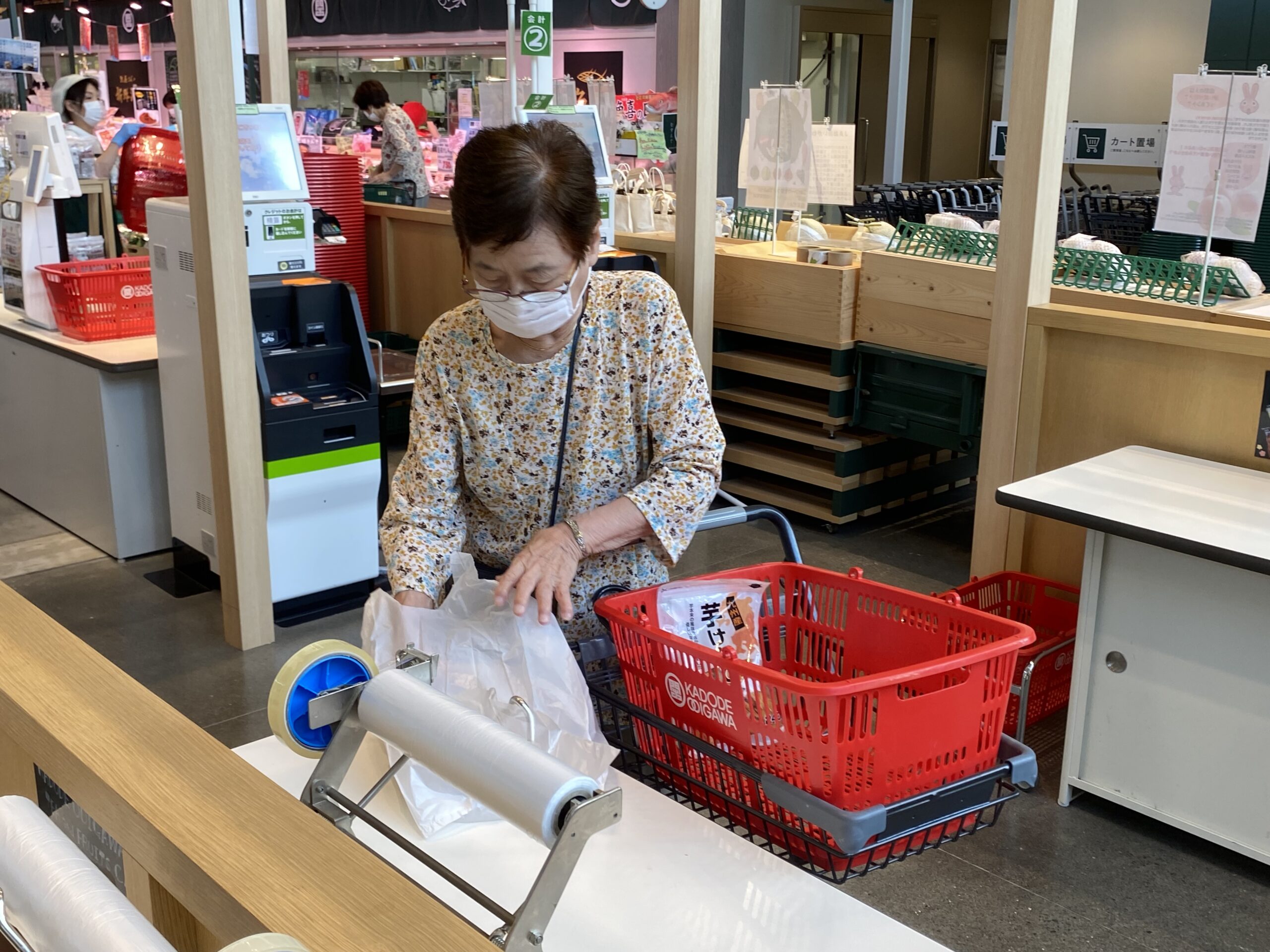 「自分は歩くことが少し大変になっているから。」と買い物カートを探し、