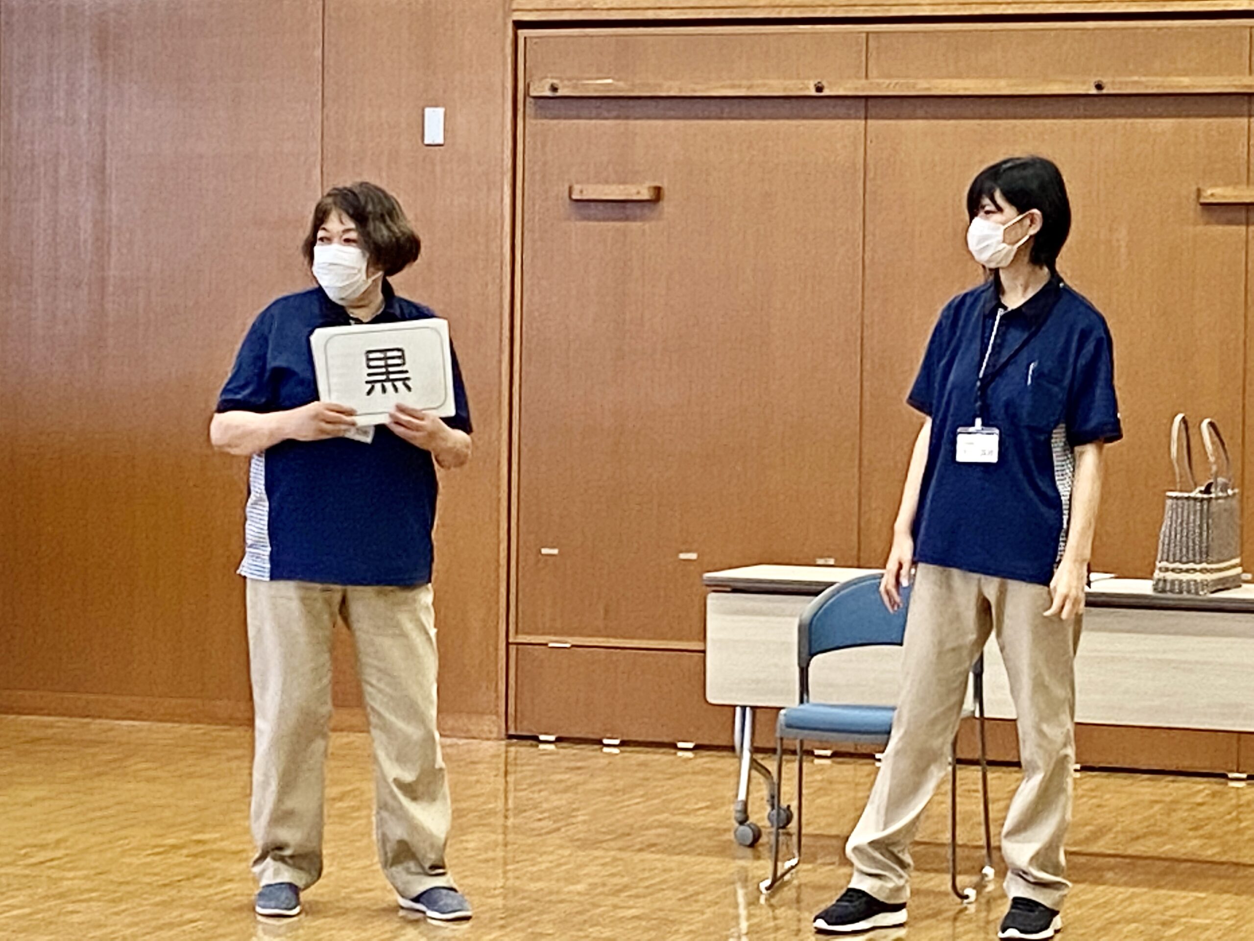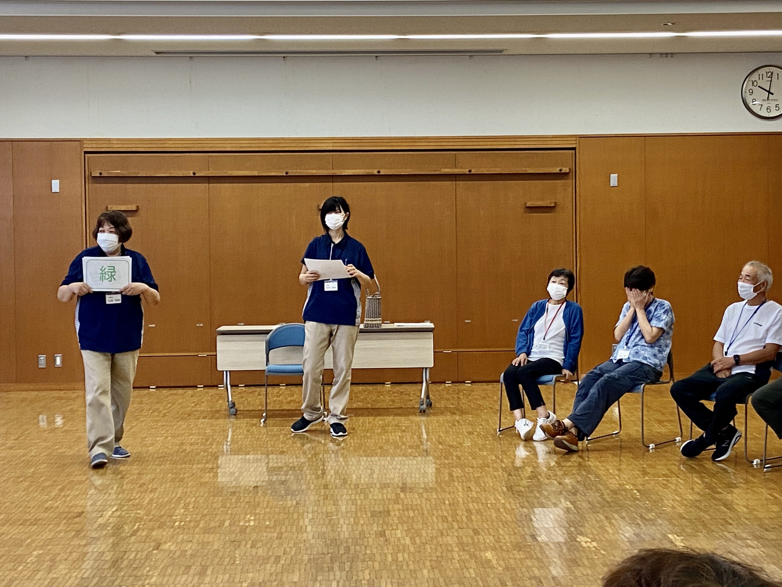 脳トレでは、カードを引いてもらい、そのお題から連想できる言葉を3つ出していただくゲームを行いました。